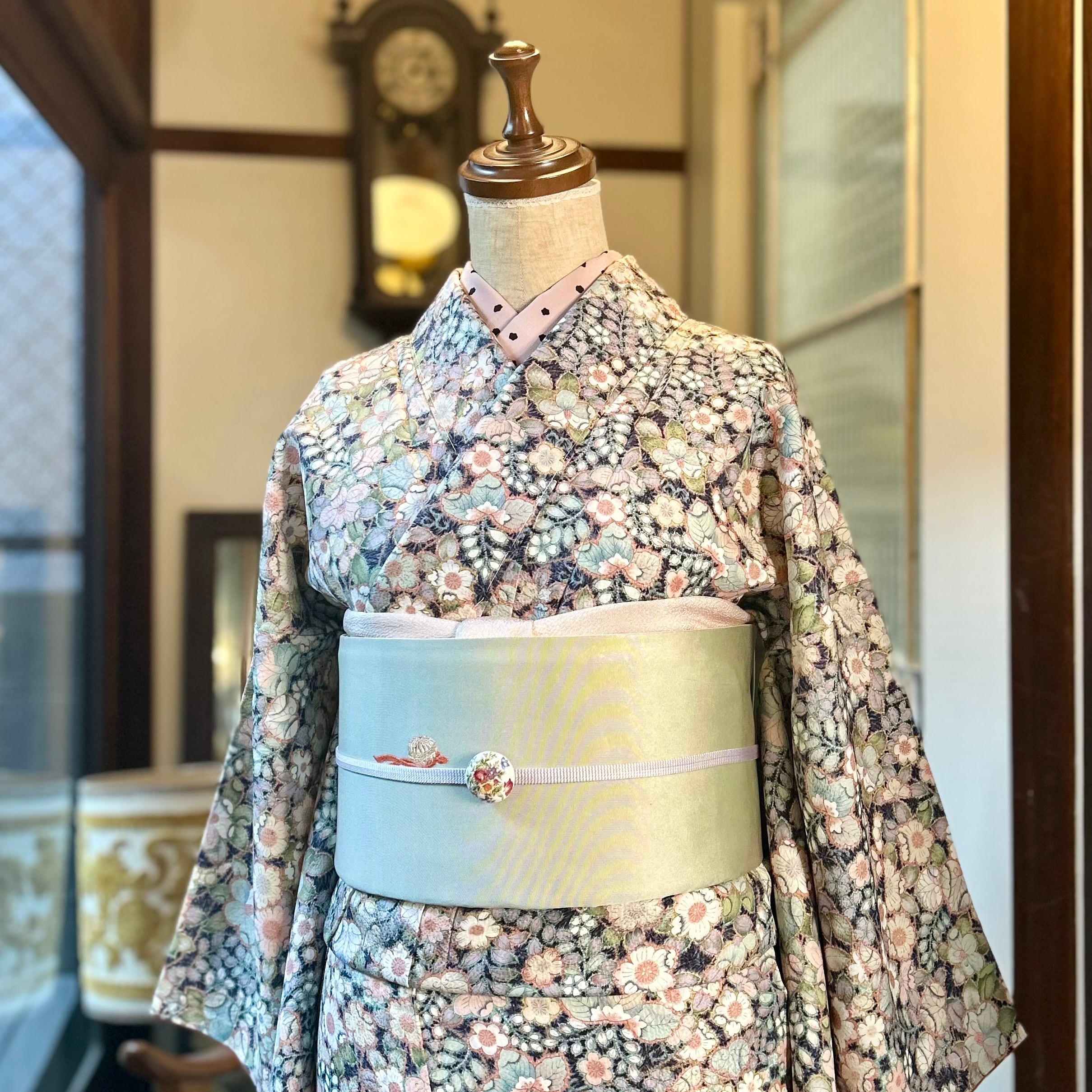 生地感は柔らかく、程よいハリでお太鼓もキレイな形が出せるので、気軽に小紋や色無地などに合わせて遊びゴコロある着こなしが楽しめます♩