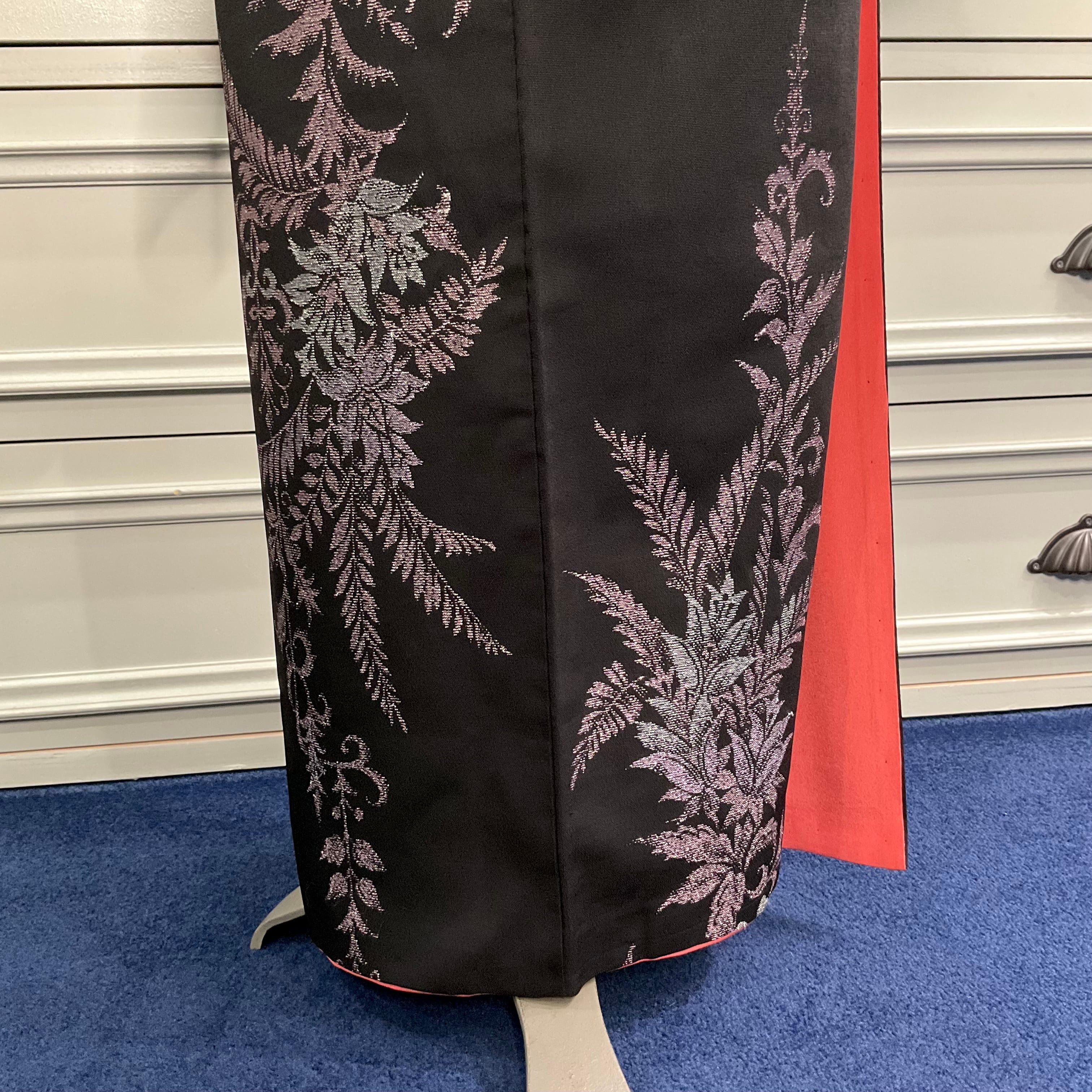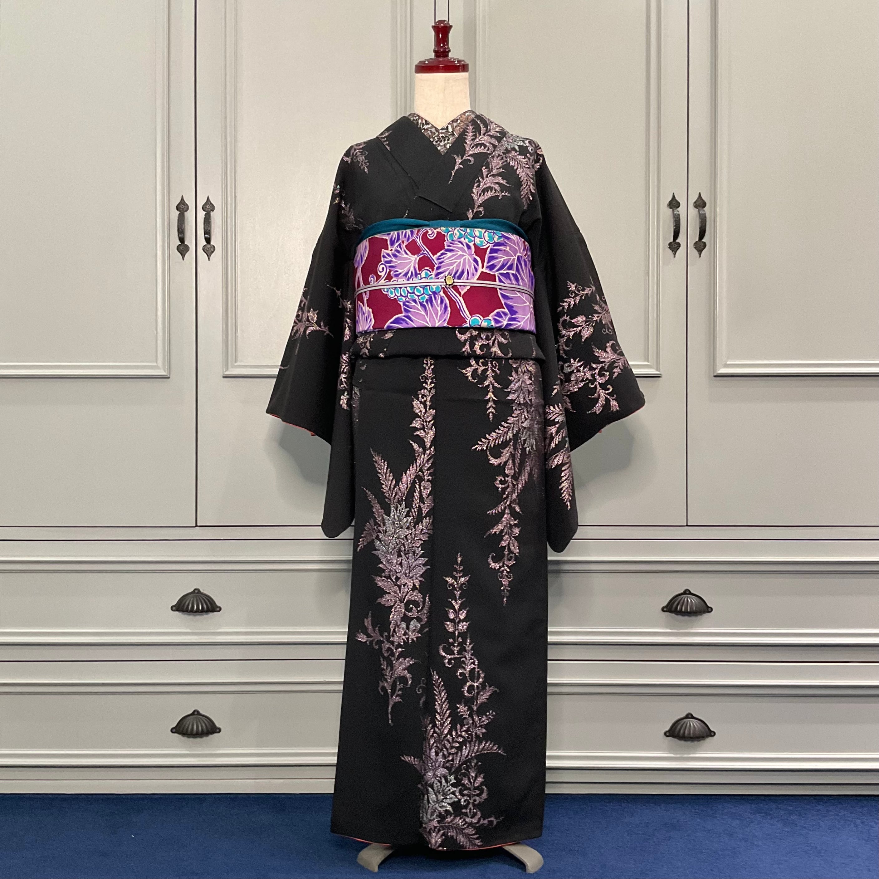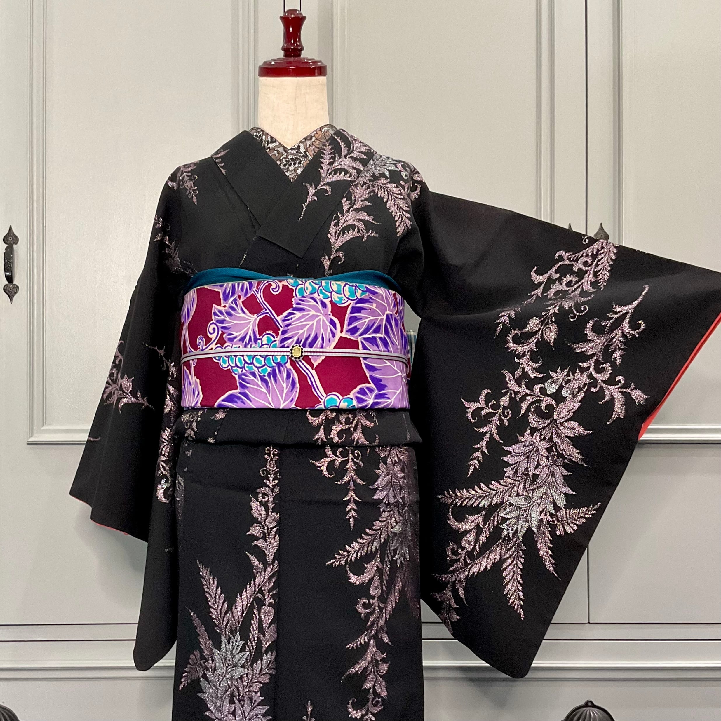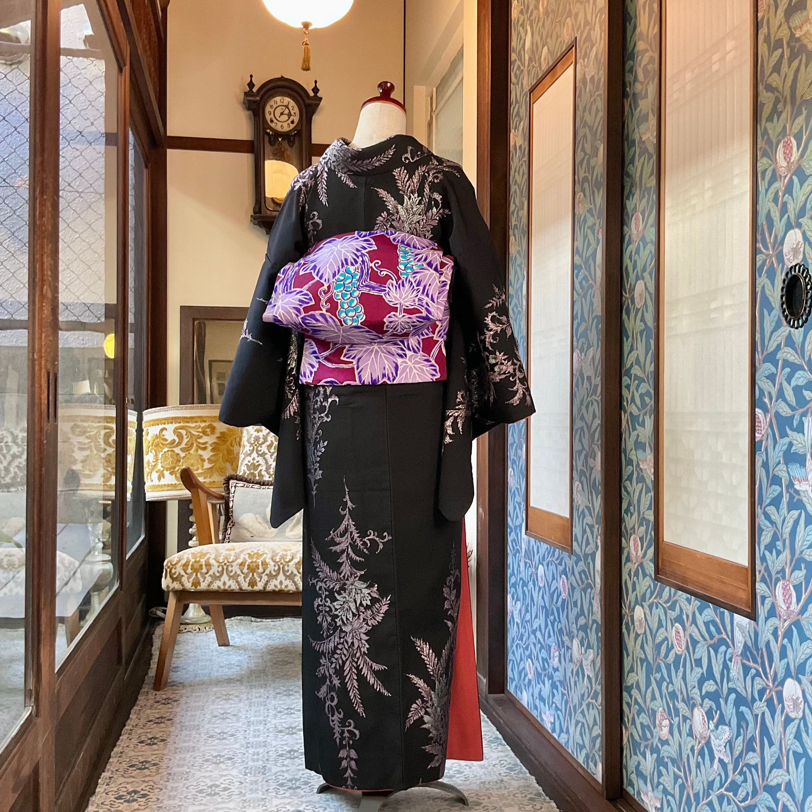 黒地にダマスクのような柄のセミアンティークのマジョリカお召着物です