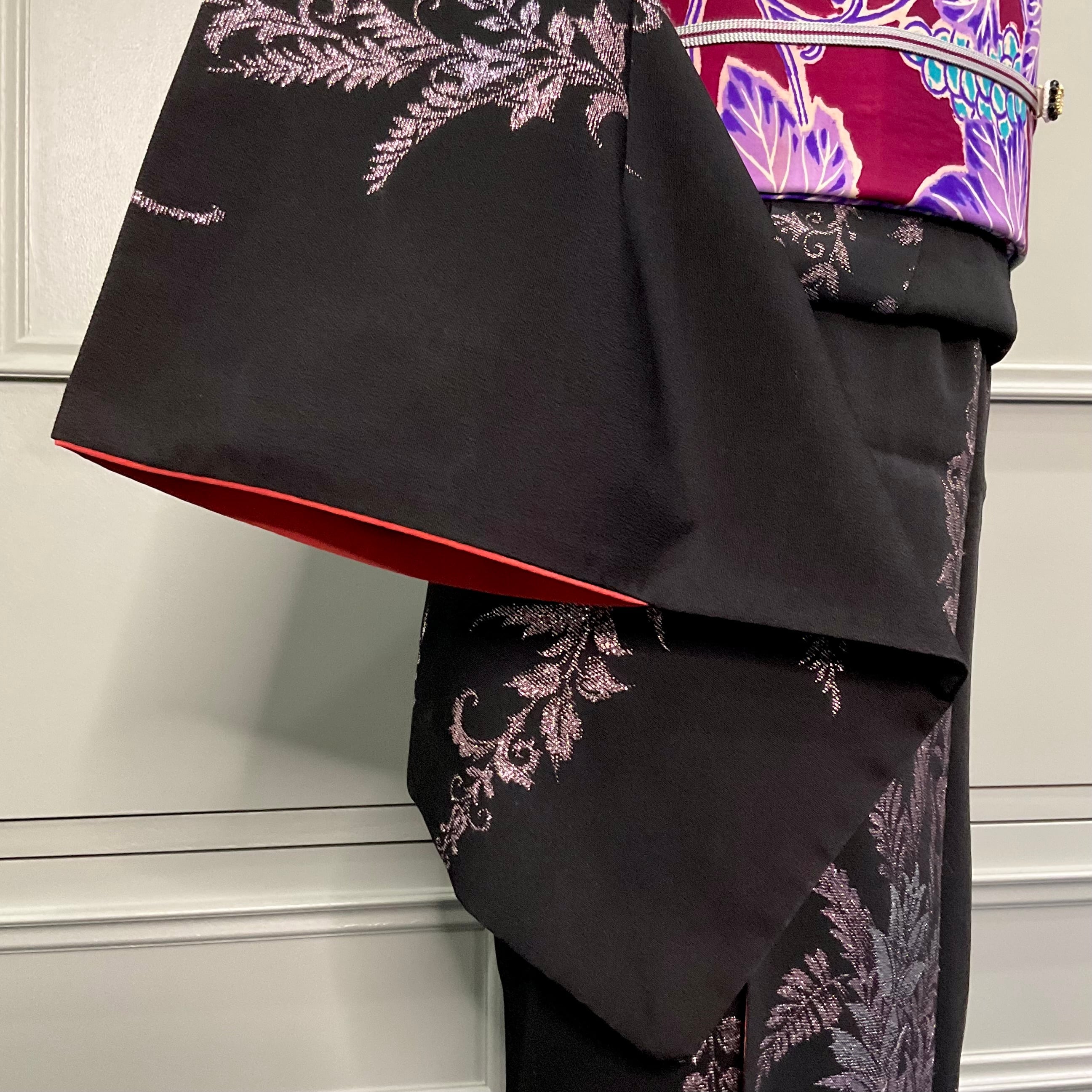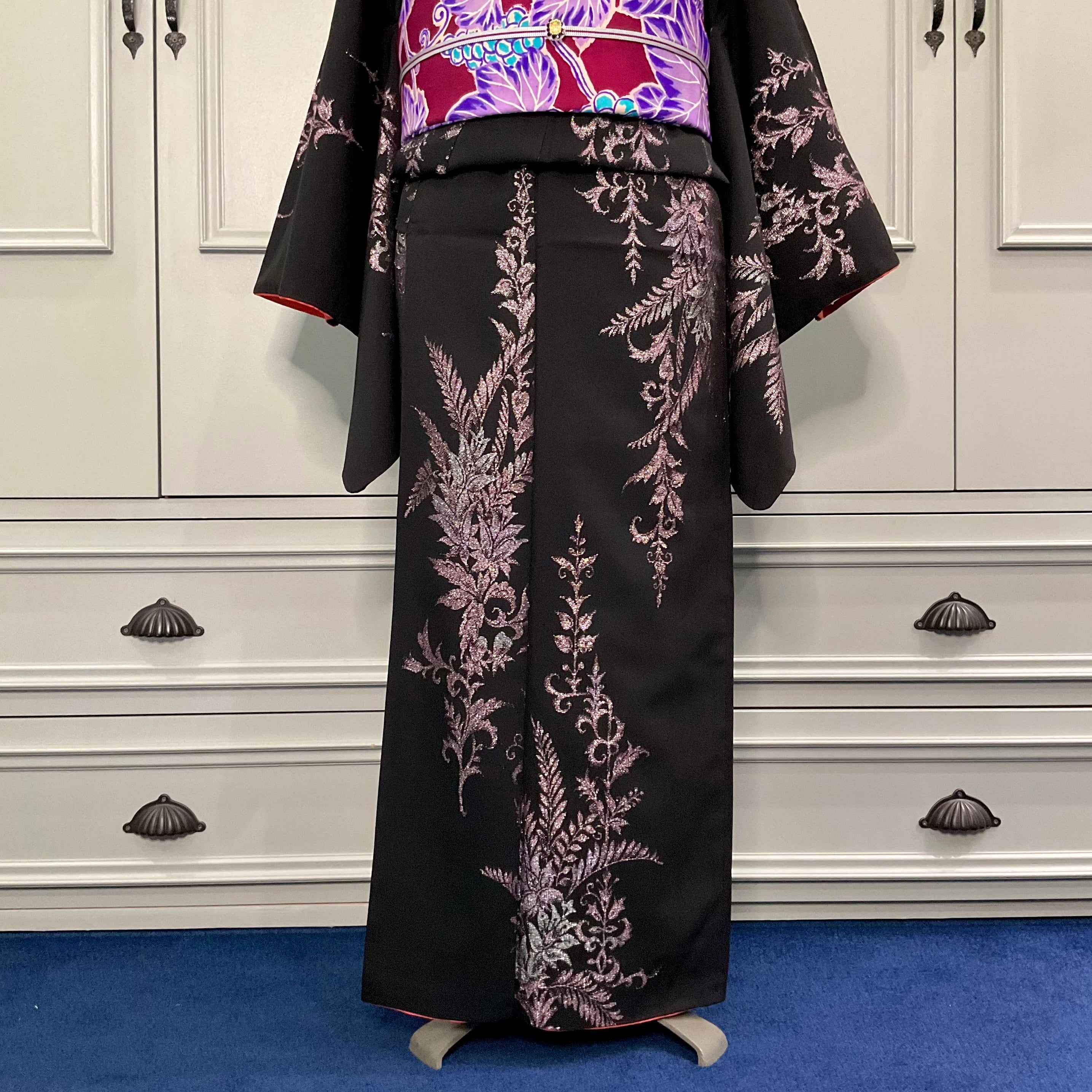 glitter damask*黒 ブラック セミアンティークお召着物 B338