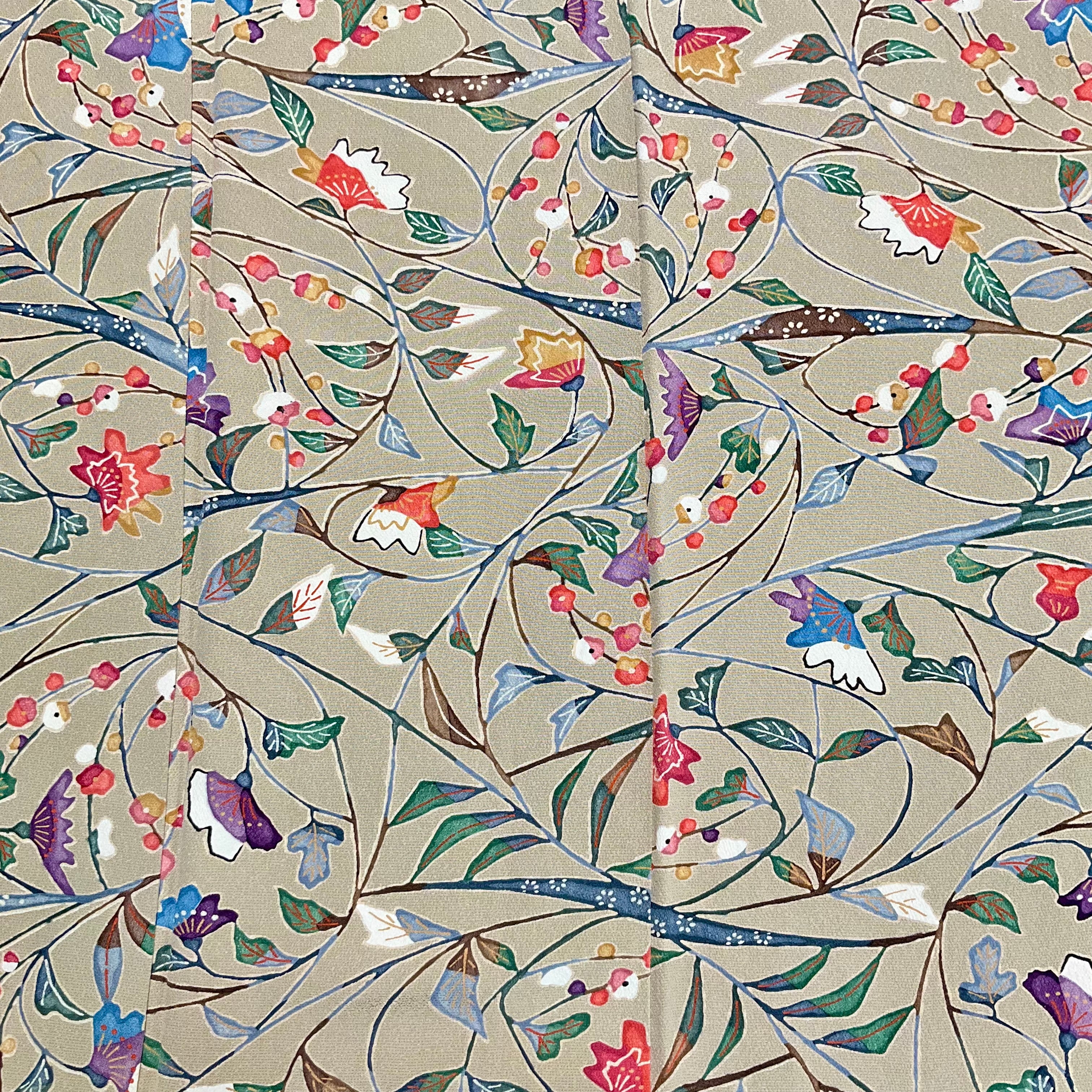 カフェオレ*紅型調 縮緬 雪持 ブラウン ボタニカル 小紋着物 B341
