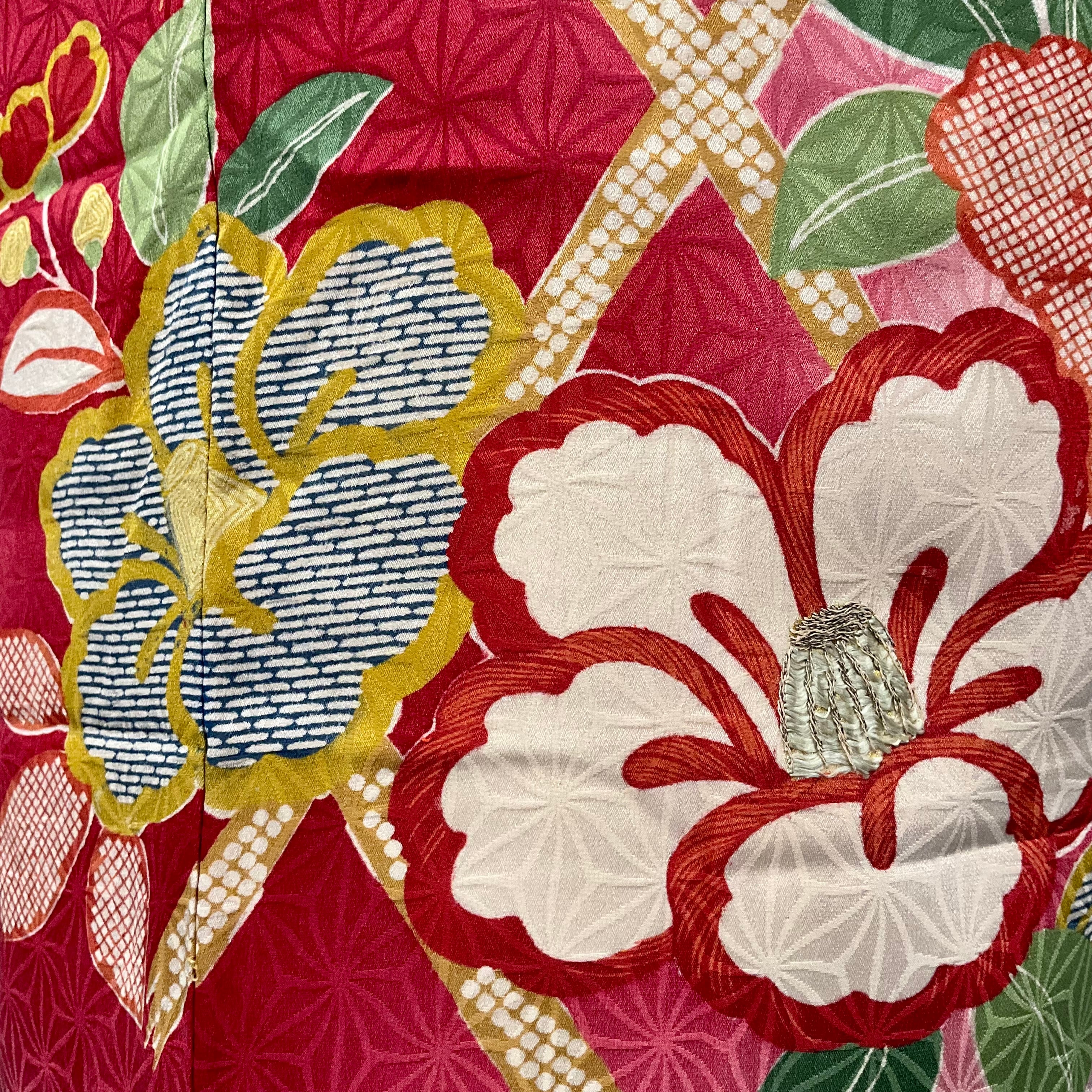 背中は、模様が繋がるように柄付けされていて、椿の真ん中に刺繍も施されています*
