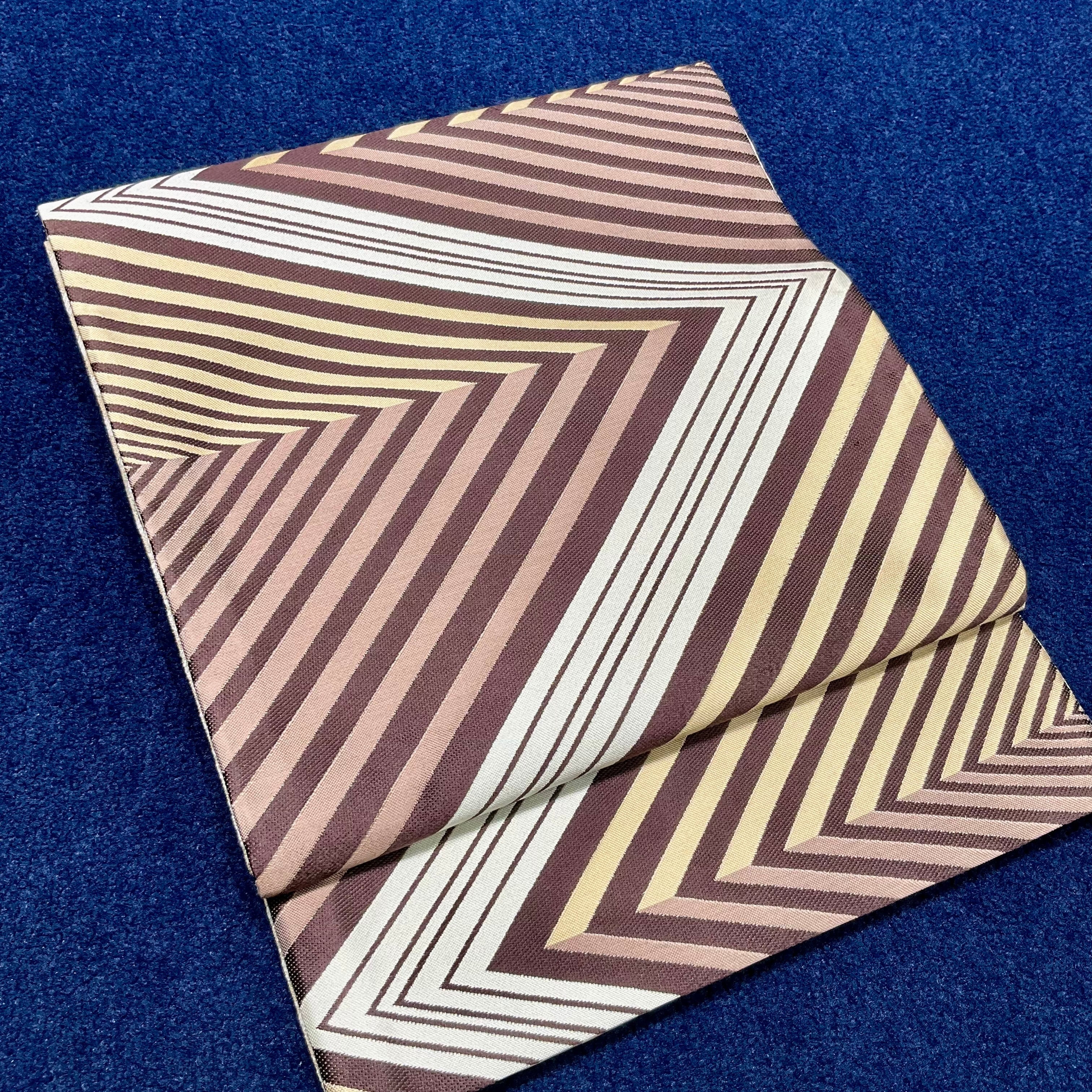 ブラウン、ダークブラウン、ベージュ、シャンパン、とチョコレートの色のような様々なブラウンでデザインされた斜線の幾何学模様のようにも見える柄行