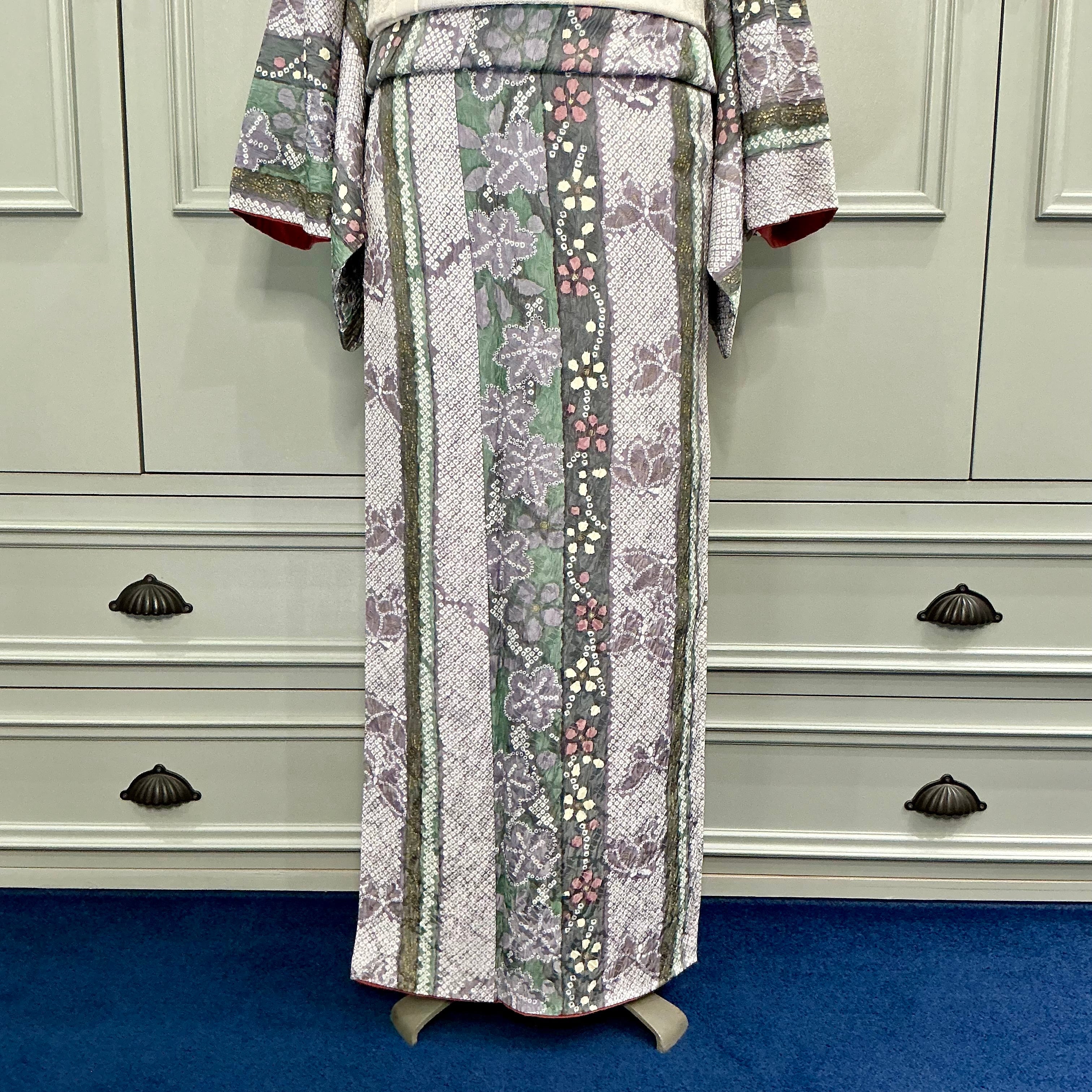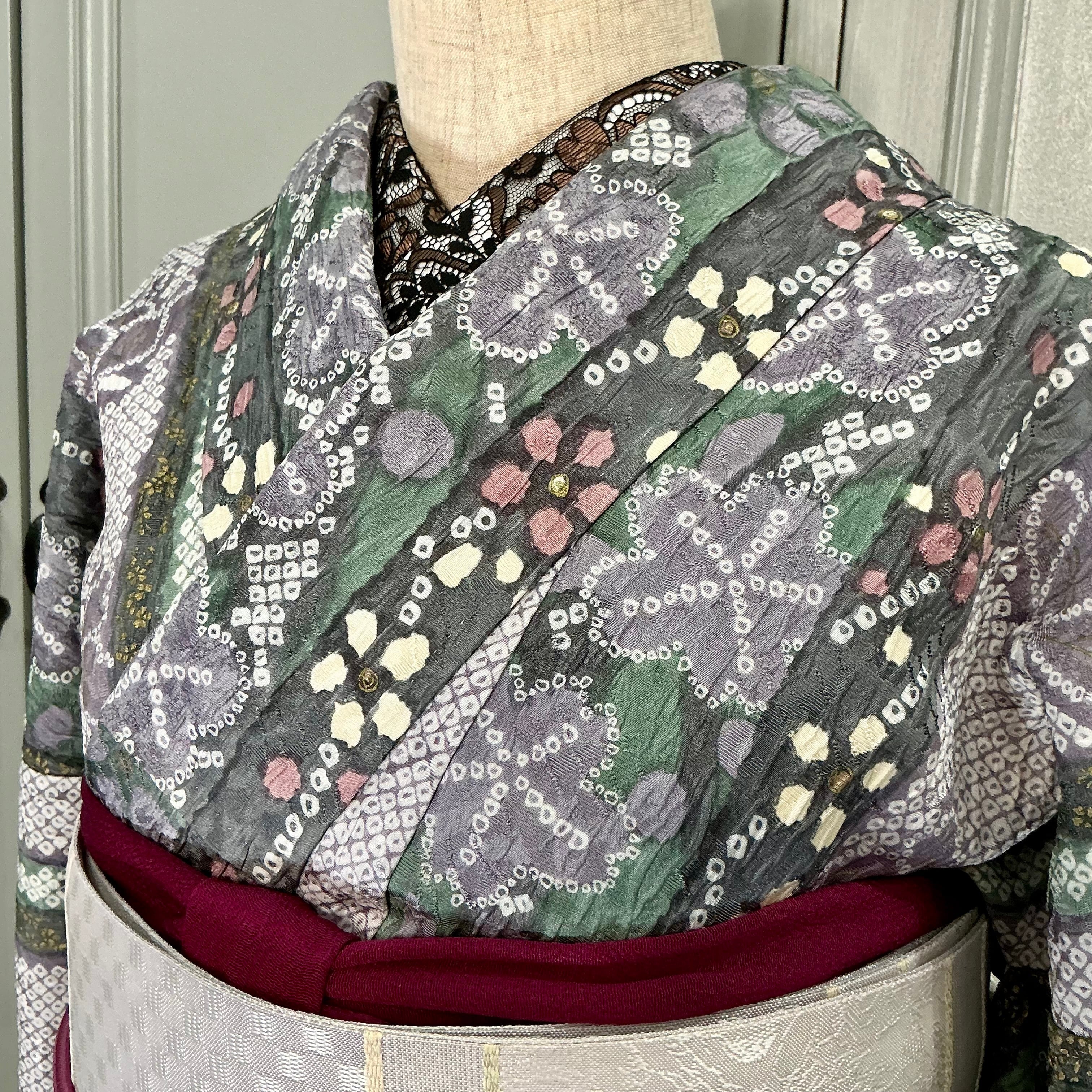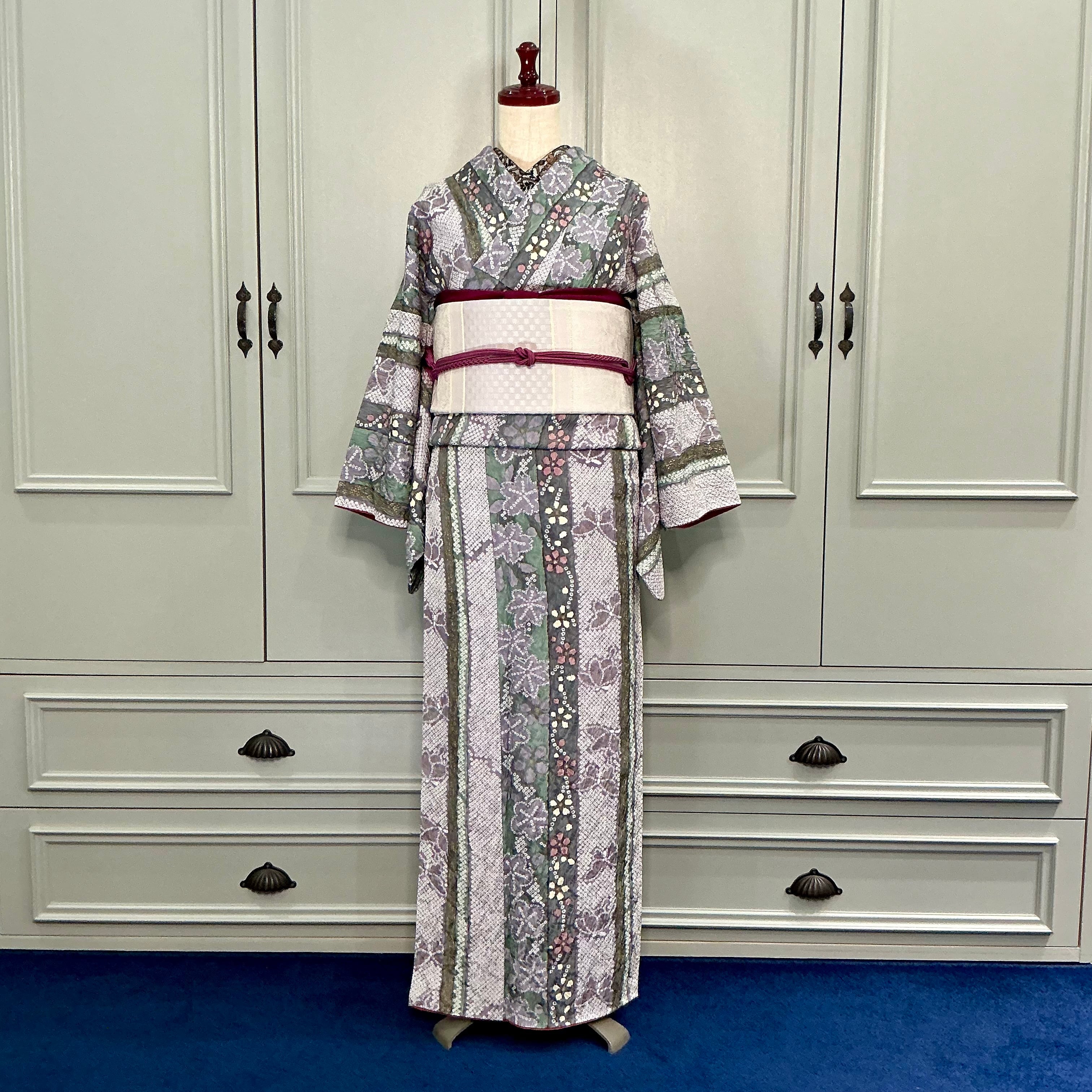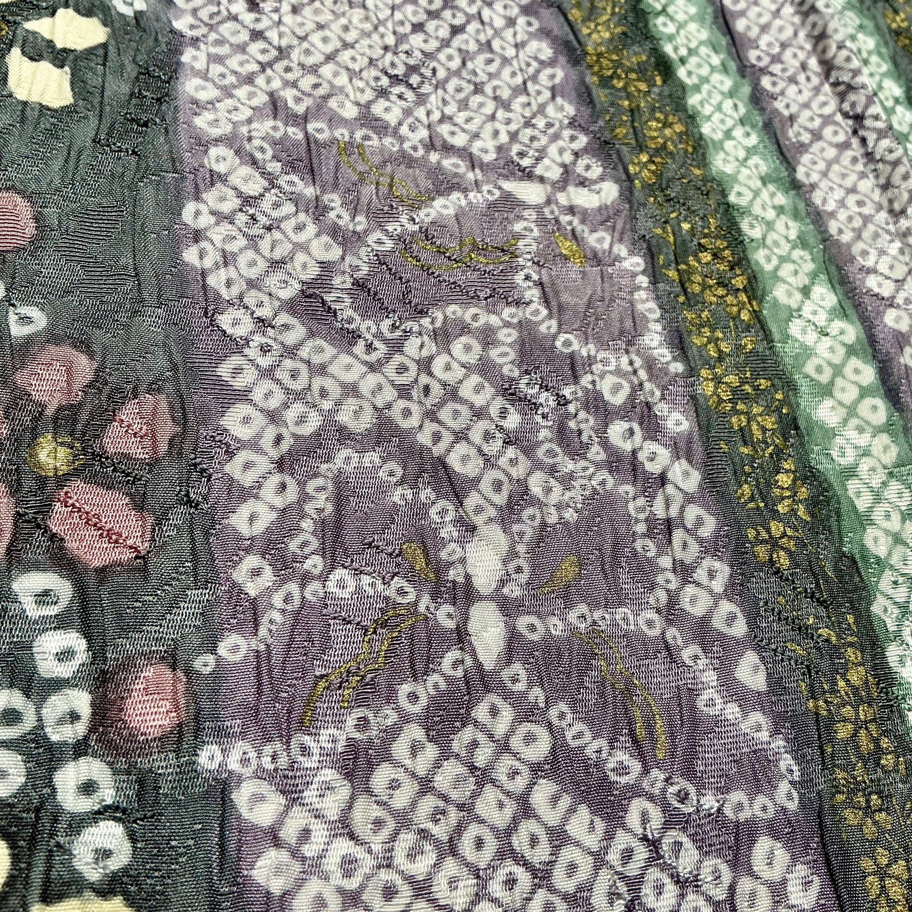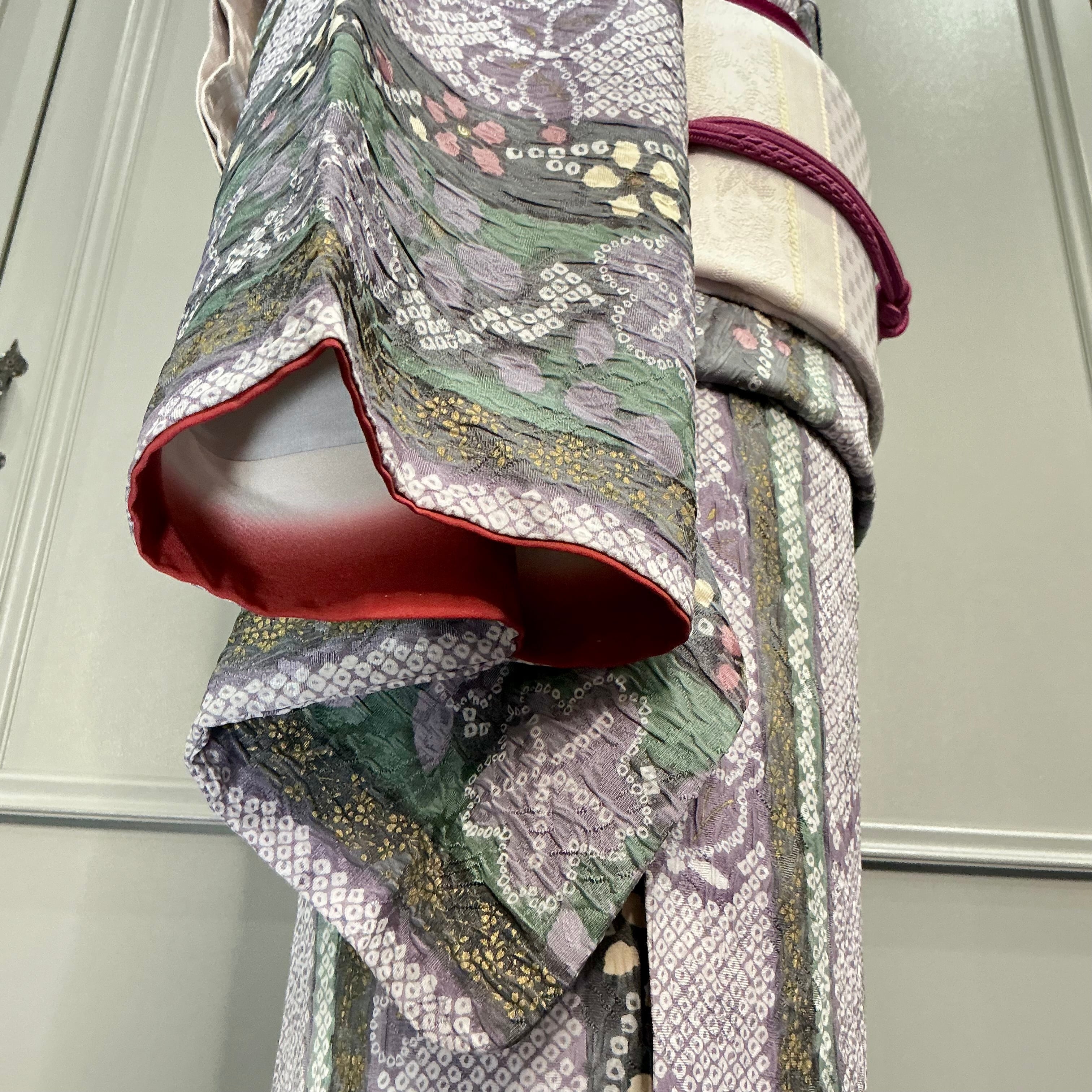 tall*Layered Reverie*ちょうちょ 紅葉 桜 鹿の子 パープル グリーン 小紋着物 B370