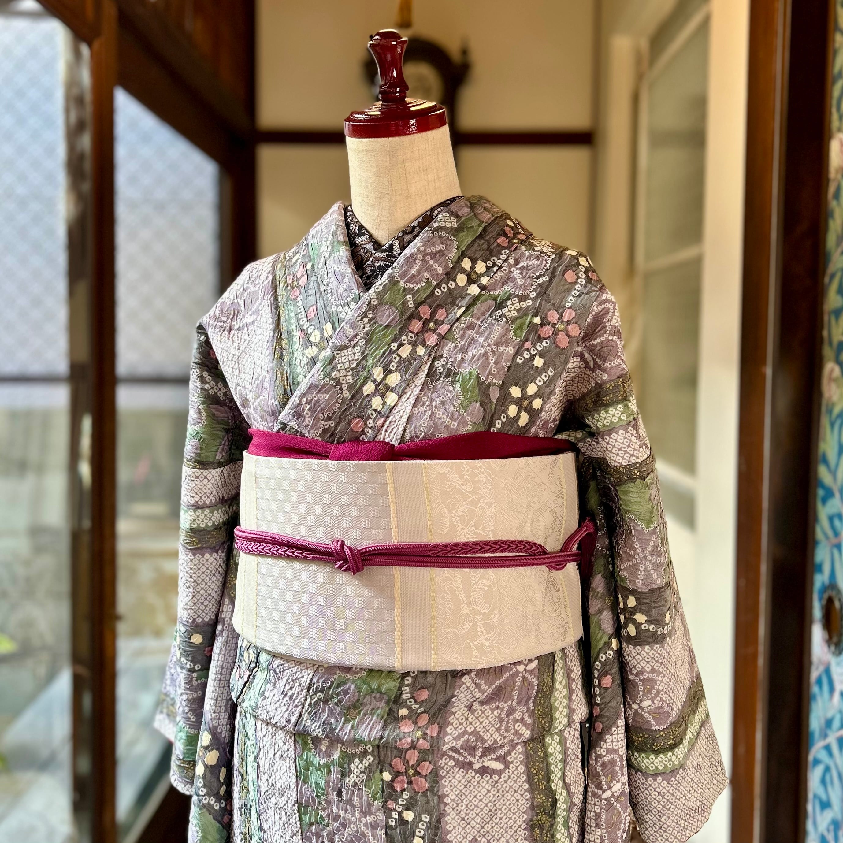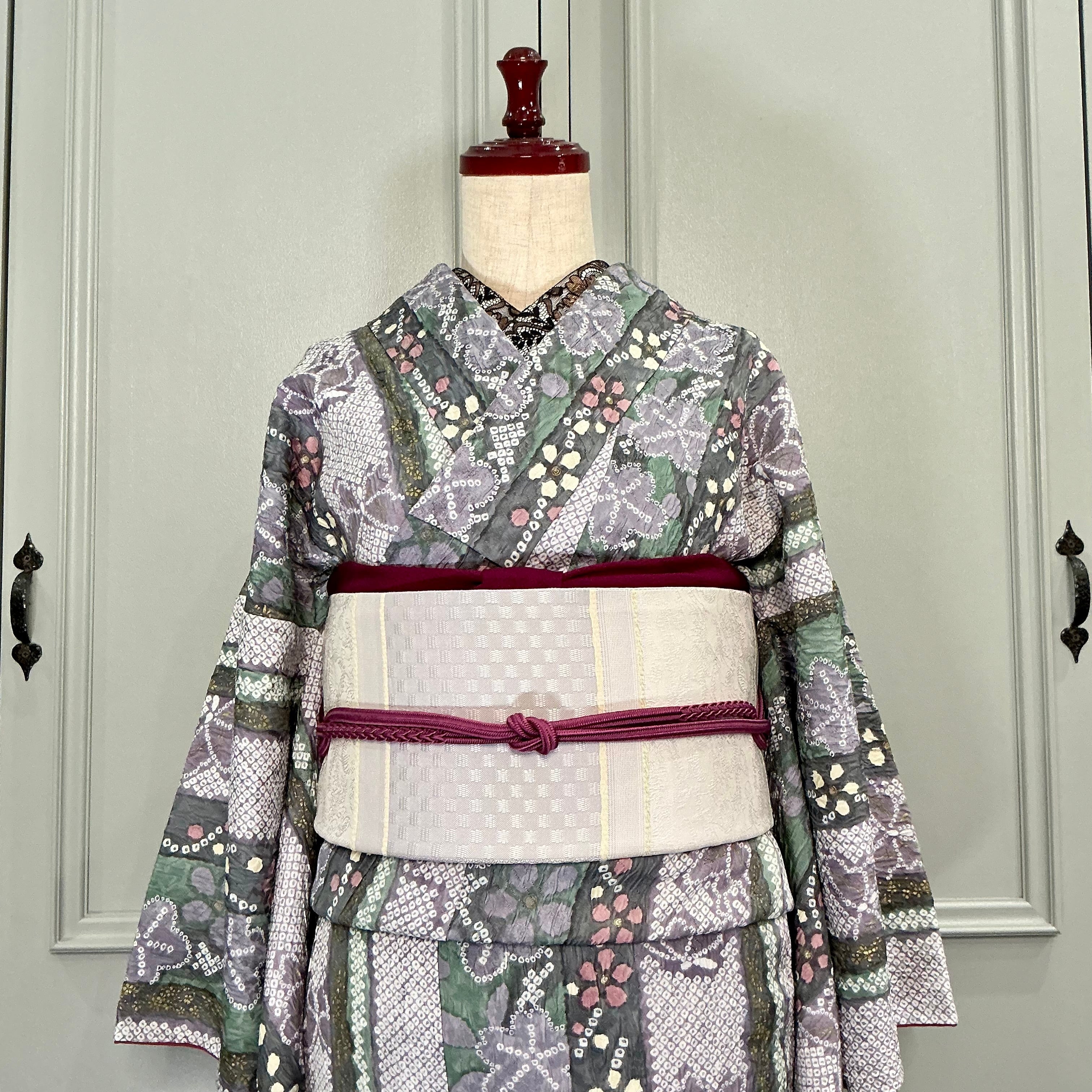 ○合わせた帯とオリジナル帯揚げプラムはweb shop掲載品です