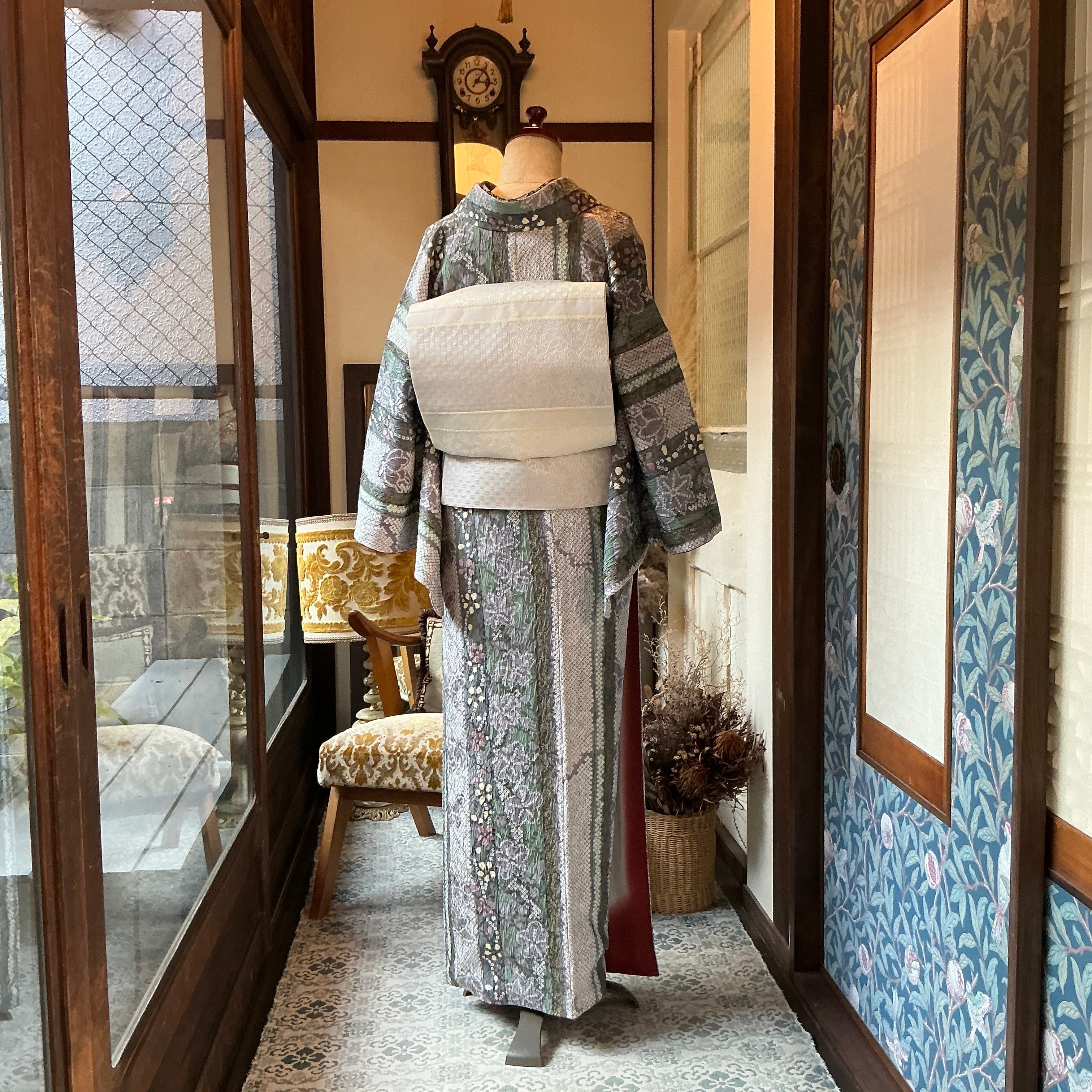 抽象的なお花なので季節問わず、色目も年齢問わず着られそうで魅力的ですね✨