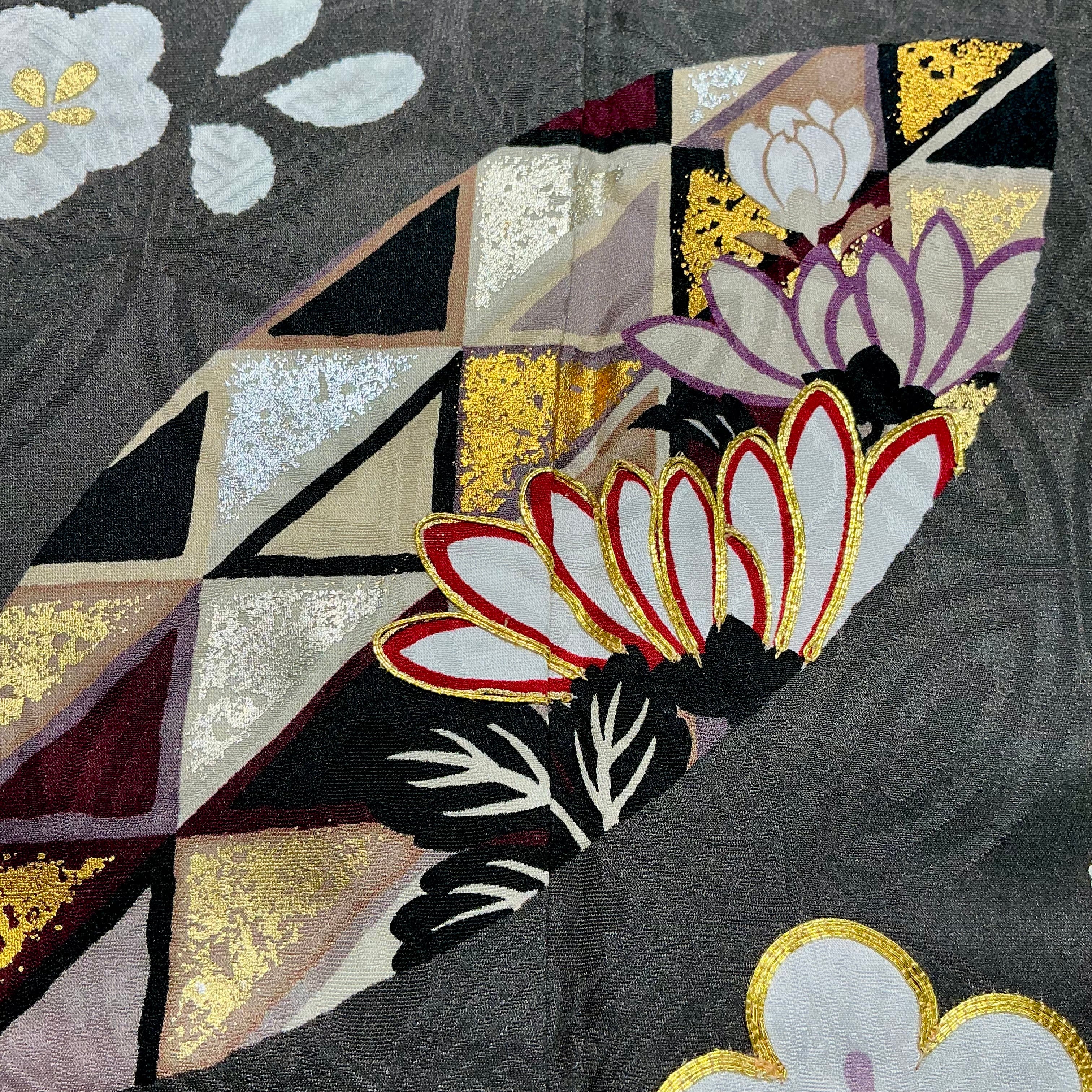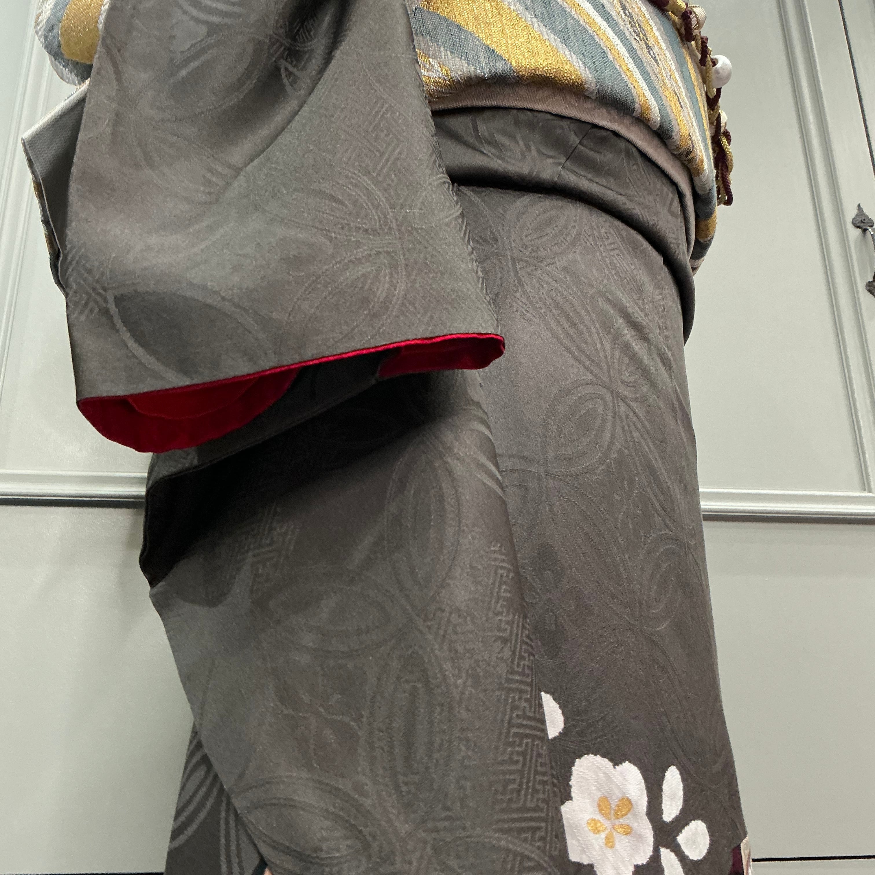 大人っぽくグレー地に映える、吉祥文様、花模様の金彩がさりげなくきらめき、クラシカルな魅力がたまりません。