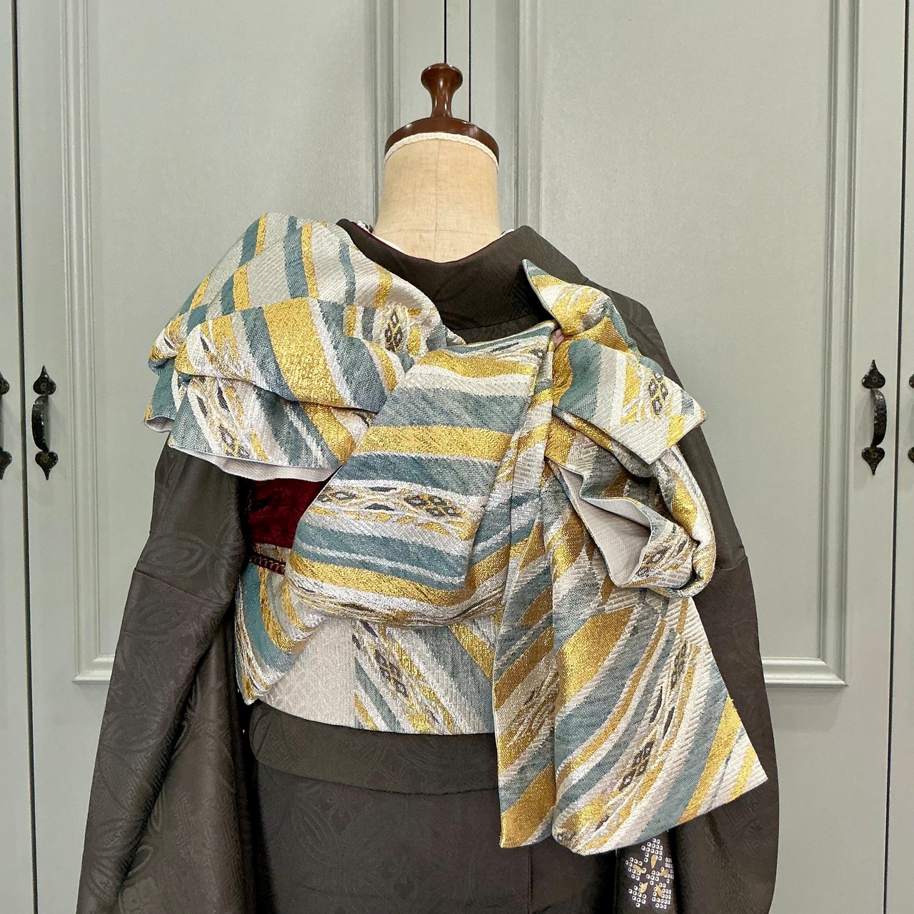 光の当たり具合で見える地模様の七宝柄も美しく、無地部分もしっかりと着る人を引き立ててくれます✨