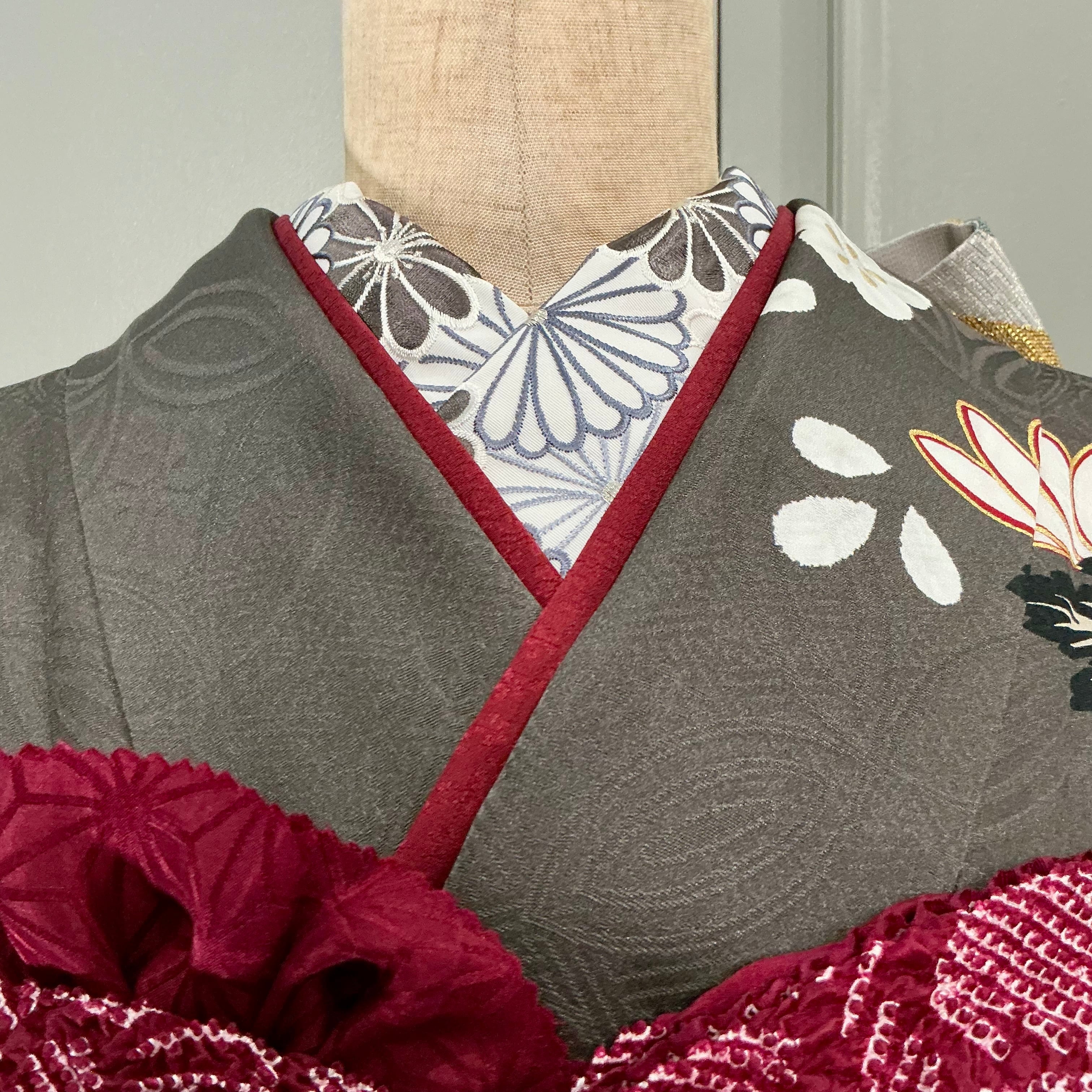 Grace in Grey*振袖セット 成人式 卒業式 振袖 袋帯 帯締め 帯揚げ 重ね衿 刺繍半衿 長襦袢 B372