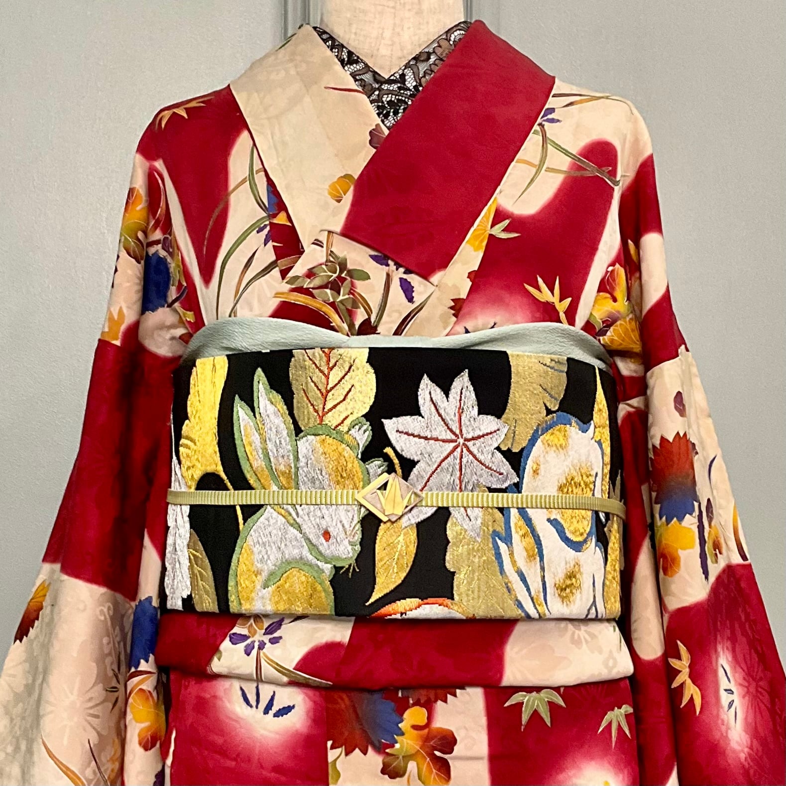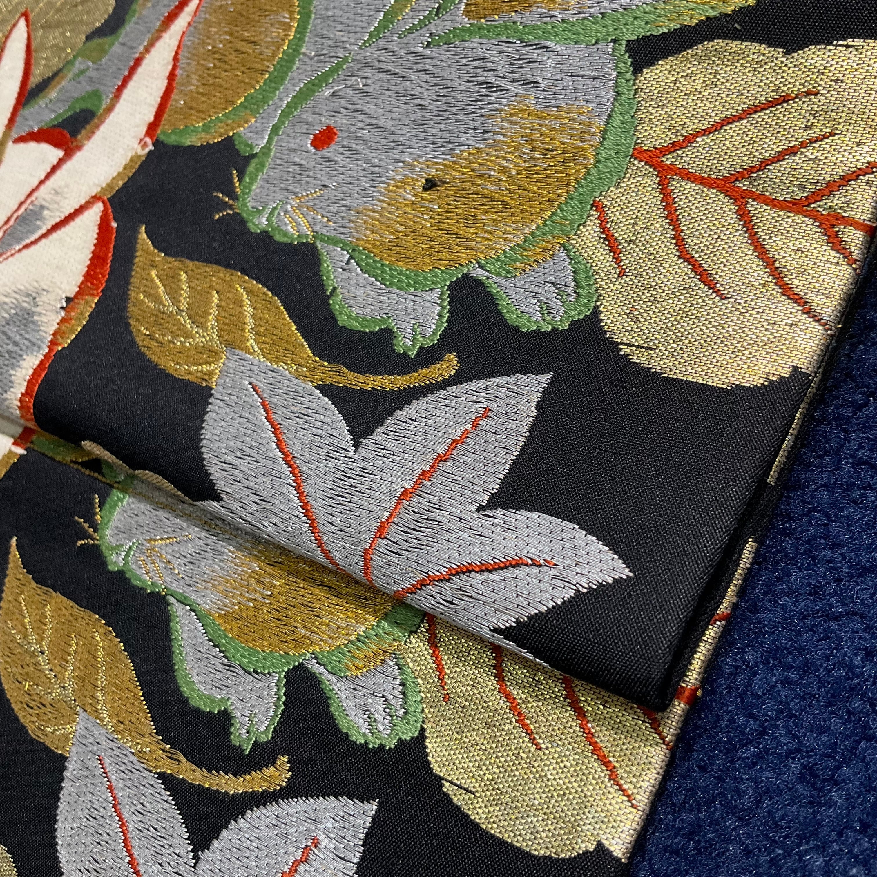 全体的に金糸や銀糸が織り込まれ、上品な豪華さがあるので、アンティークの訪問着や付け下げをカジュアルダウンさせて着たい時にもぴったりです✨