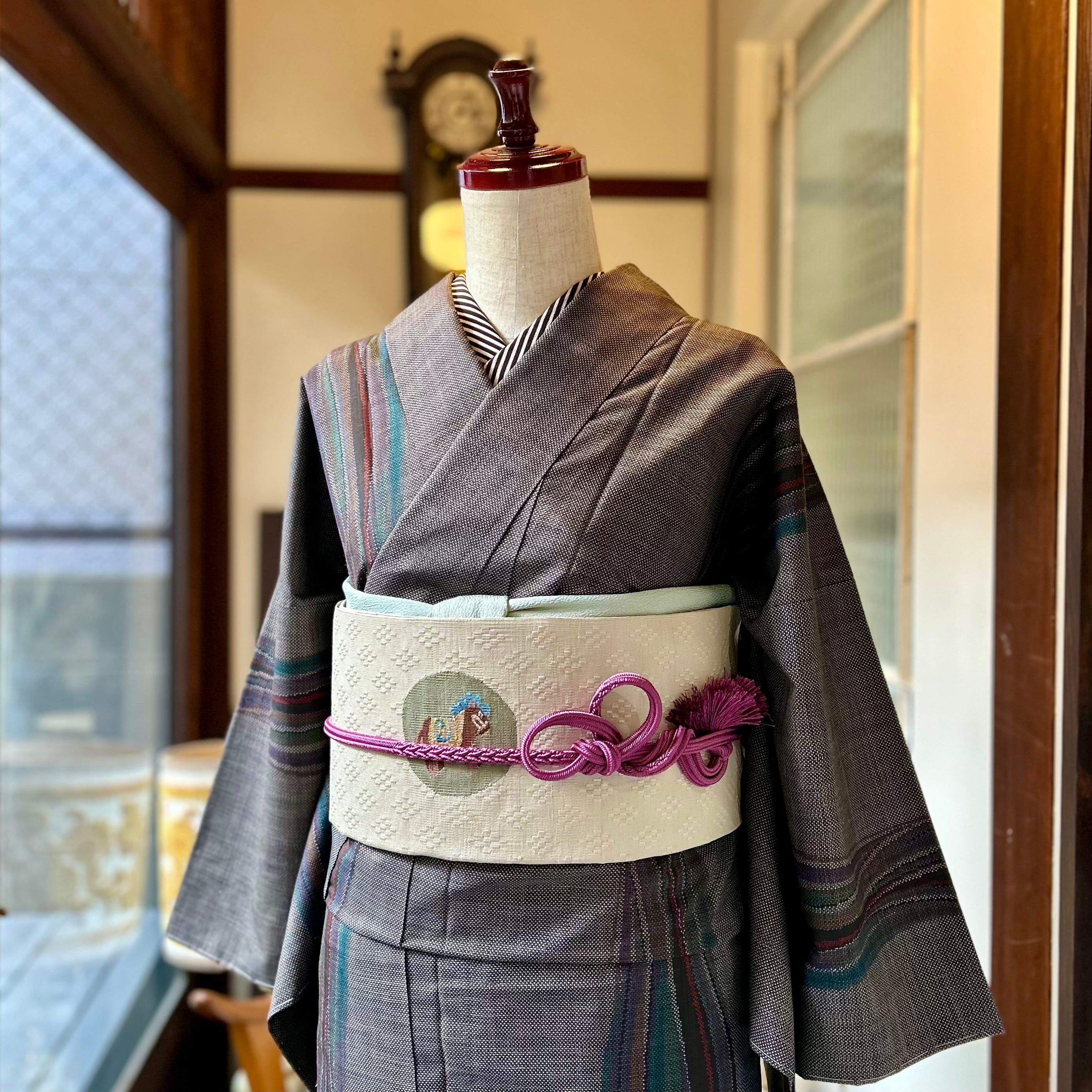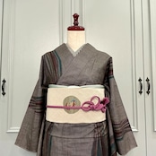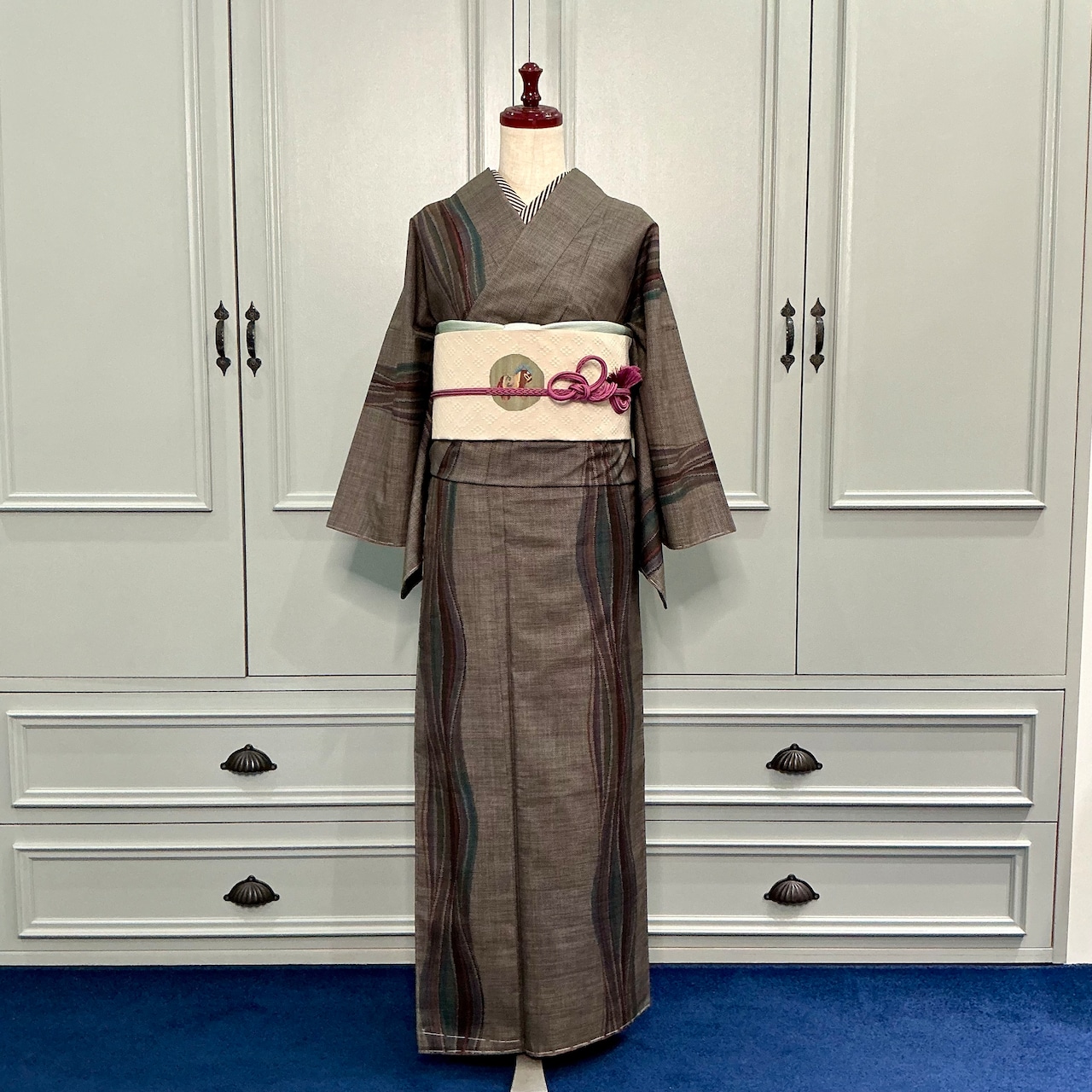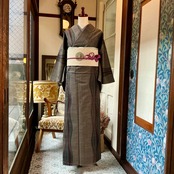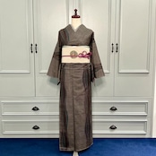 チョコレートみたいなカラーが洋風な雰囲気!だけではなく、立涌模様は古典柄なので、帯もモダンなものから、和の雰囲気が素敵なものまで幅広く合わせてられそうです♩