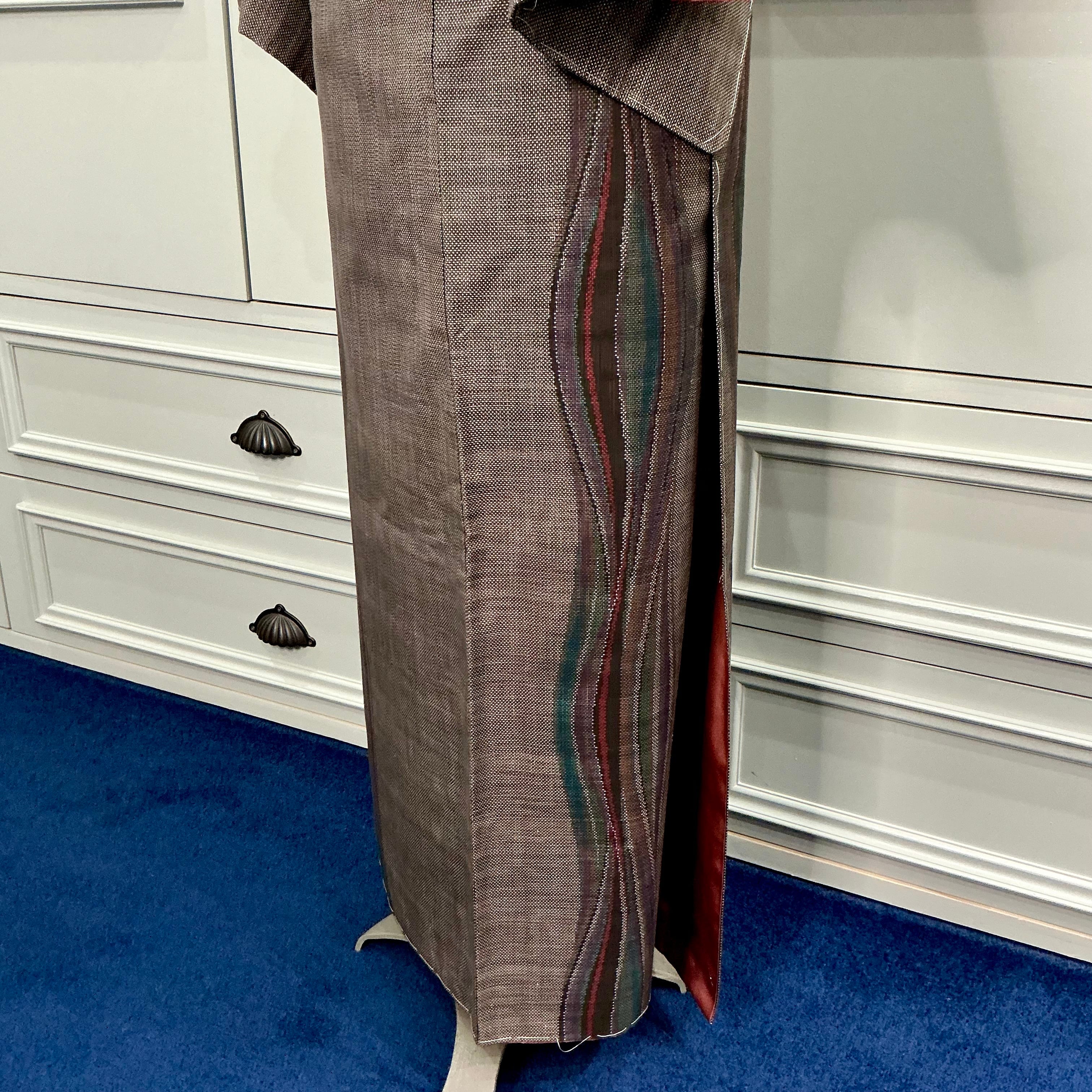 long*Silent Line*未使用品 ワイド 身幅広め 立涌 よろけ縞 ブラウン 大島紬着物 B389