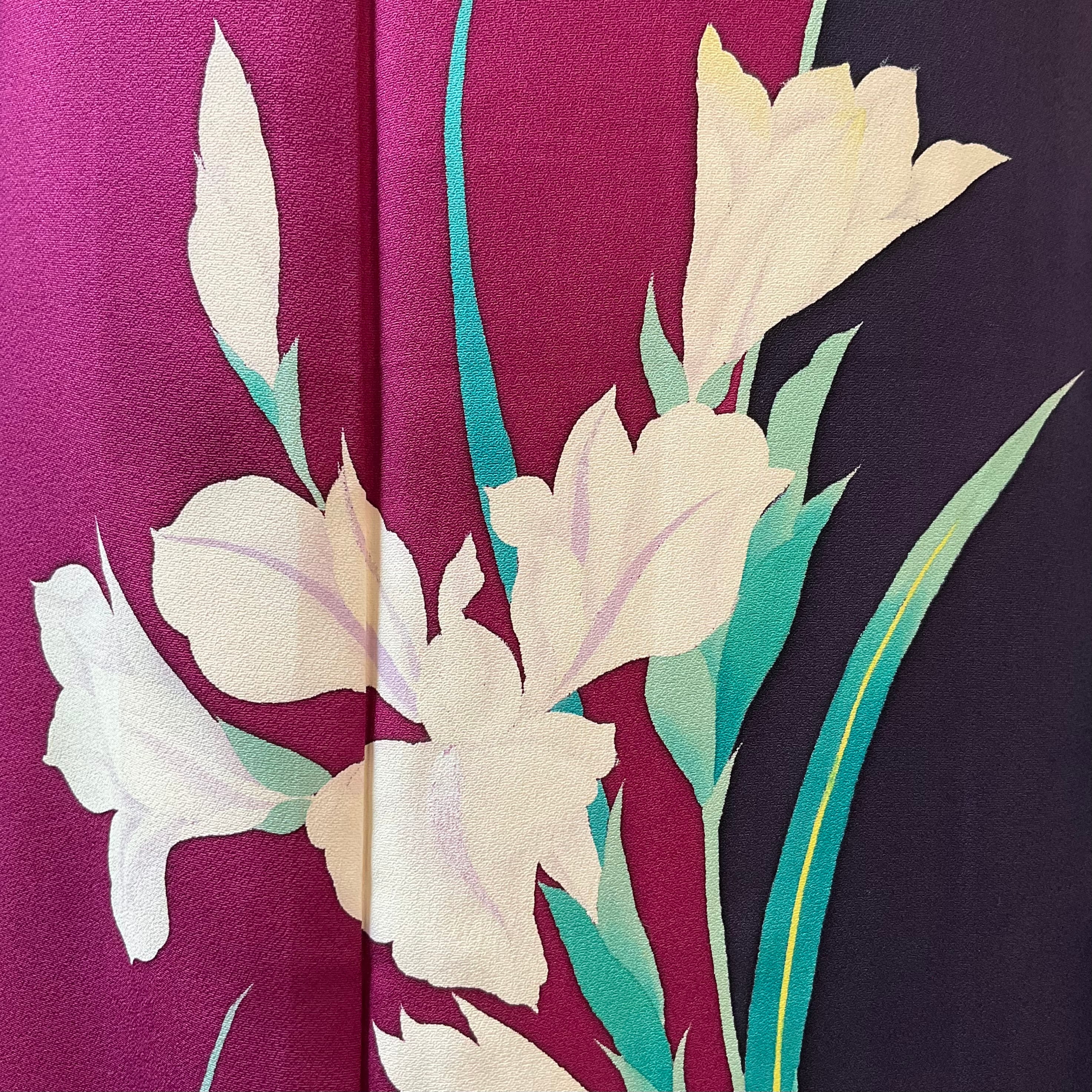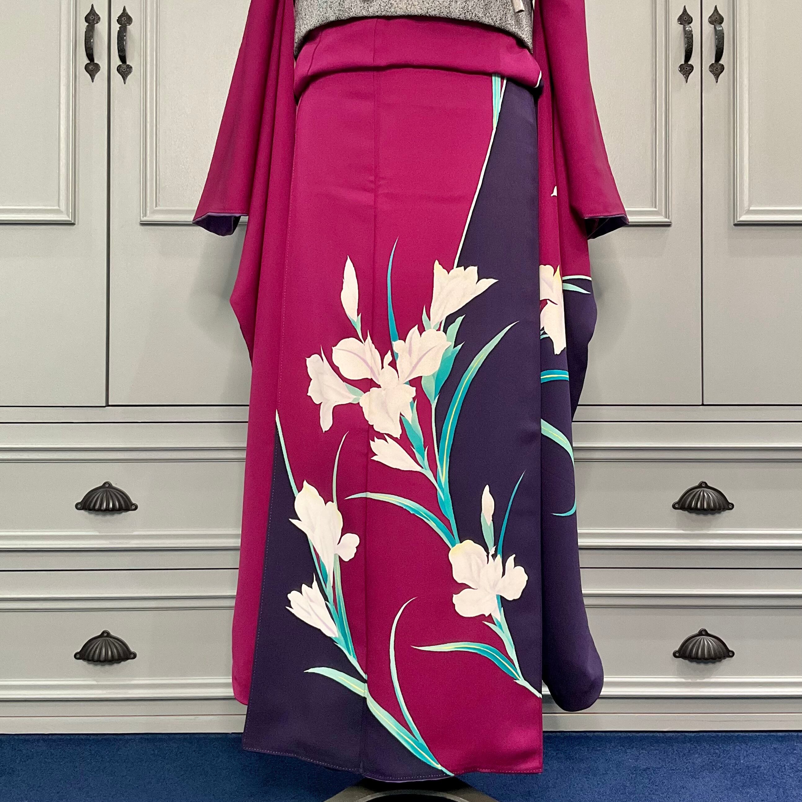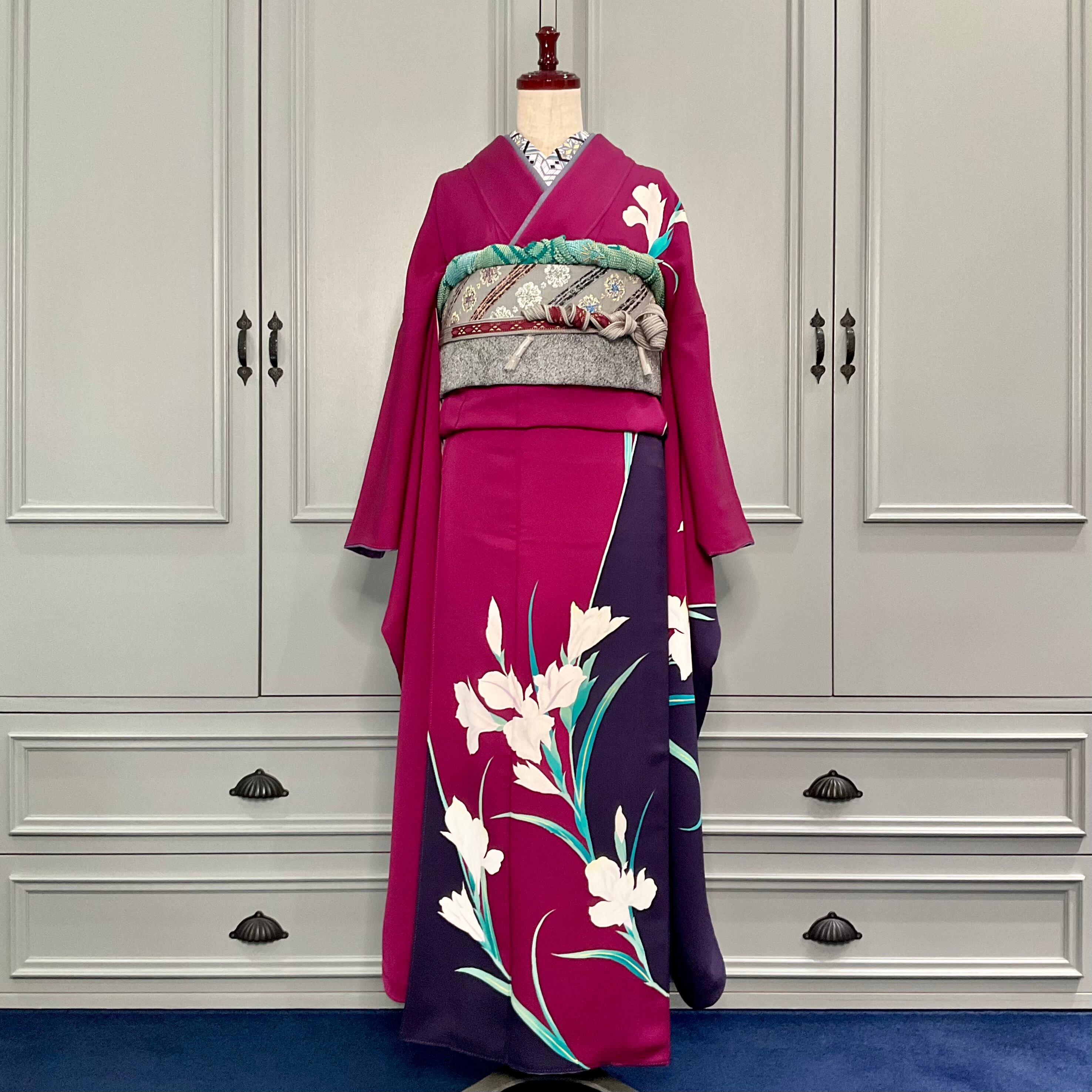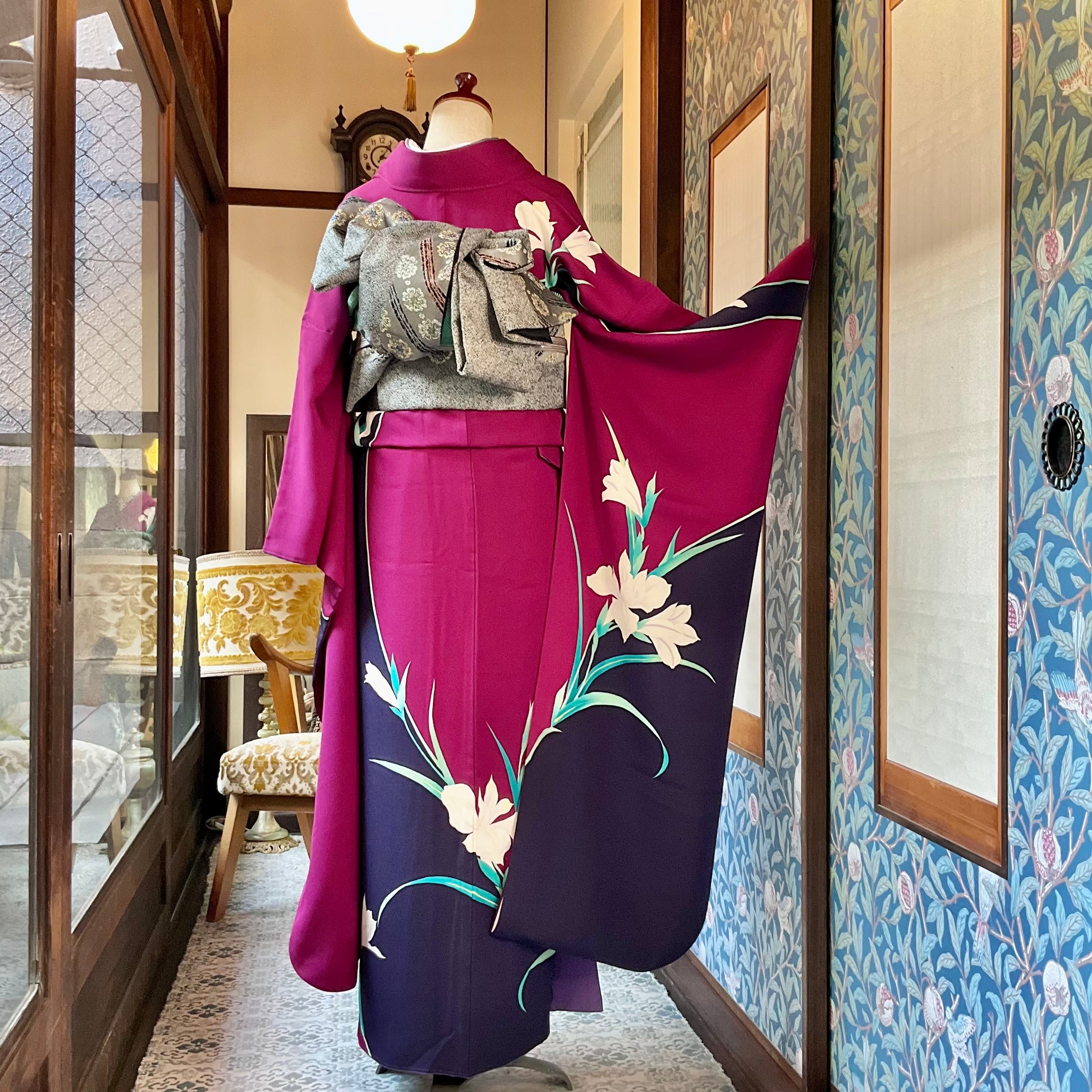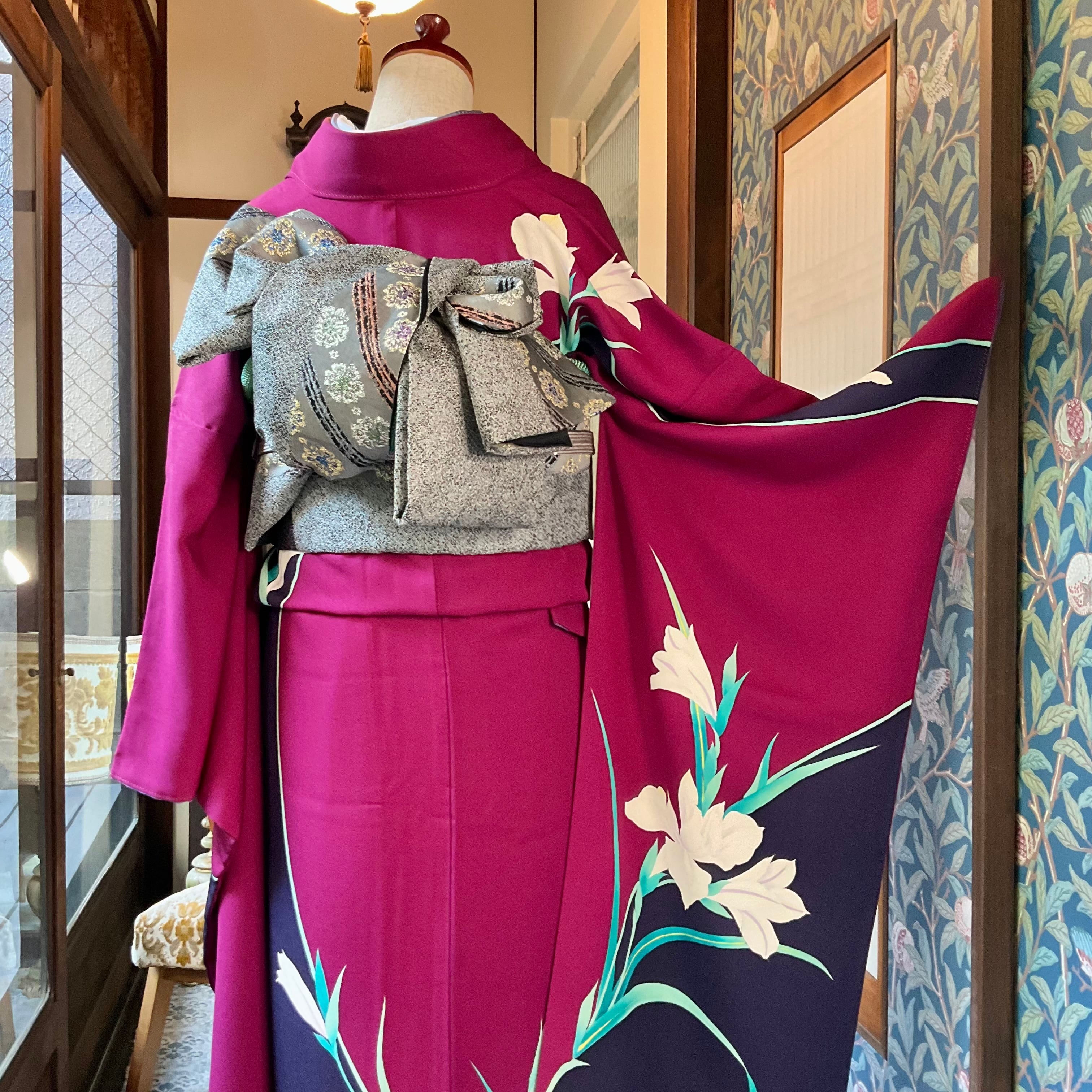 ボルドー×パープルの色の掛け合わせが綺麗な地色に、スラリと咲いた洋花が静かに美しい振袖です✨