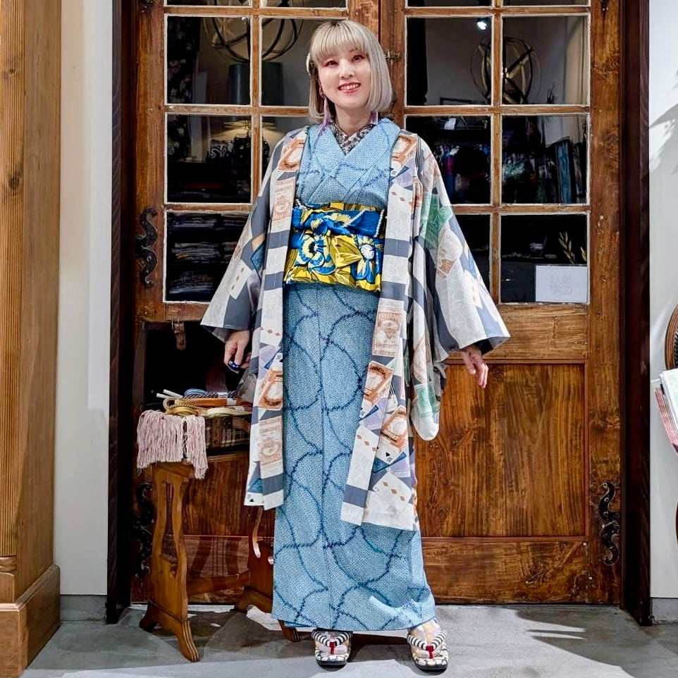 モノトーン感覚で合わせられるので、アンティーク着物はもちろん、リサイクルや現代モノの着物にもよく合います。
