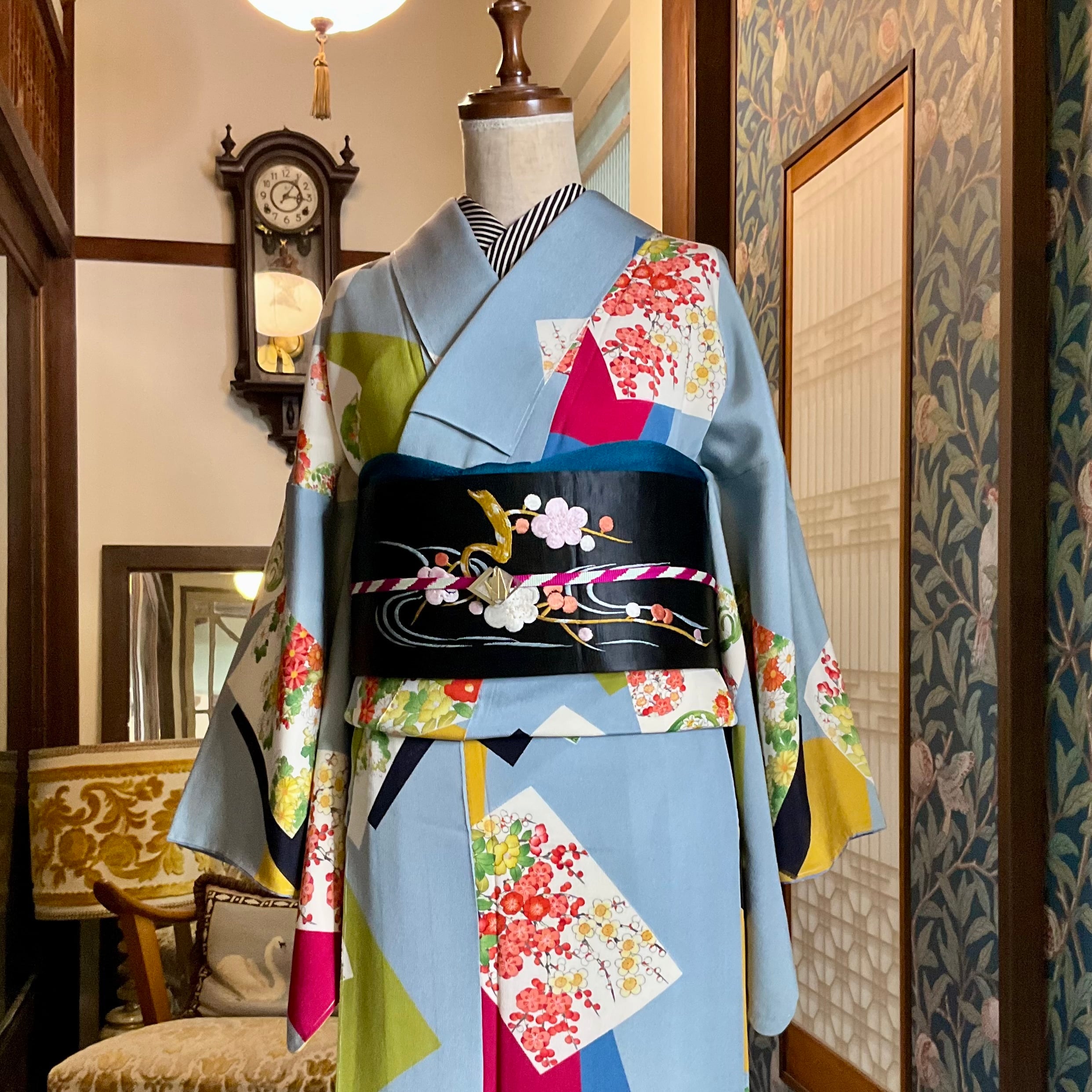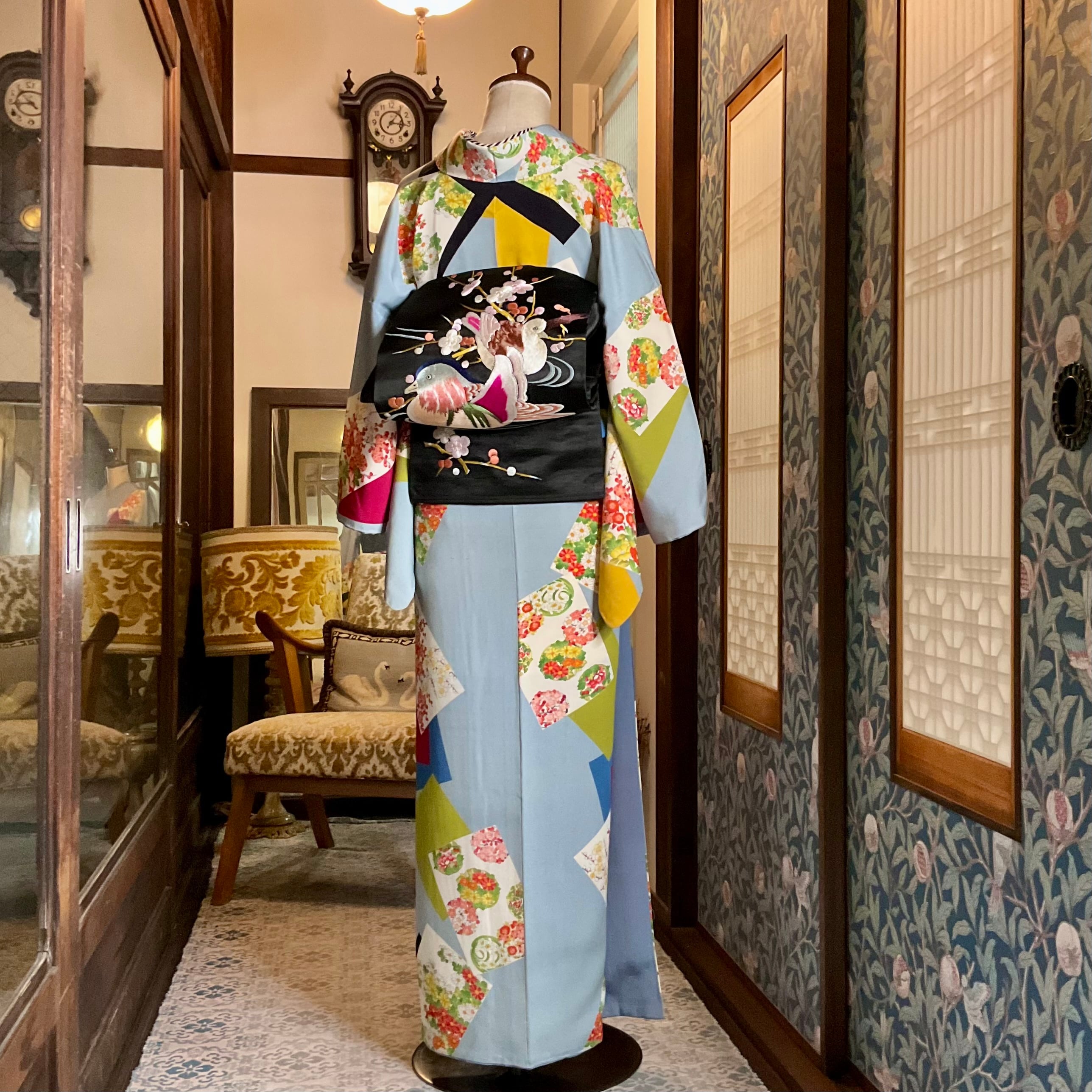 豪華な刺繍なので、アンティークの訪問着や付下げ着物をカジュアルダウンして着たいときにもオススメです♩