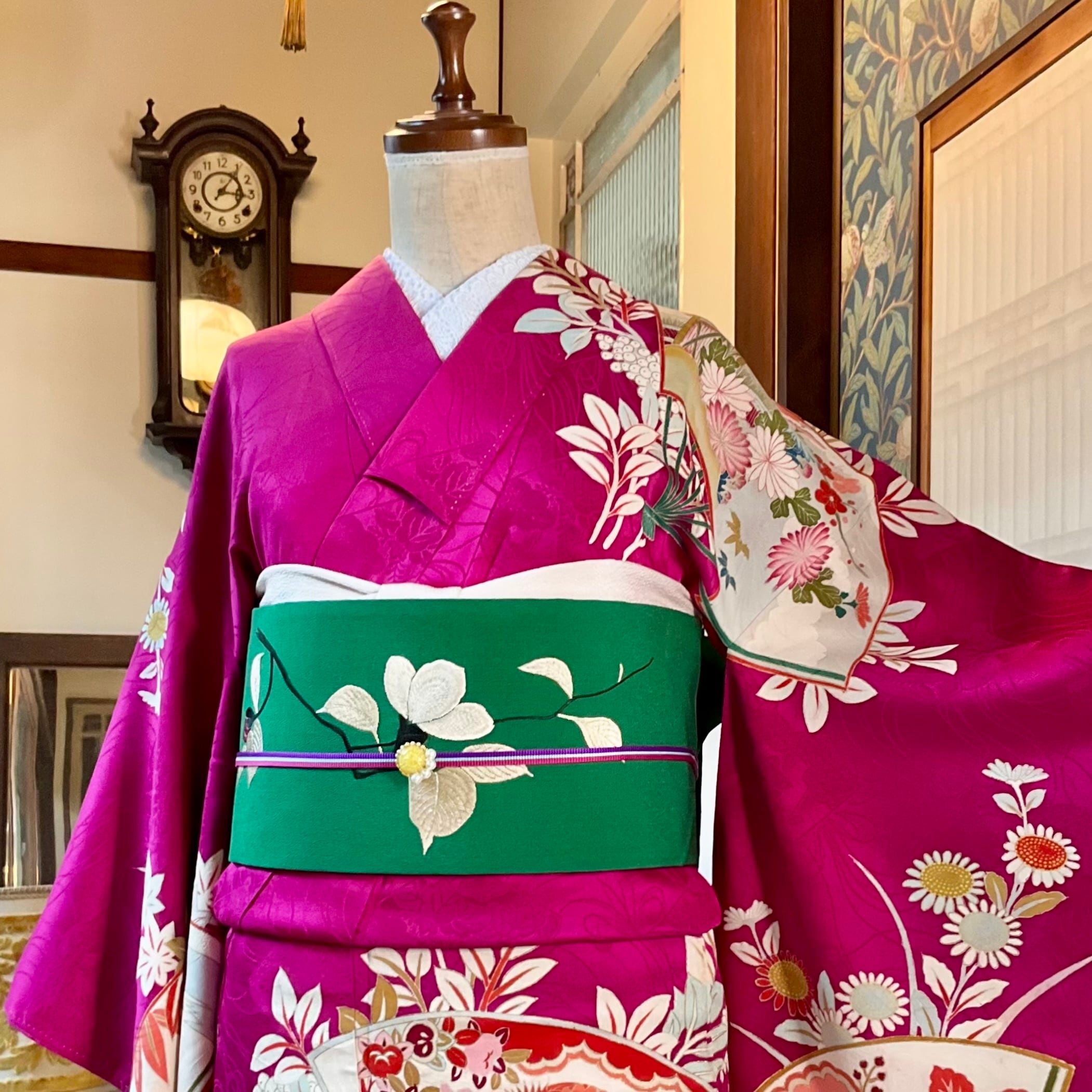 普段着の小紋だけでなく、アンティークの訪問着や付下げをカジュアルダウンさせて着たいときに合わせるのも素敵です♩