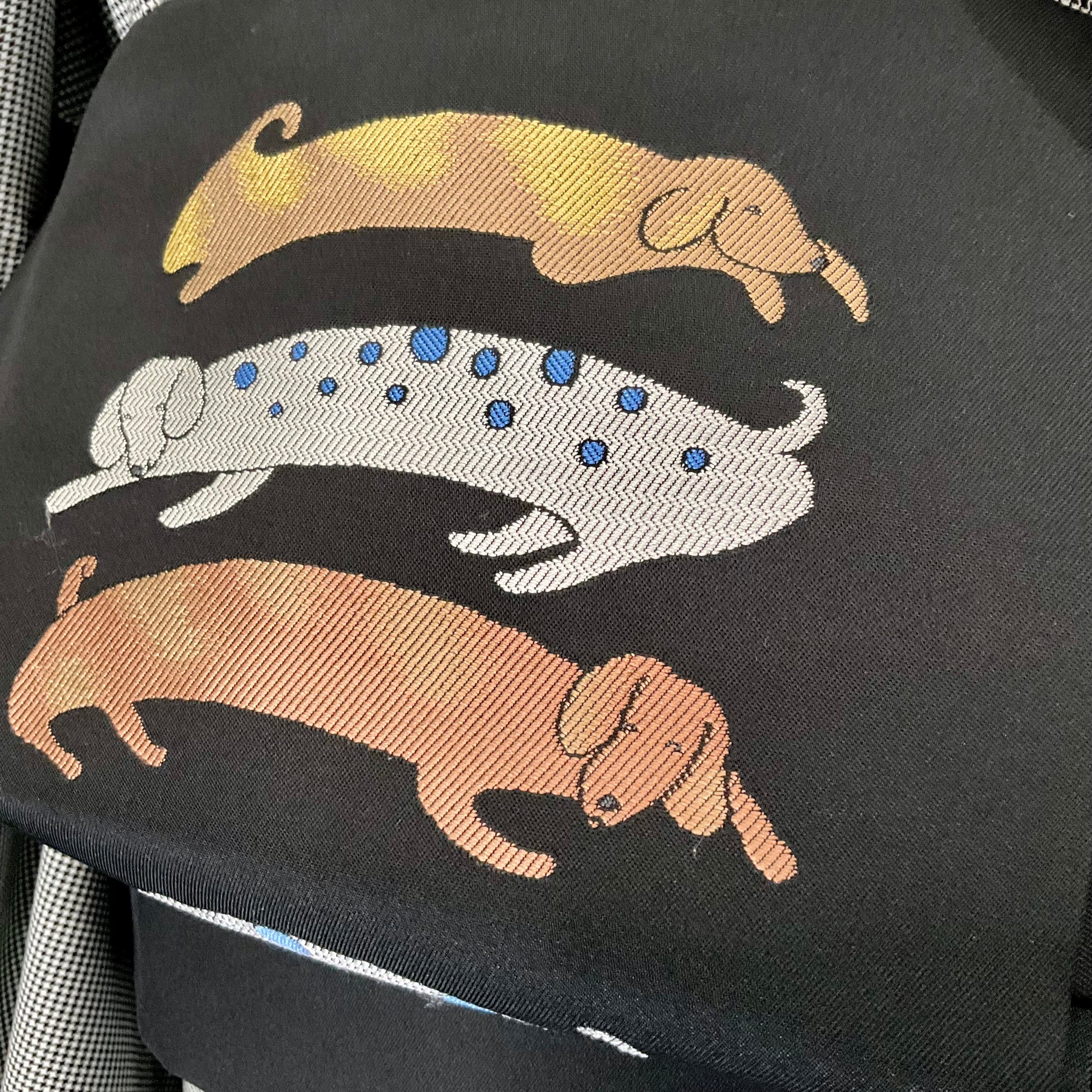 お昼寝わんこ*犬 わんこ ダックスフント ドット犬 織 ブラック 名古屋帯 B402
