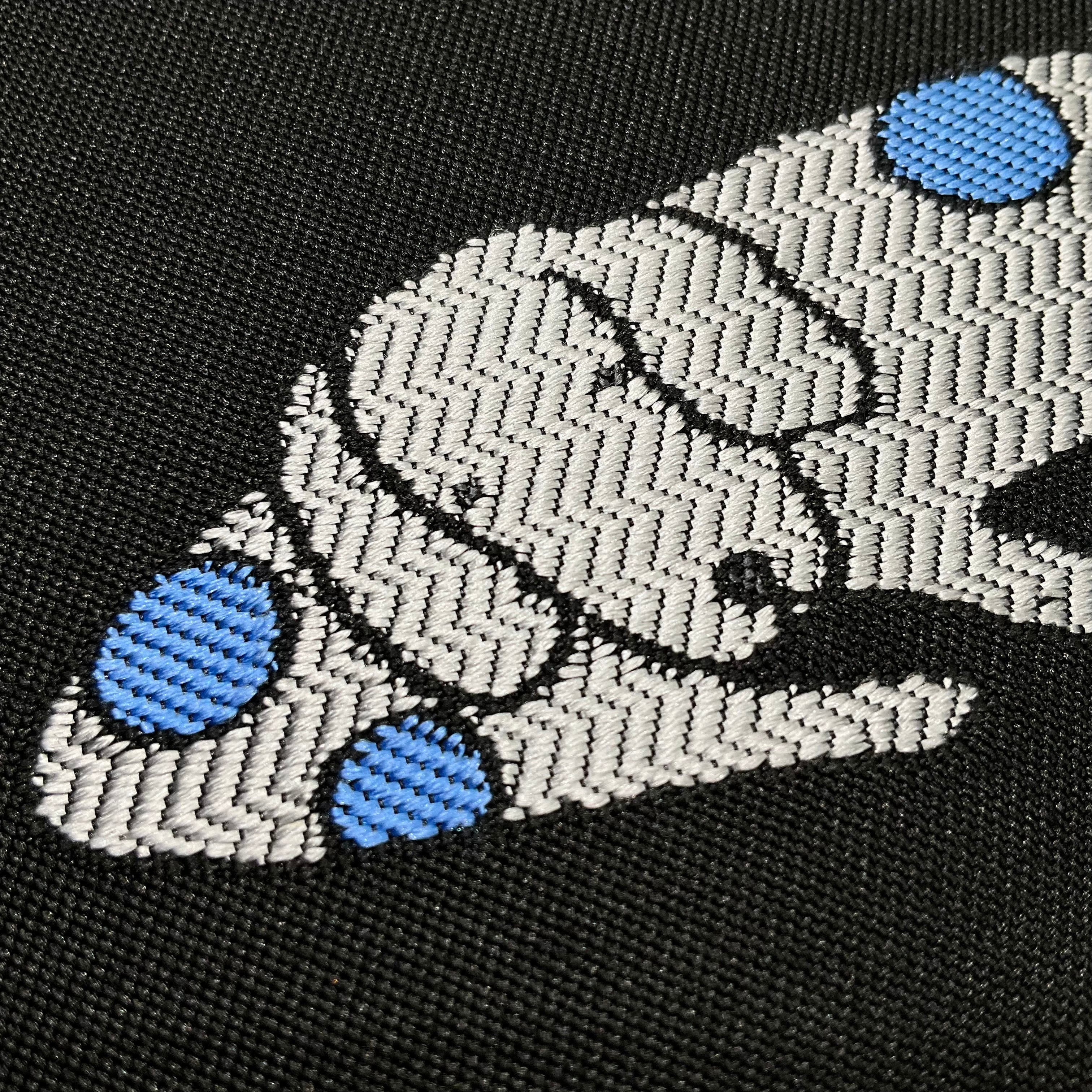 ブラックの地色にかわいらしく描かれたダックスフントはお太鼓には5匹も!