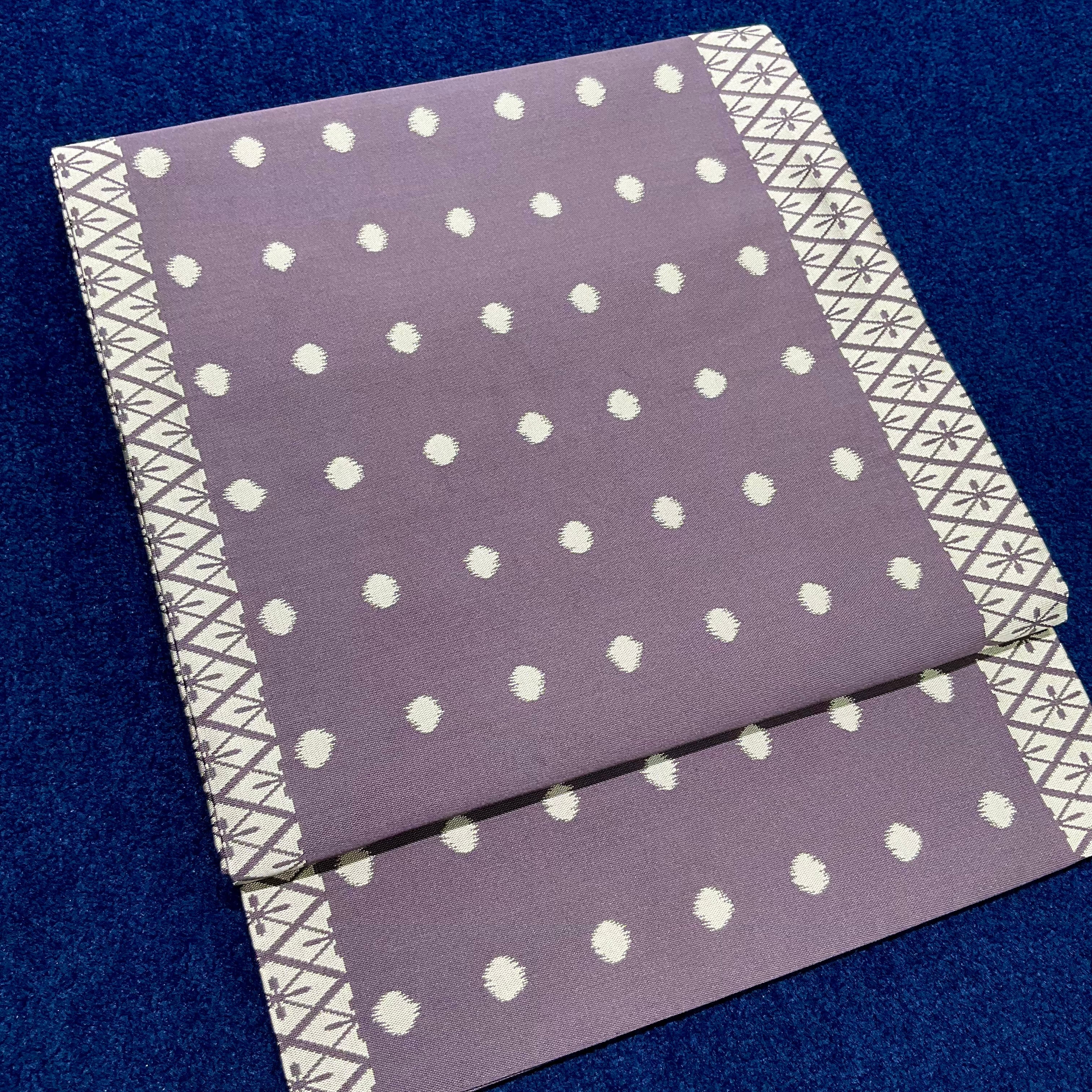 Dots & Grace*ドット 水玉 絣 菊菱 ダブグレイ 鳩羽色 紫青 名古屋帯 B404