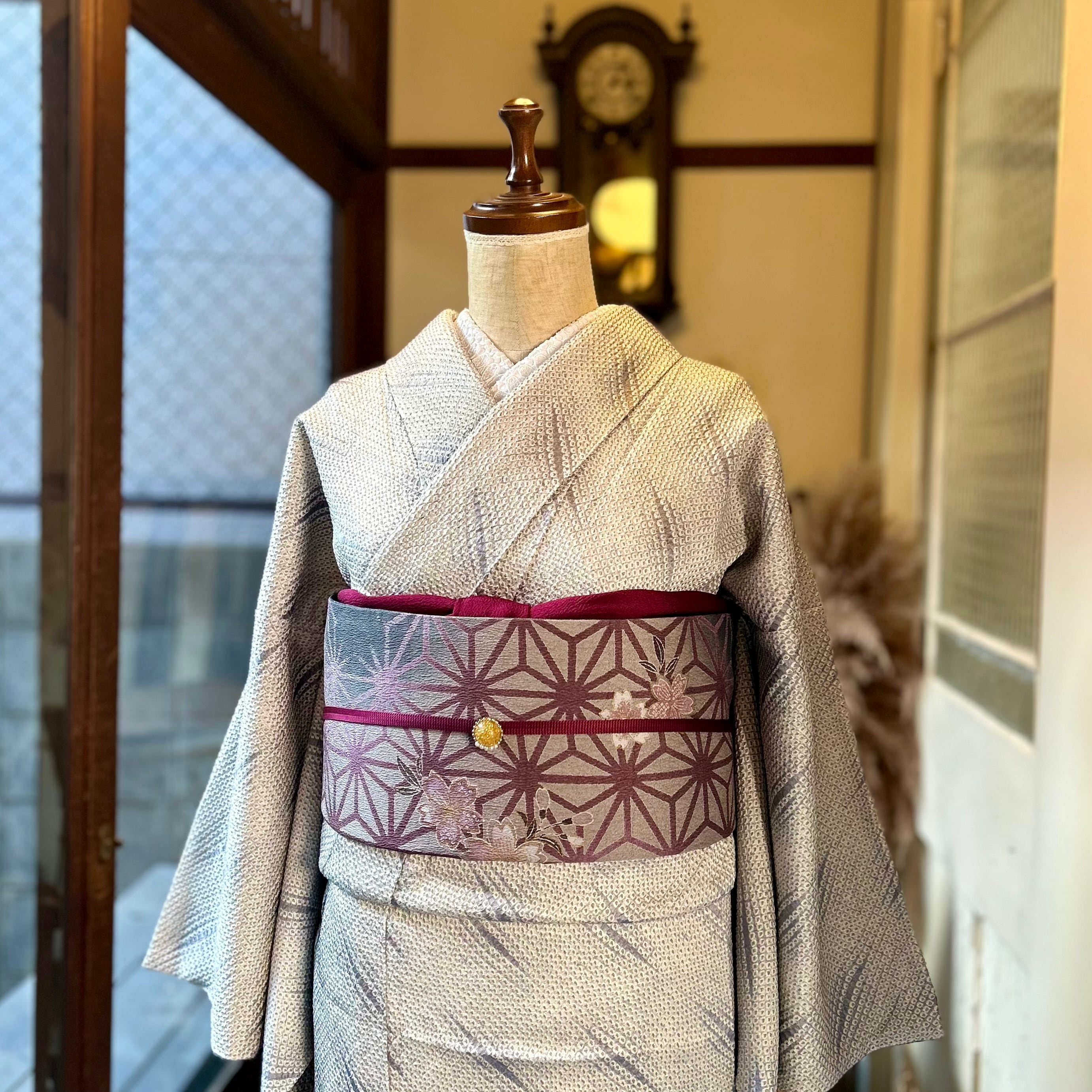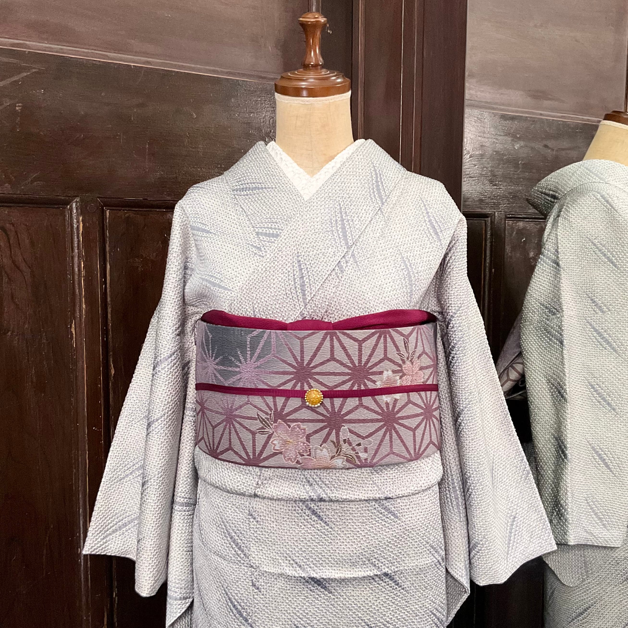 ○合わせた着物、オリジナル帯揚げプラム、オリジナル三分紐ミント×プラムはweb shop掲載品です♪