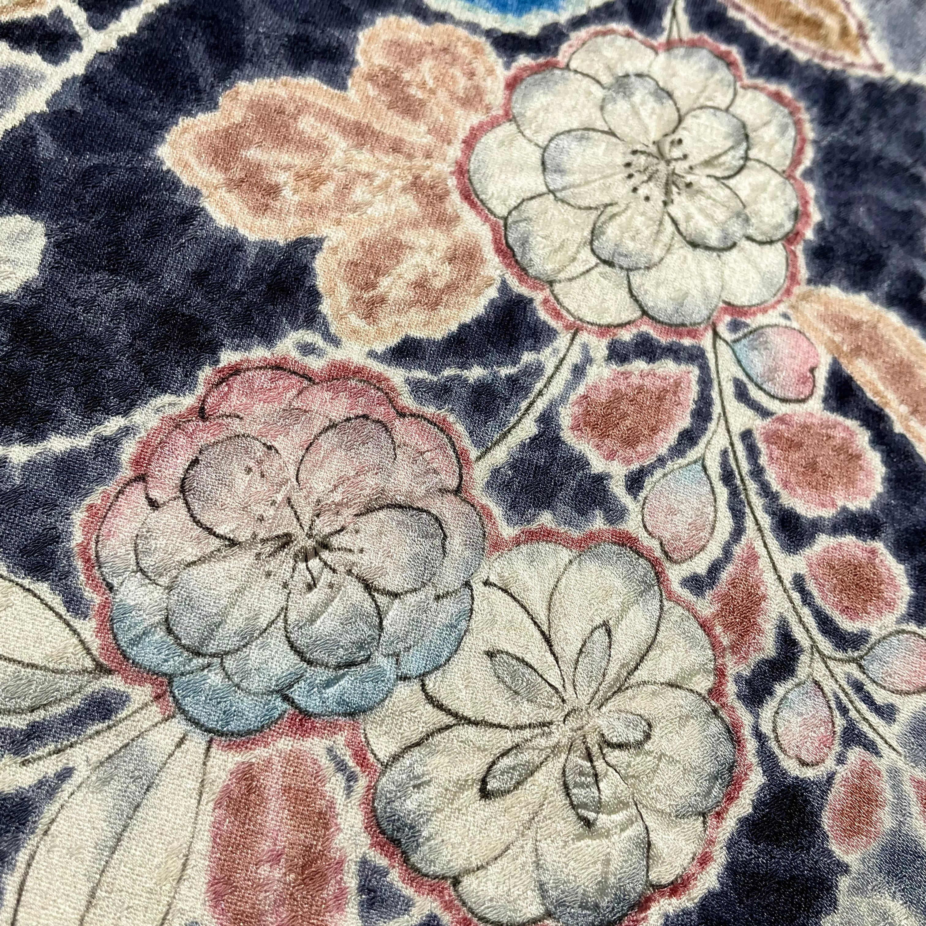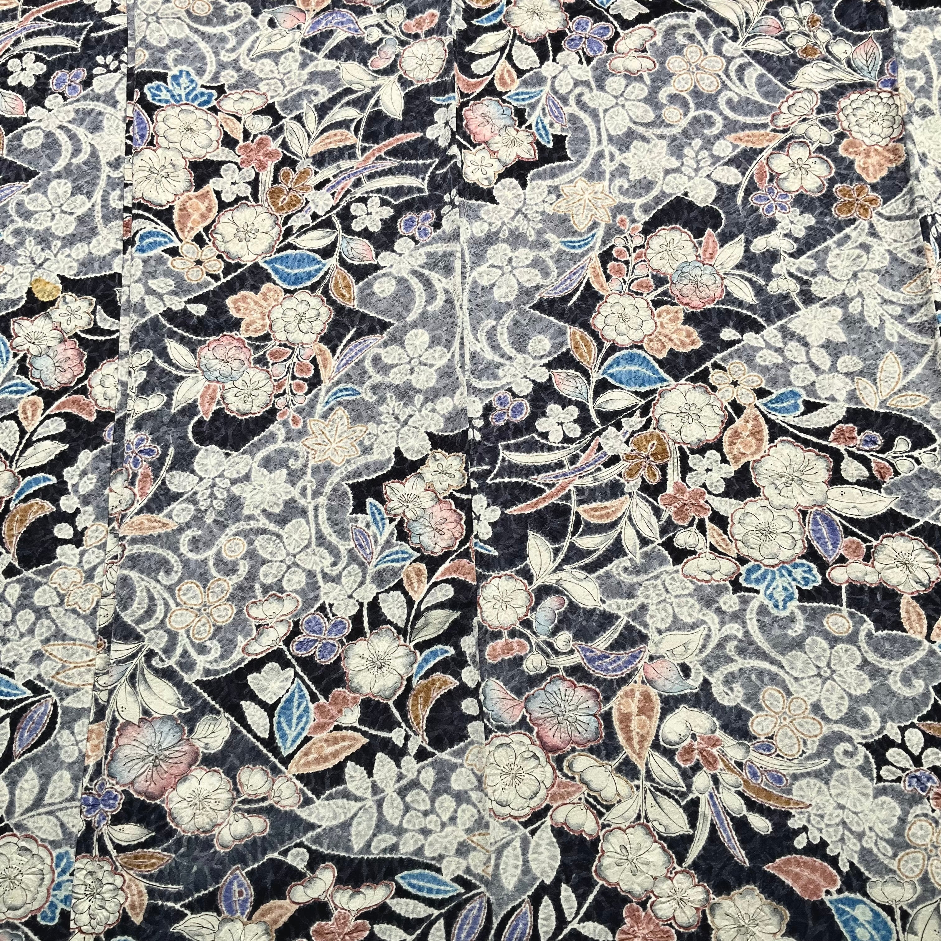 long*宵花、ひそやかに*辻が花テイスト ネイビー 紺 パープル 藤 桜 更紗模様 小紋着物 B413