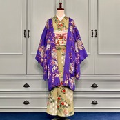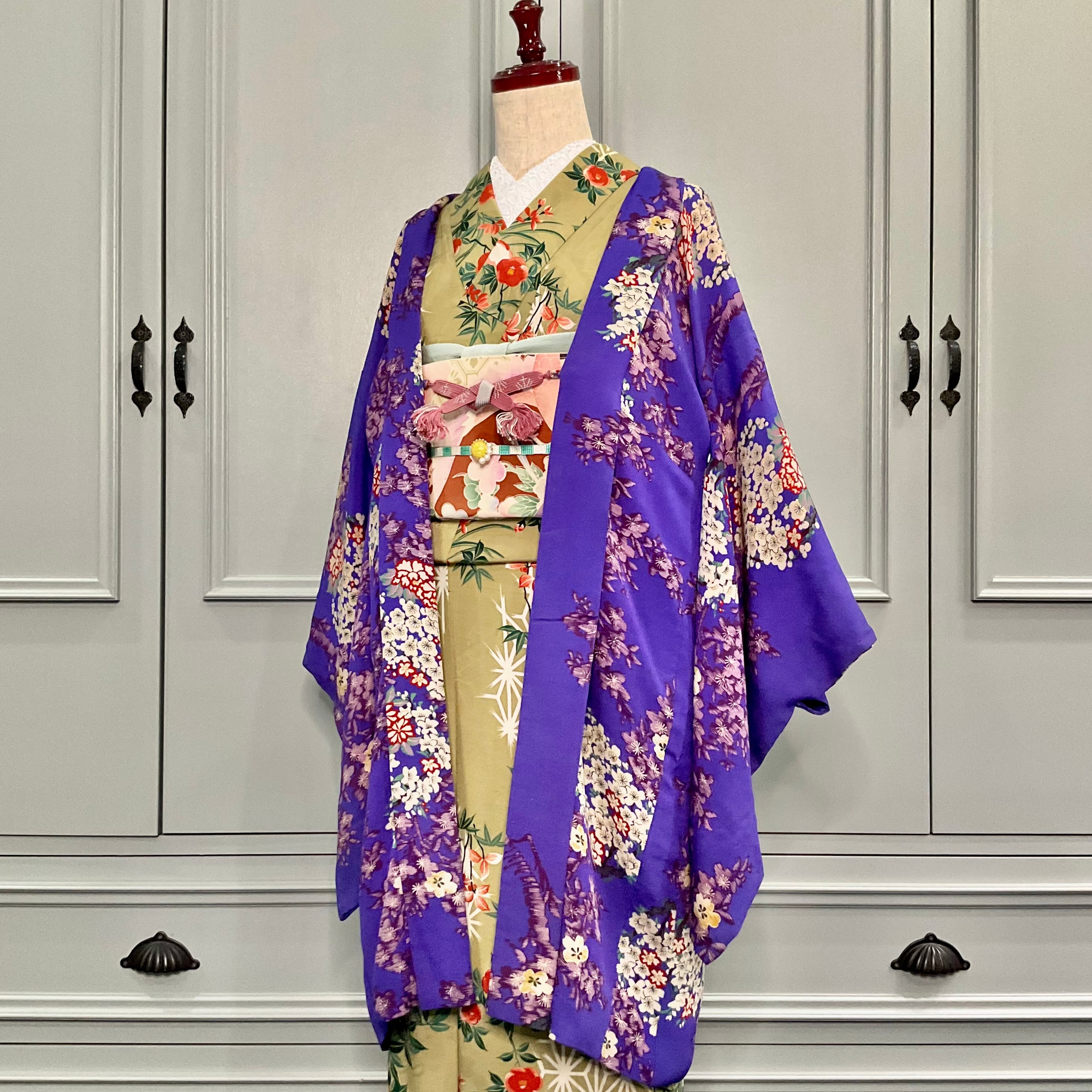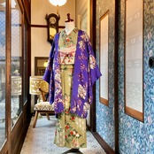 紫地に小花模様が描かれたアンティーク長羽織です