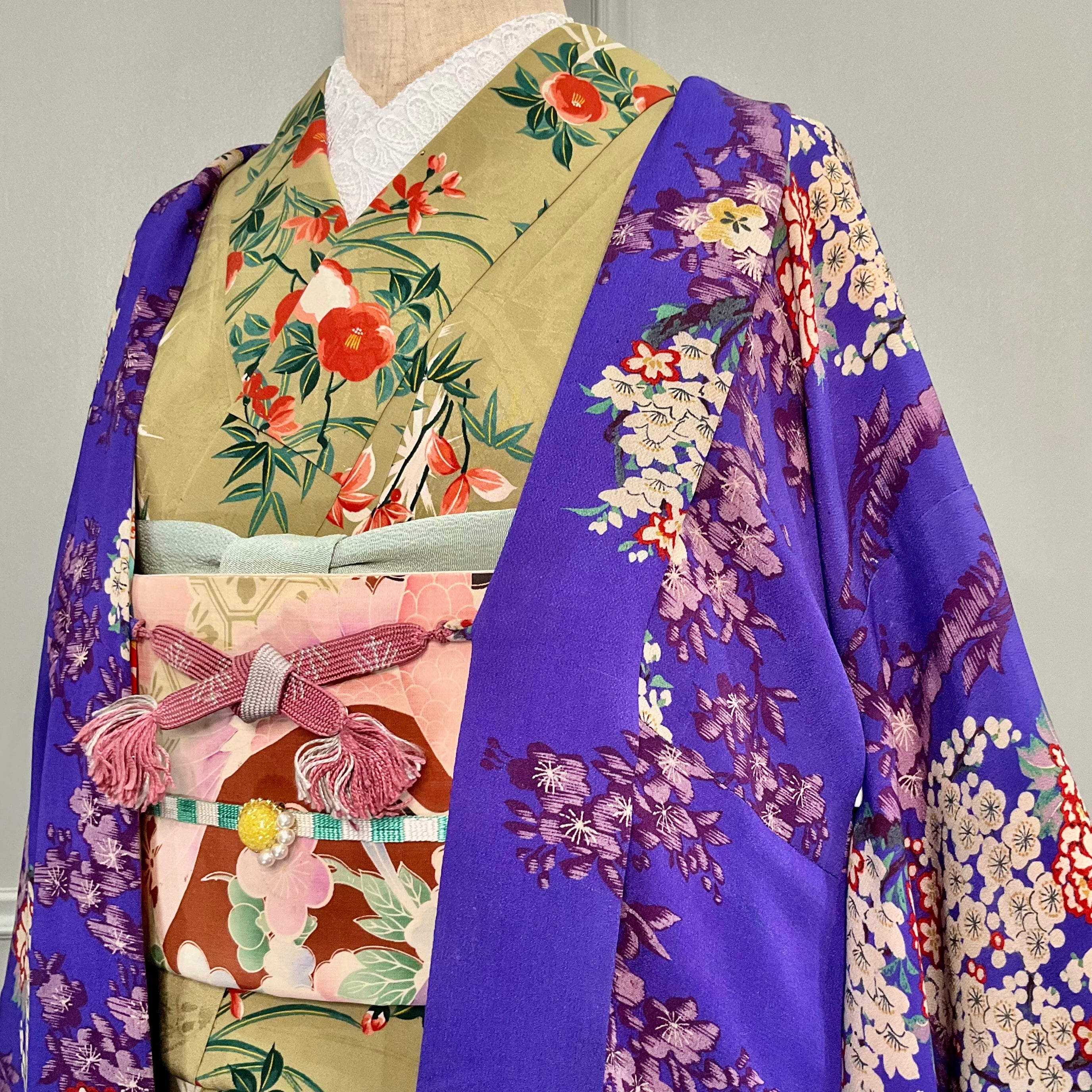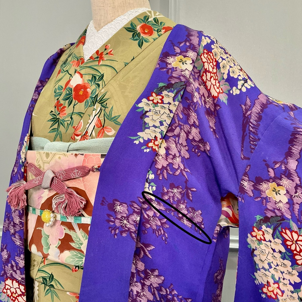 華やかだけれどもしっとりとした落ち着きのある柄行で、古典系のデザインの着物でも、洋風なデザインの着物でも合わせやすく、幅広くコーディネートを楽しめそうですね♩