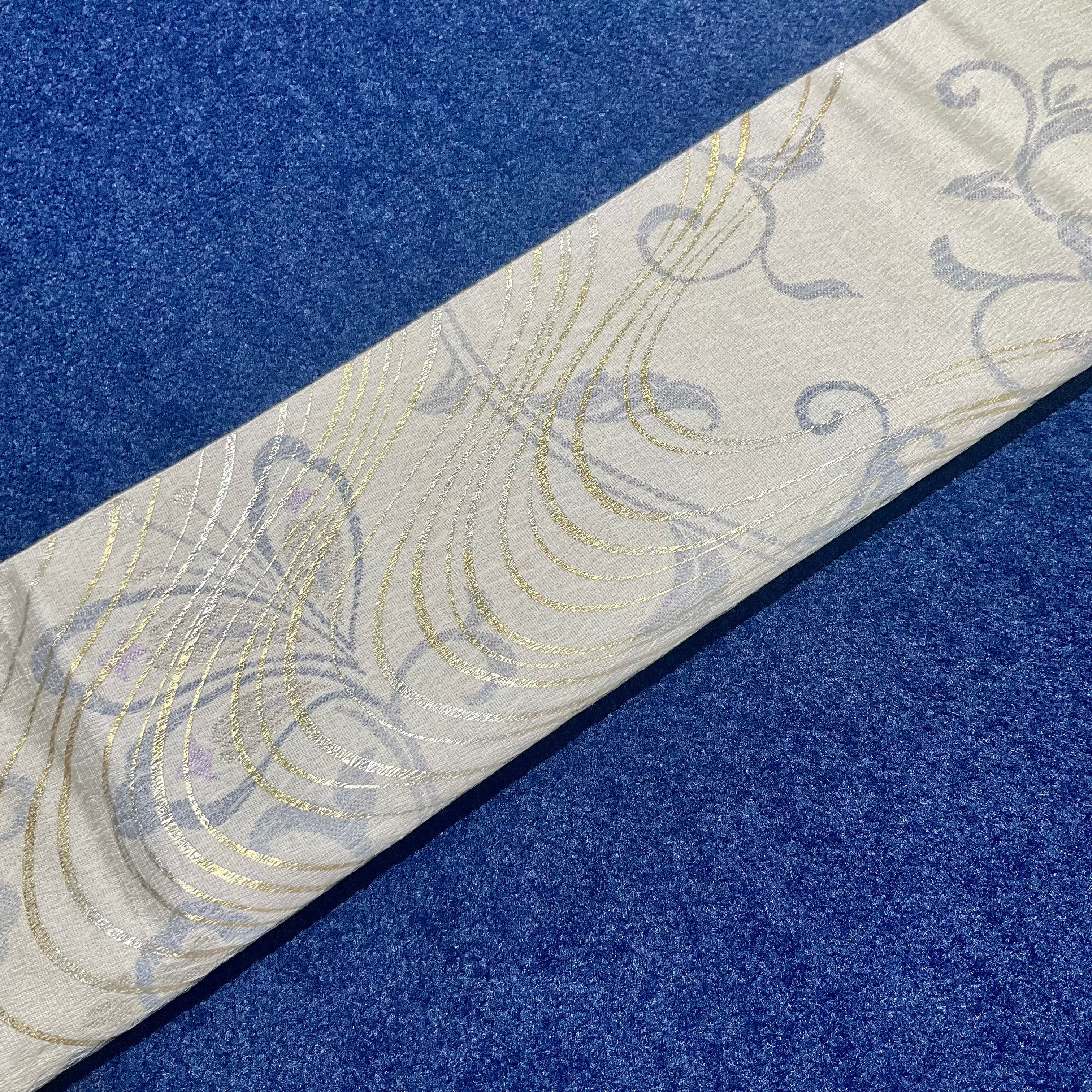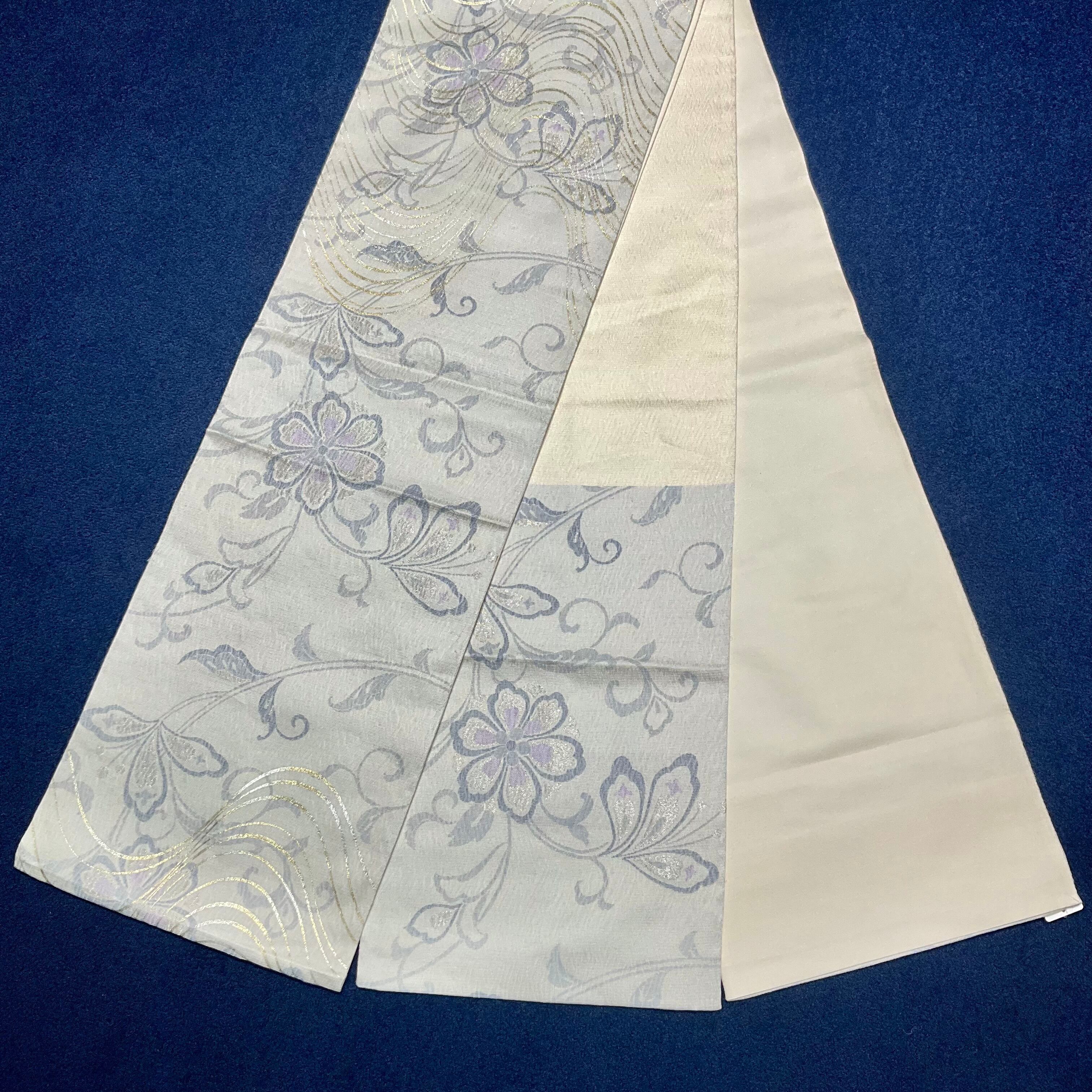 enhance the beauty*花 クリーム色 グレー 金 銀 洒落袋帯 B437