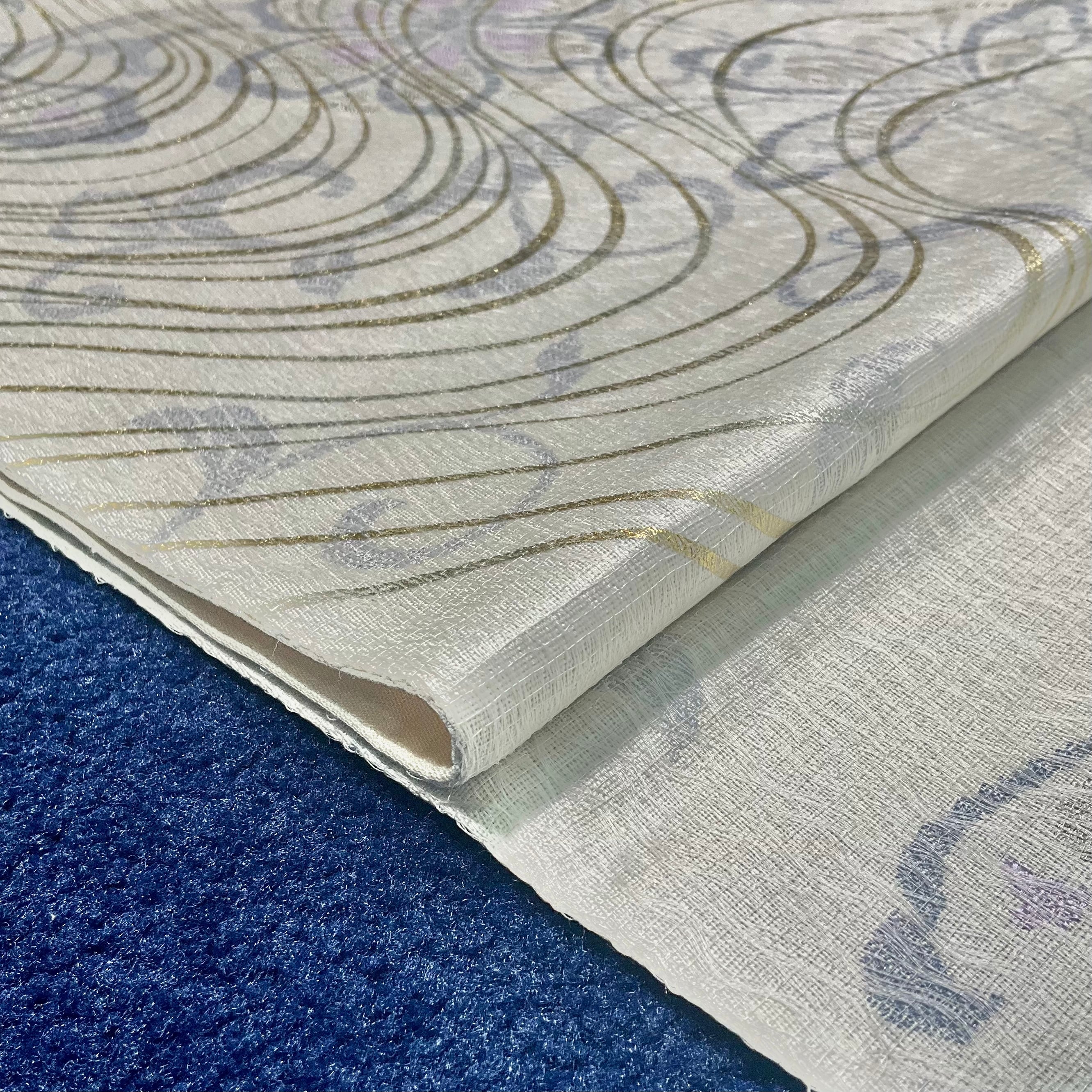全体をやわらかな色彩でまとめた中にきらめく金銀の模様が、やさしい大人の雰囲気を醸し出します。