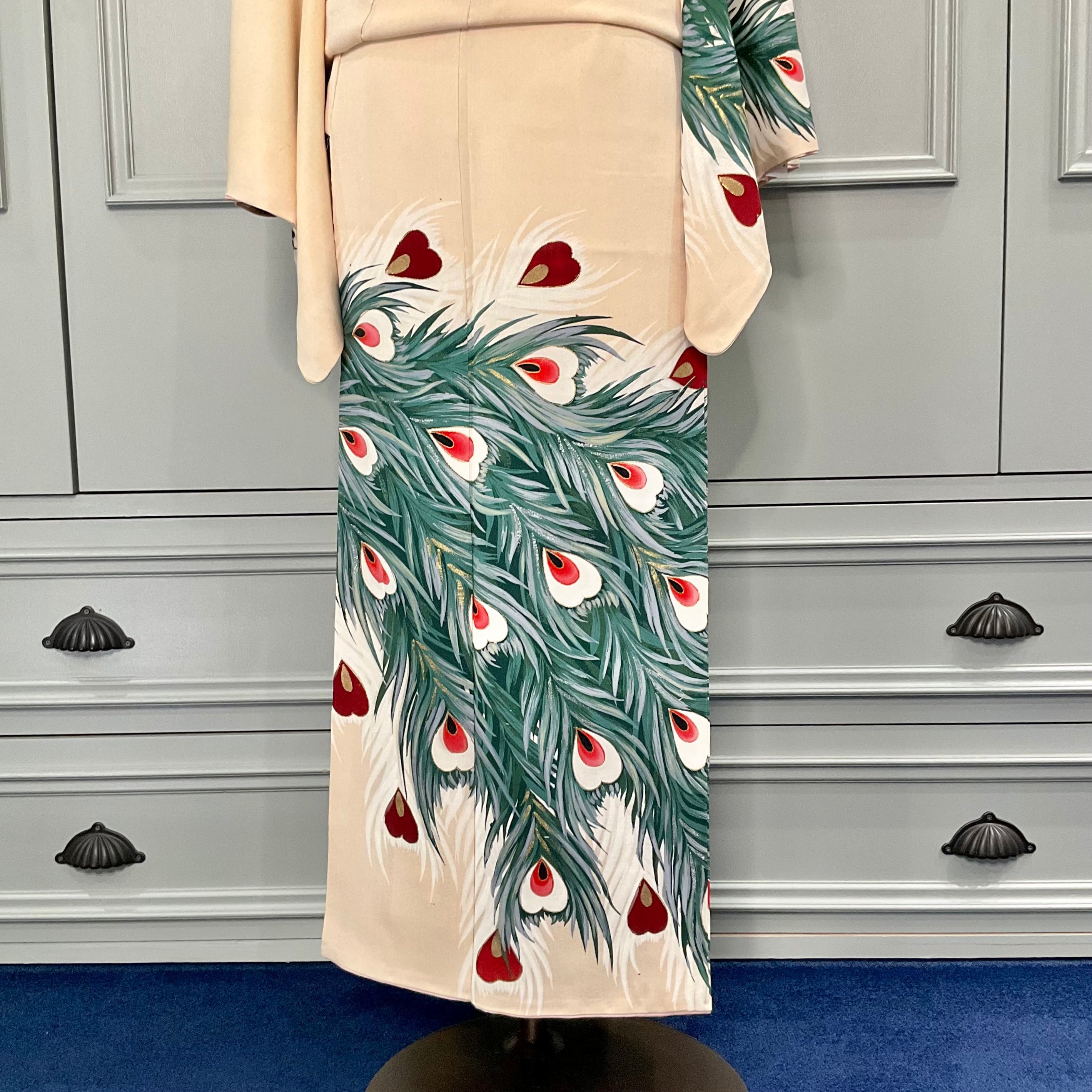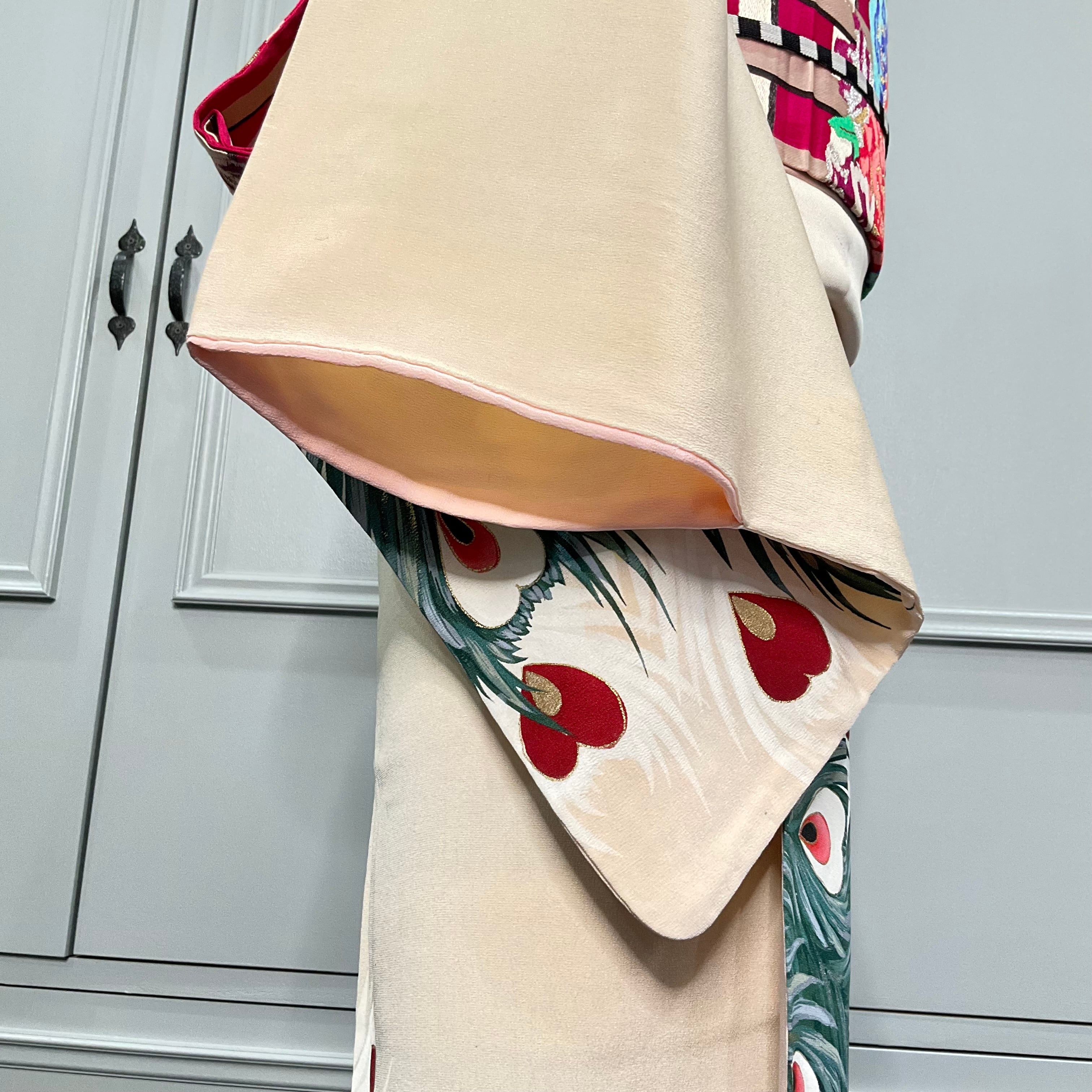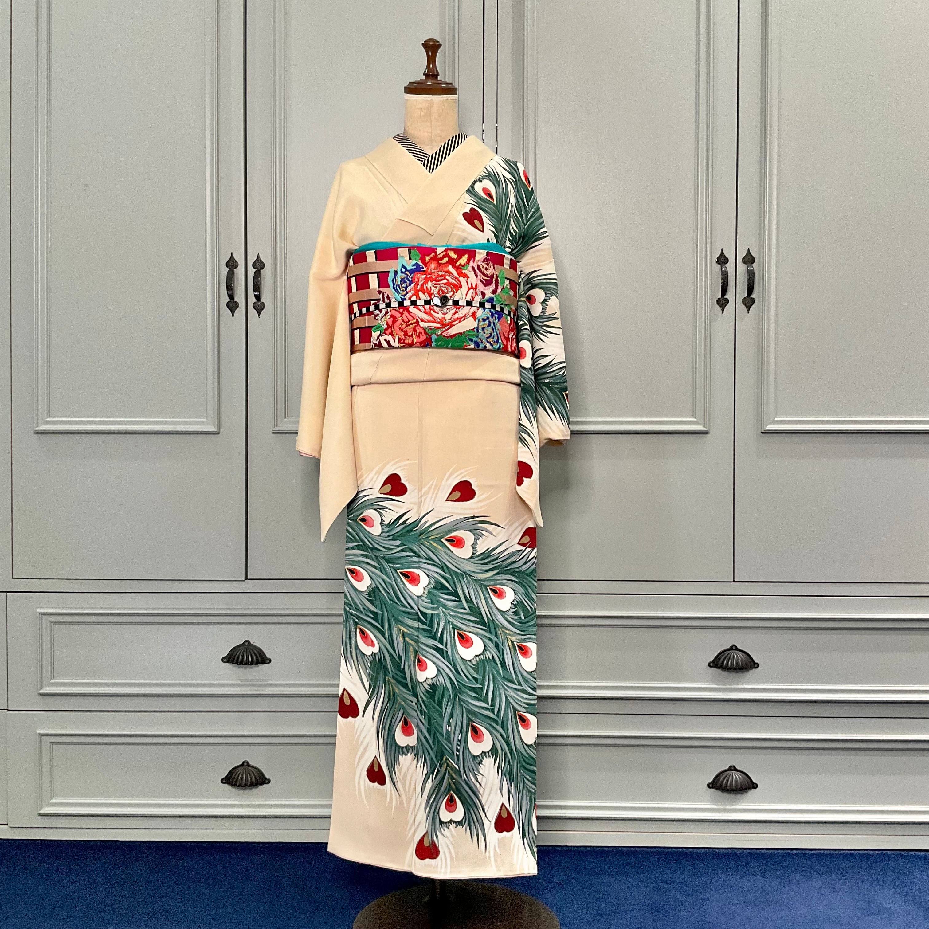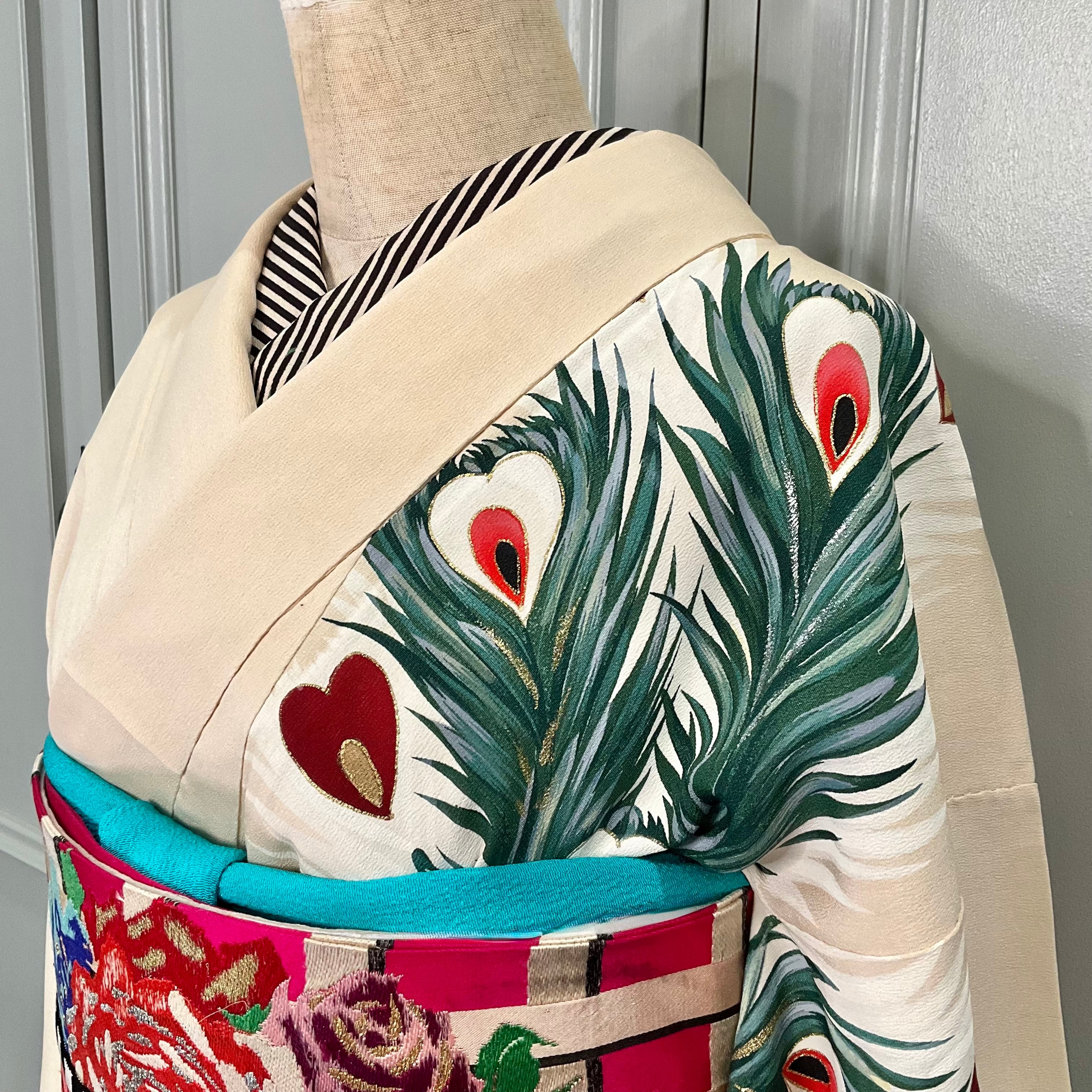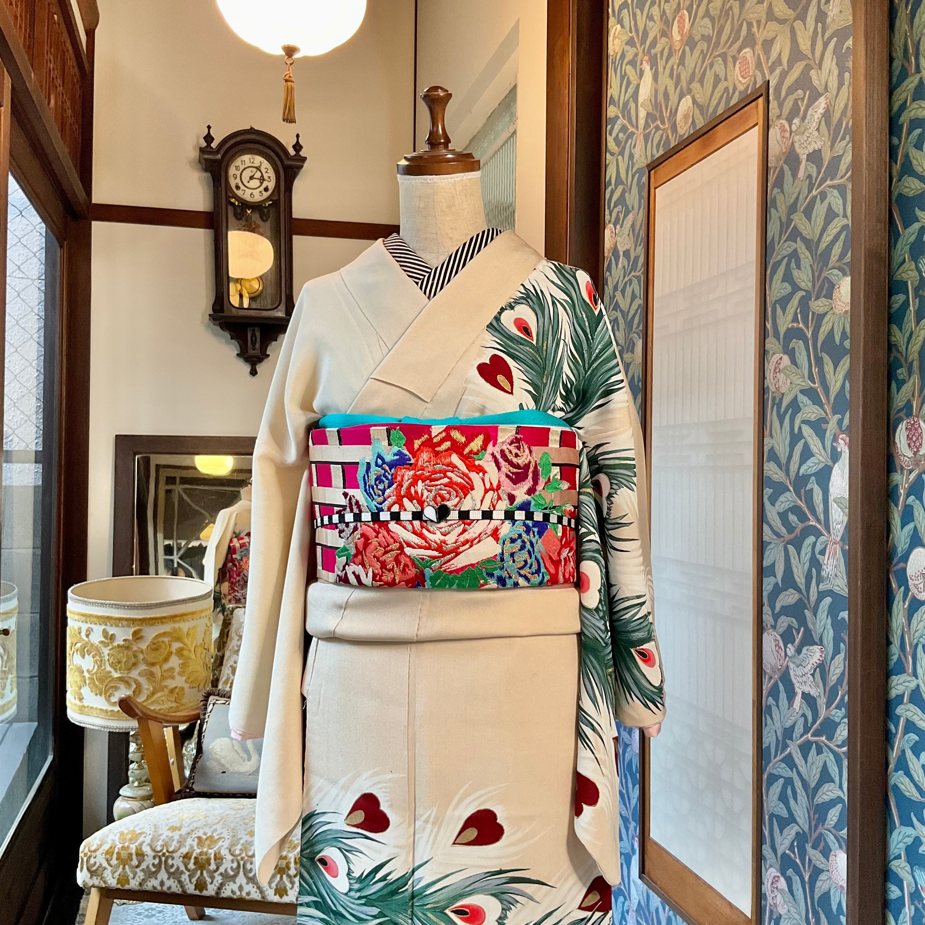 peacock eye*孔雀 羽 ピーコックアイ ハート アイボリー セミアンティーク訪問着 着物 B443
