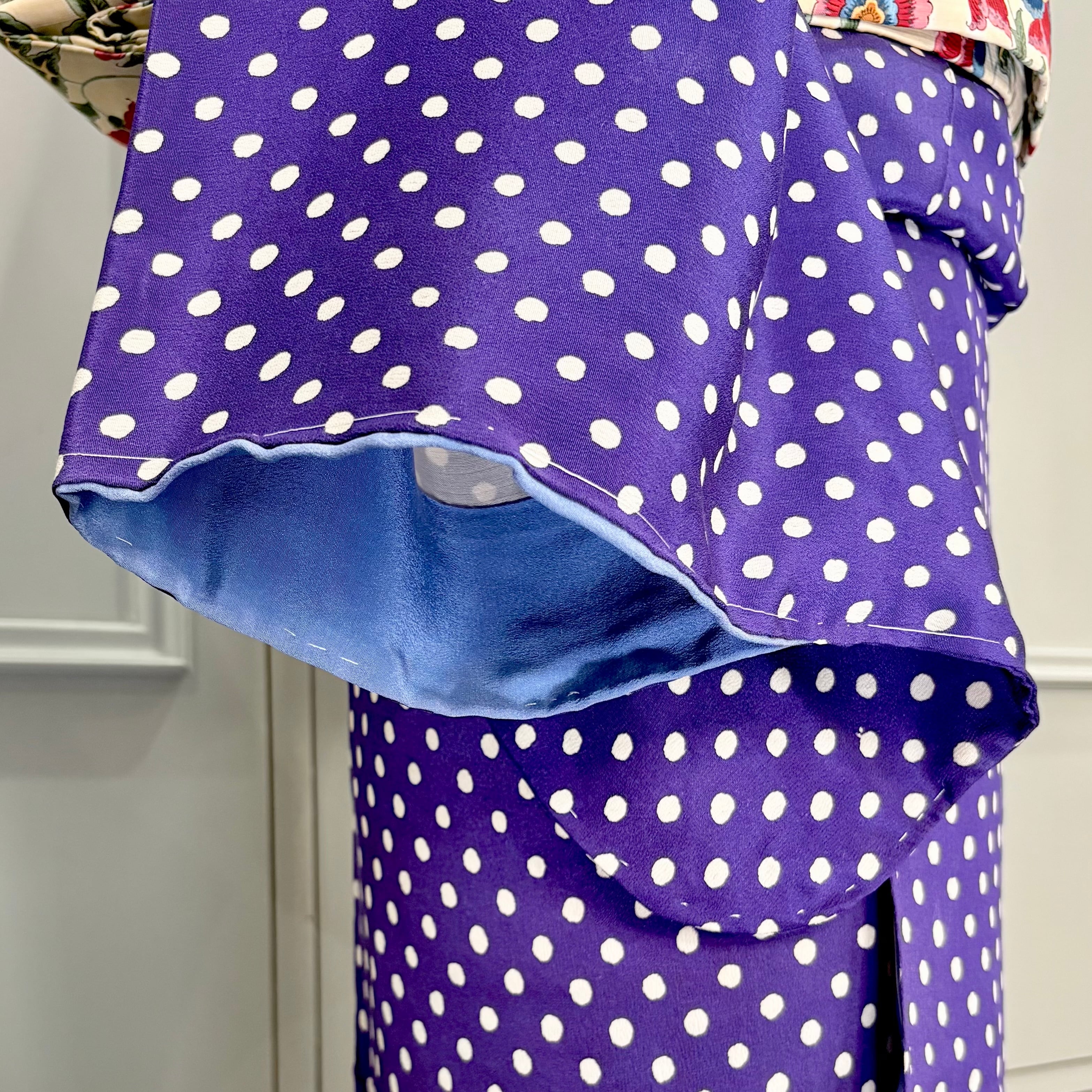 ブルー地に白のドットがデザインされた袷のアンティーク小紋着物です