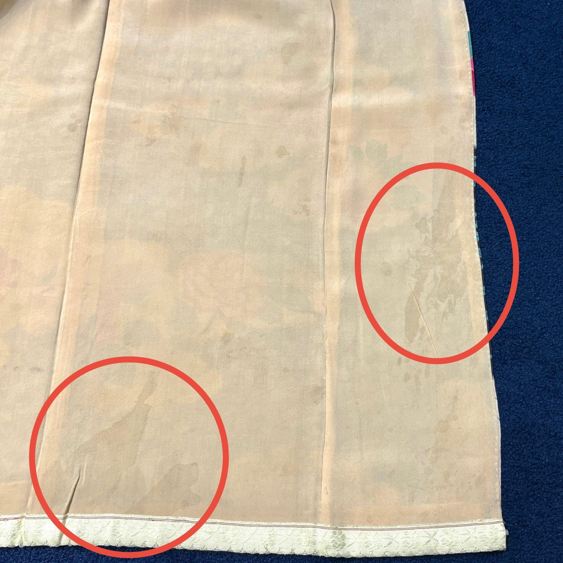 裏地の裾や背中にアク、変色。