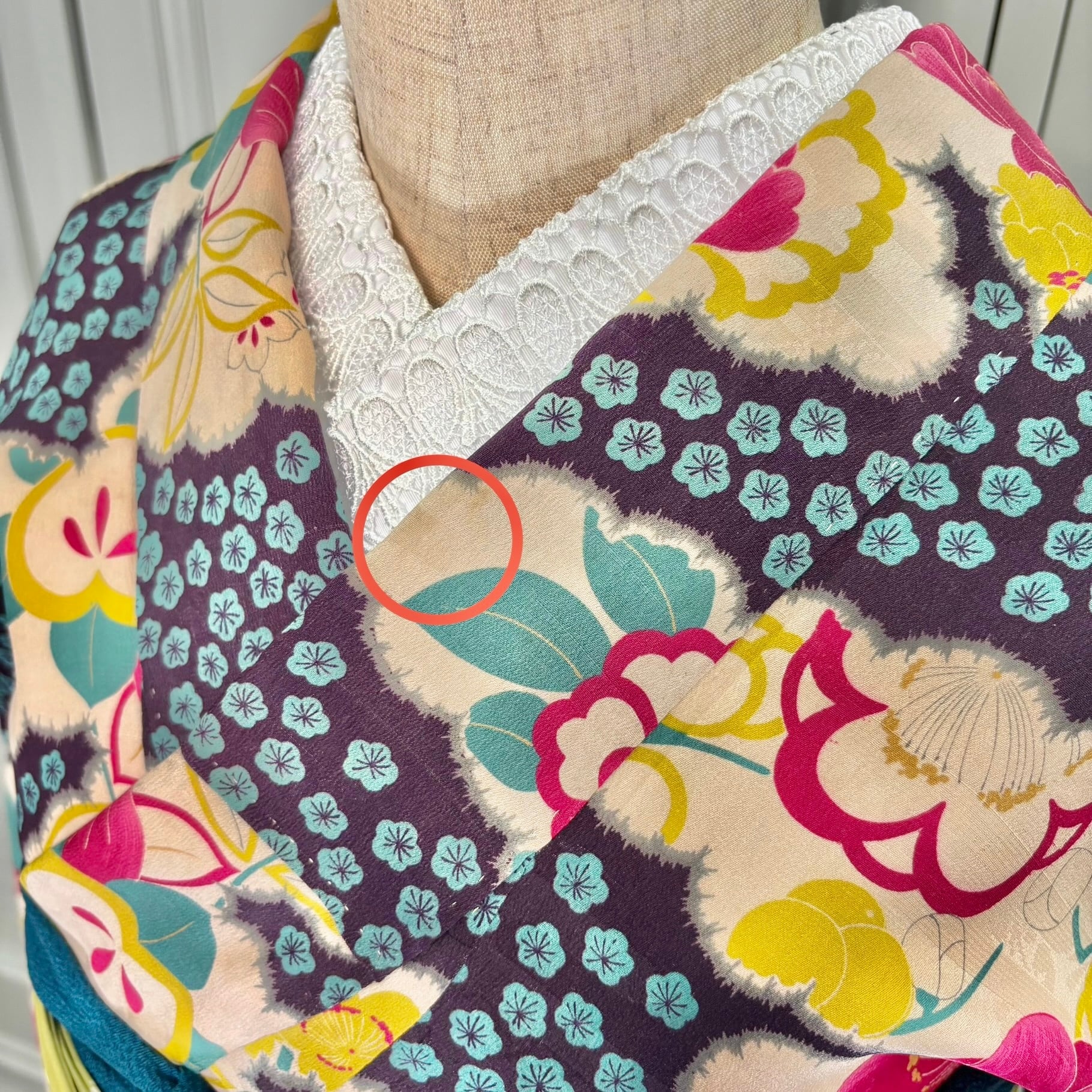 上前に小シミ。衿にクスミ。