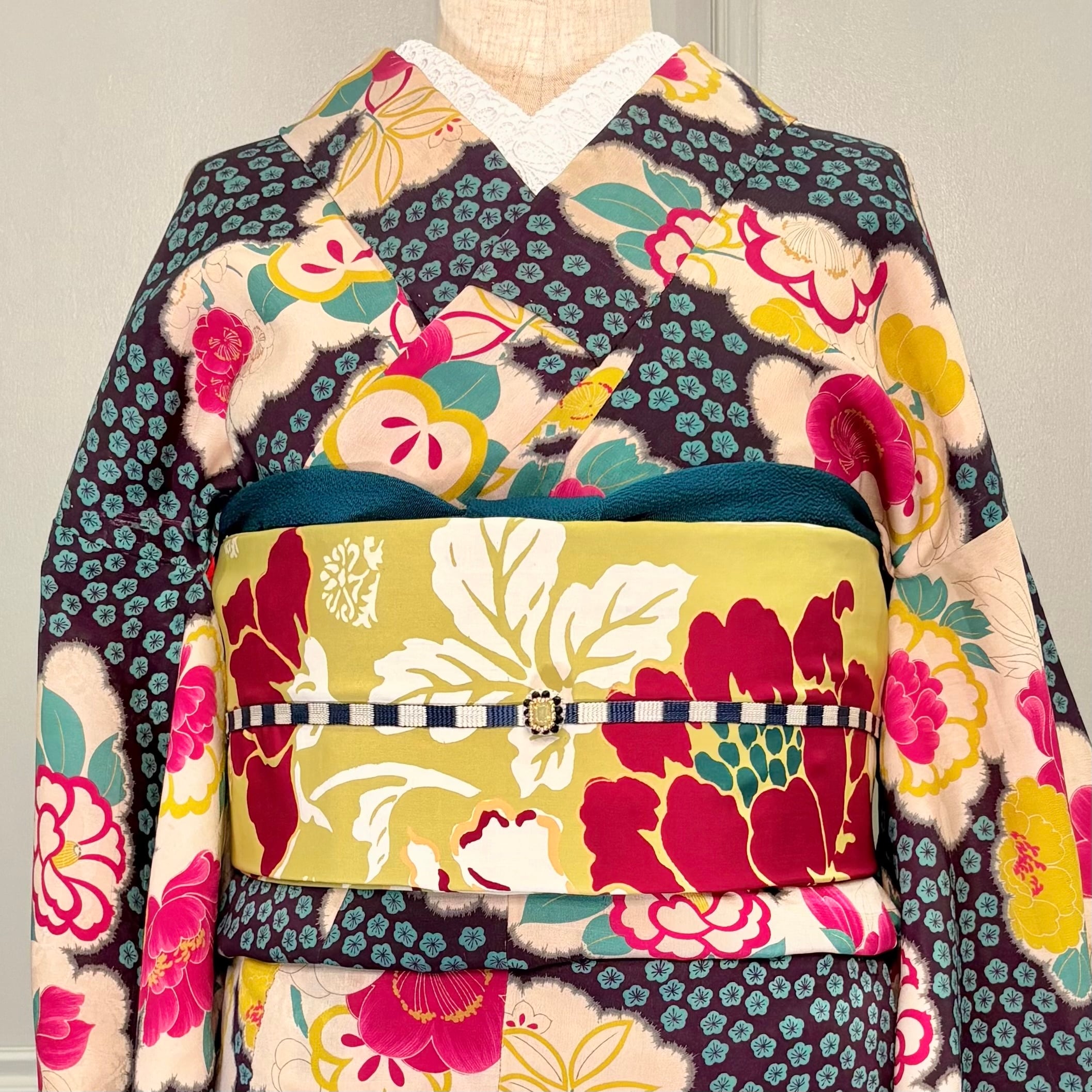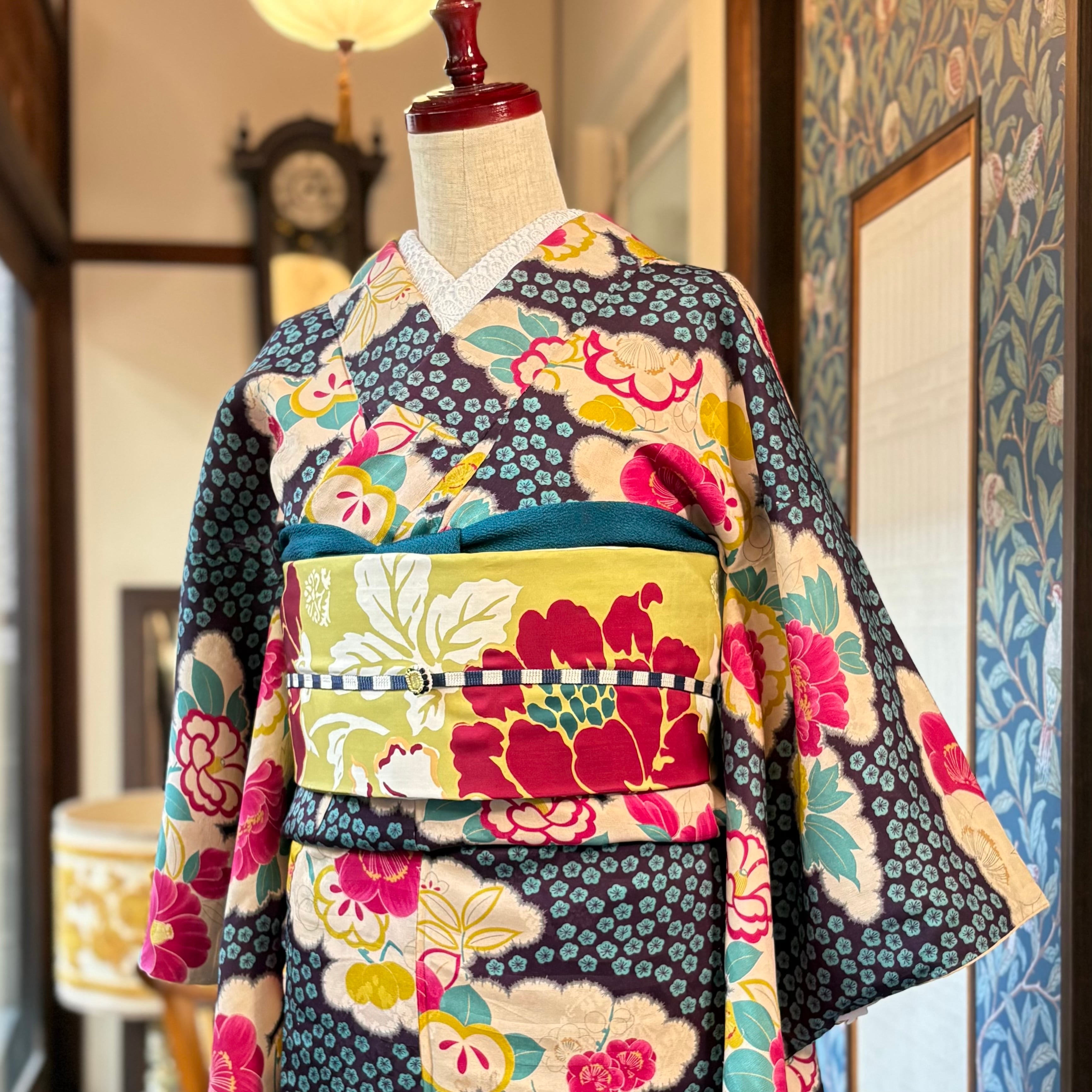 アンティーク着物だけでなく、現代物のシックな大島紬などにも合いそうですね◎