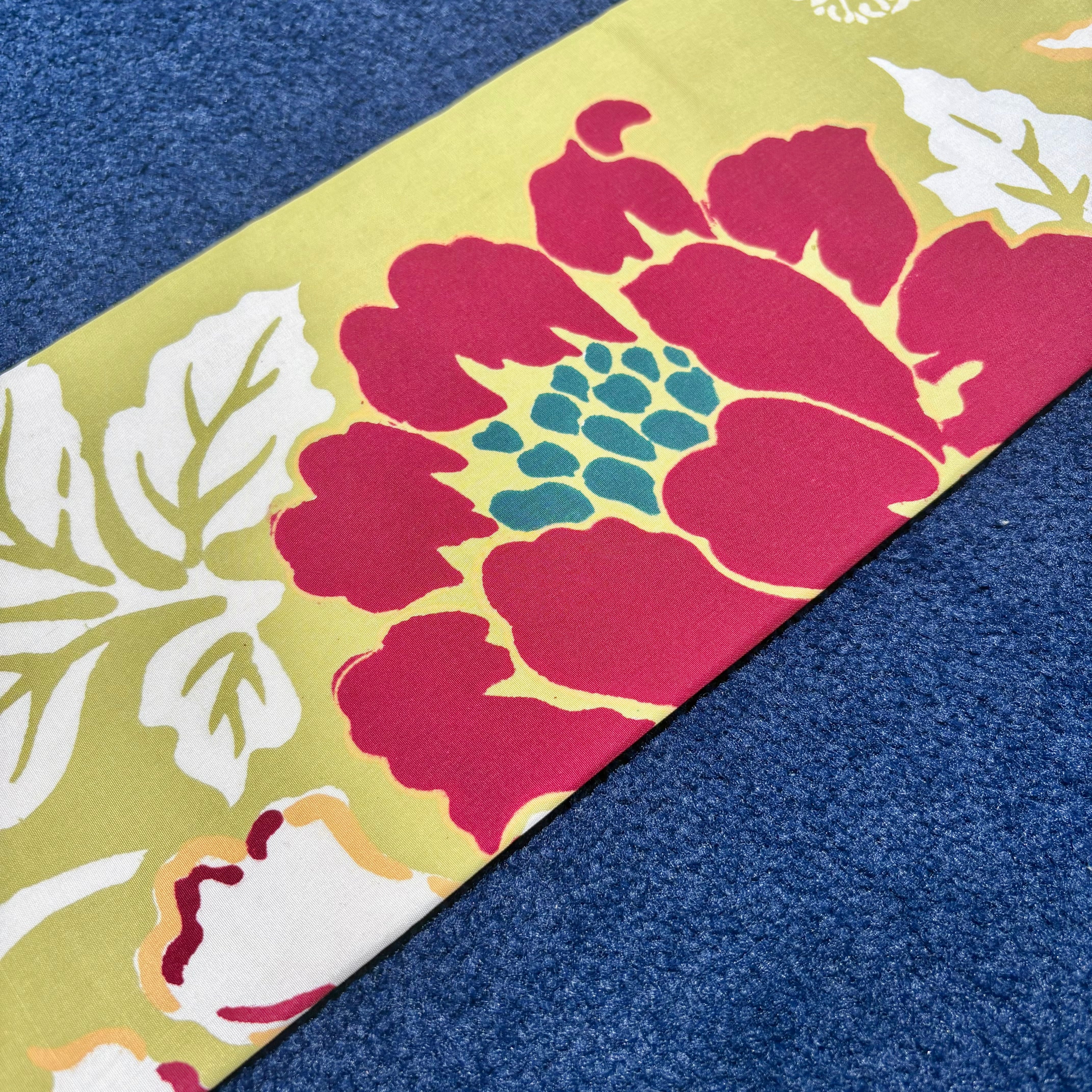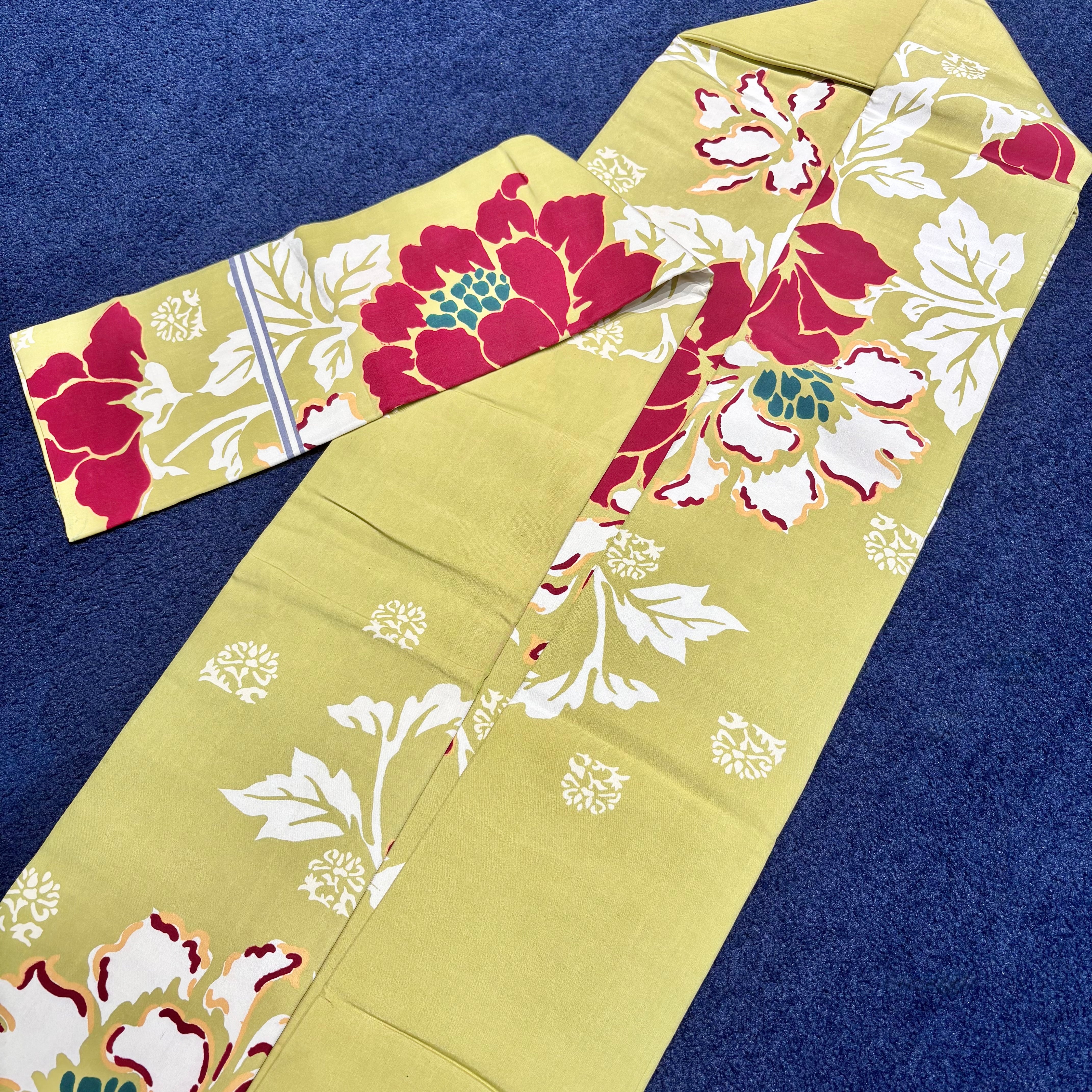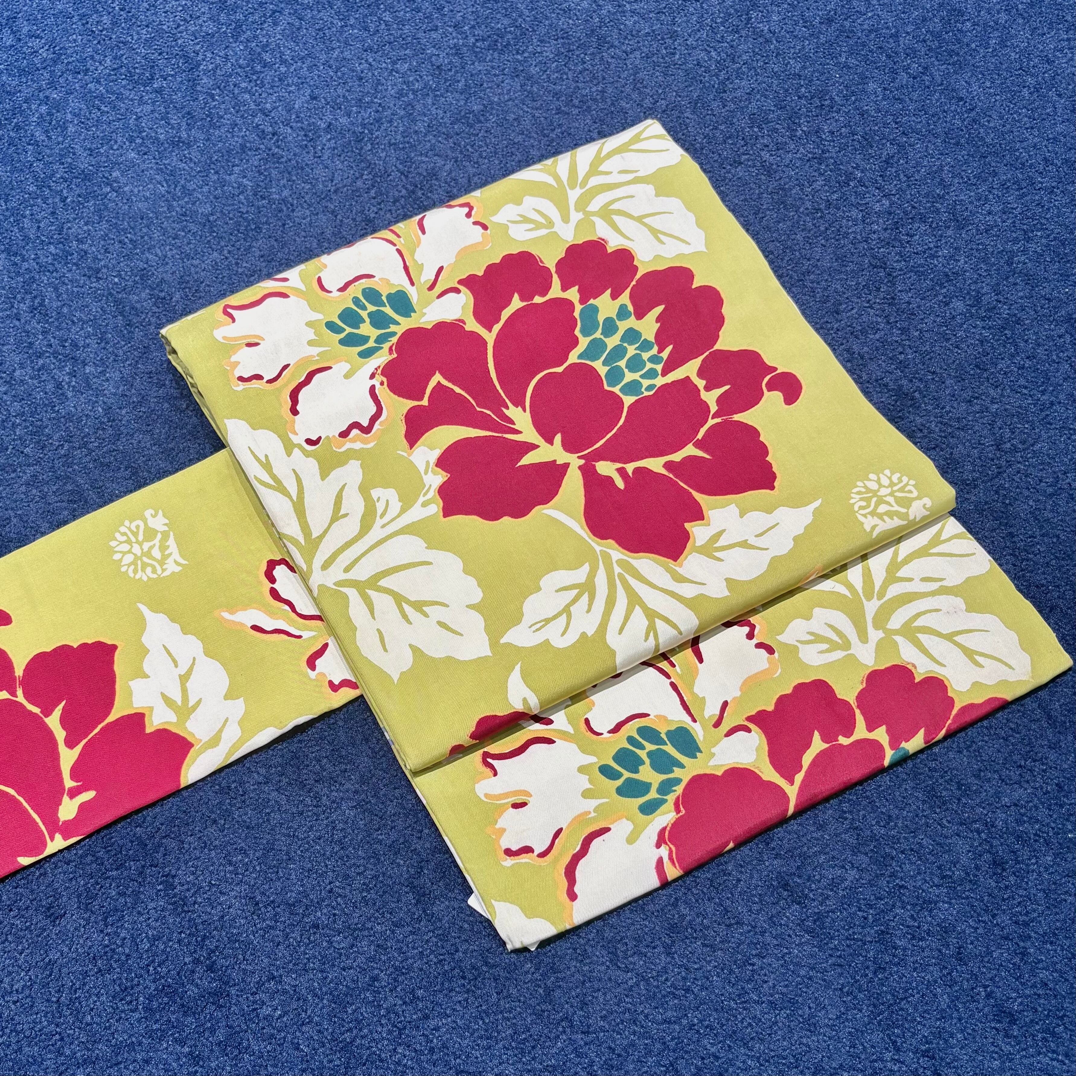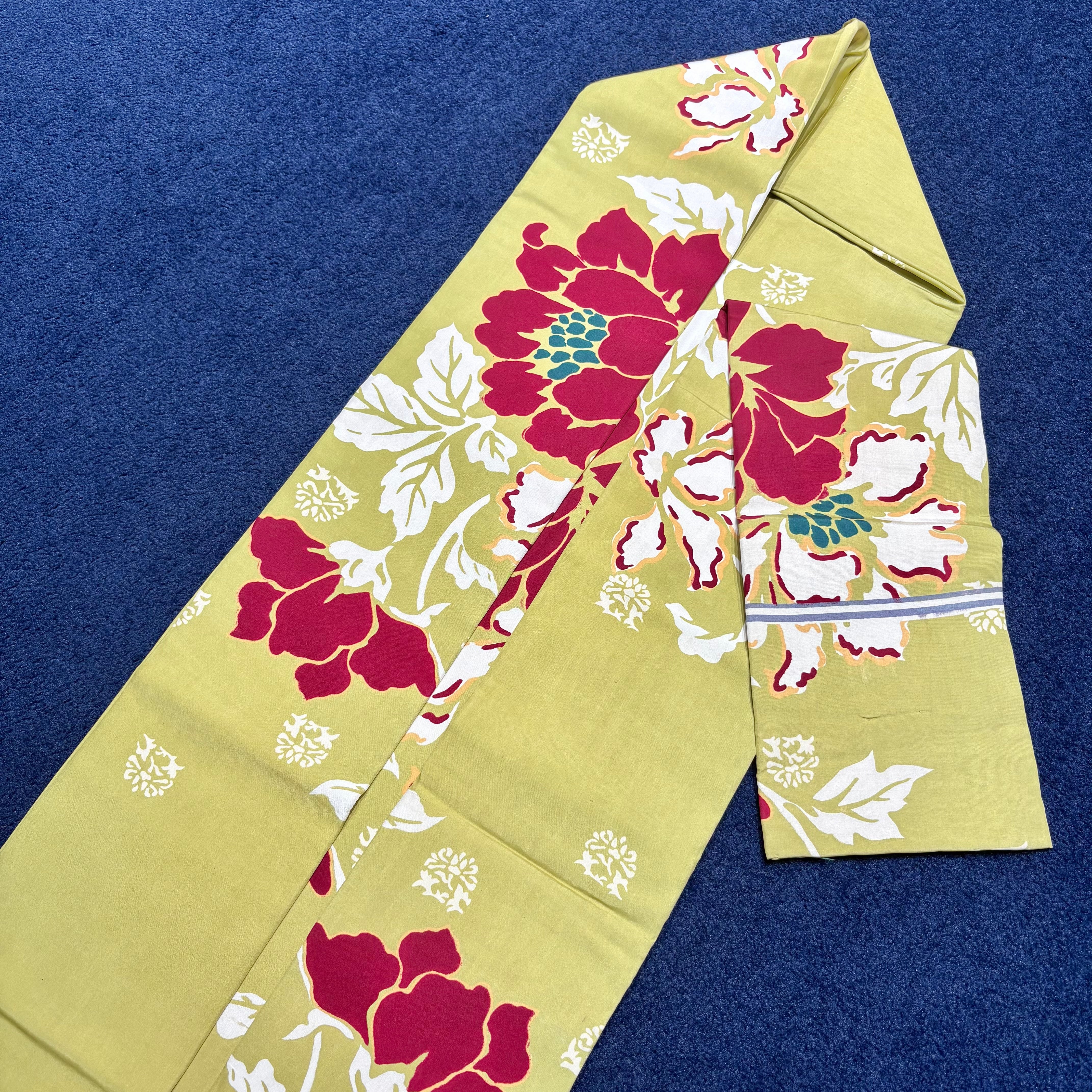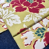 やわらかいイエロー系の地に紅白のお花が映えるデザイン*