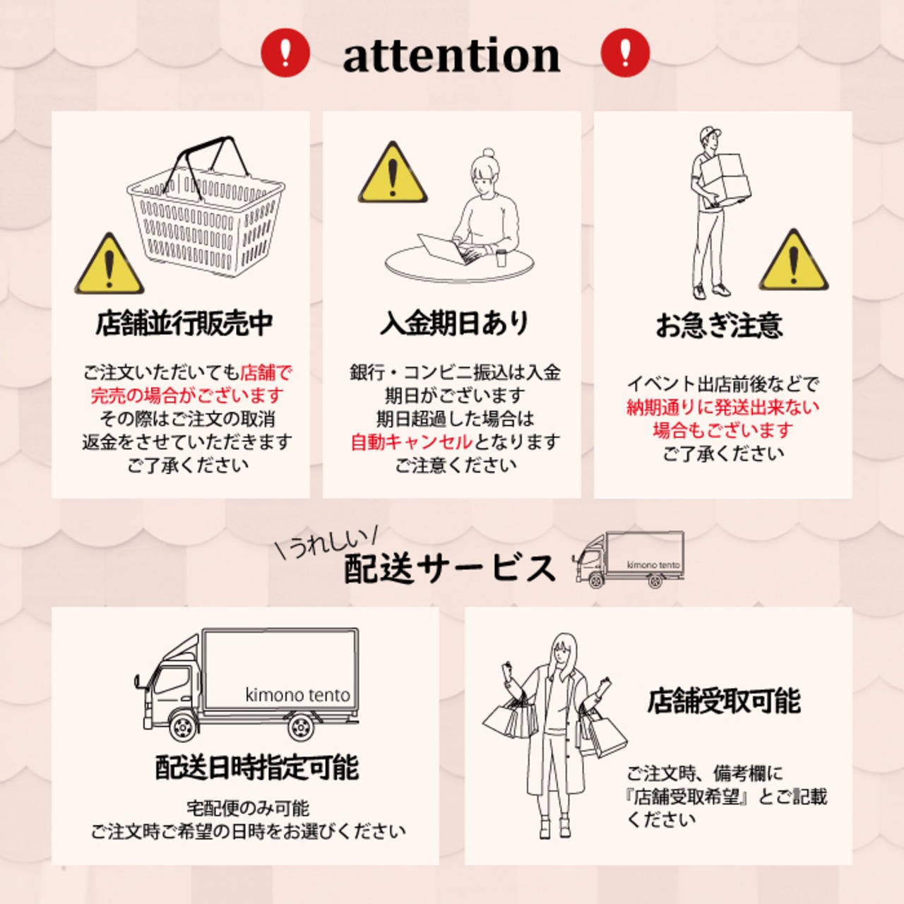 イベント出店前後など、すぐに発送できない場合もございますので、お急ぎで必要な方はご了承ください。