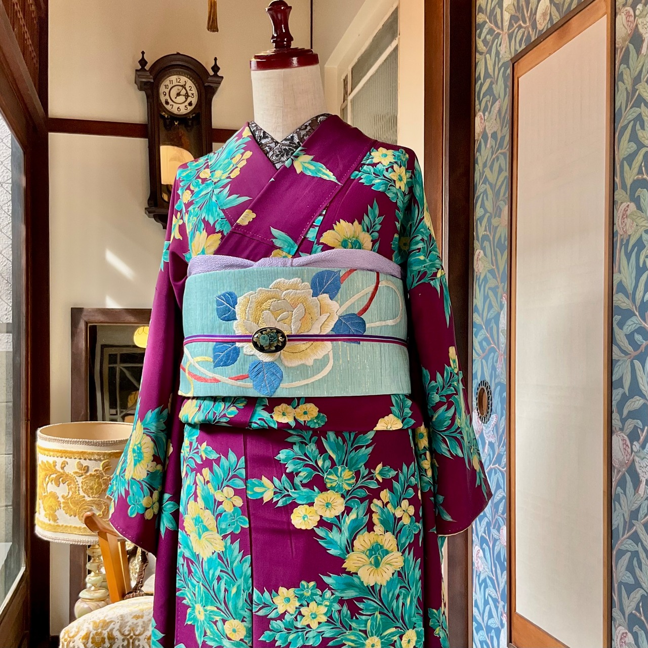 アンティークでは状態の良い水色の帯もレア✨️