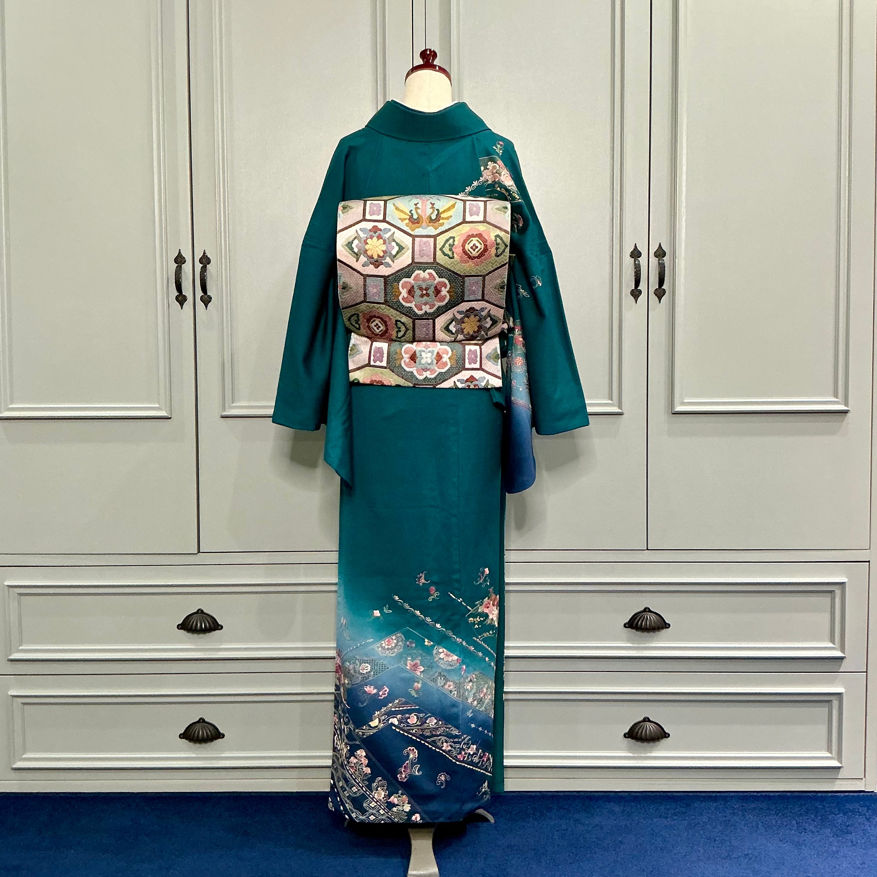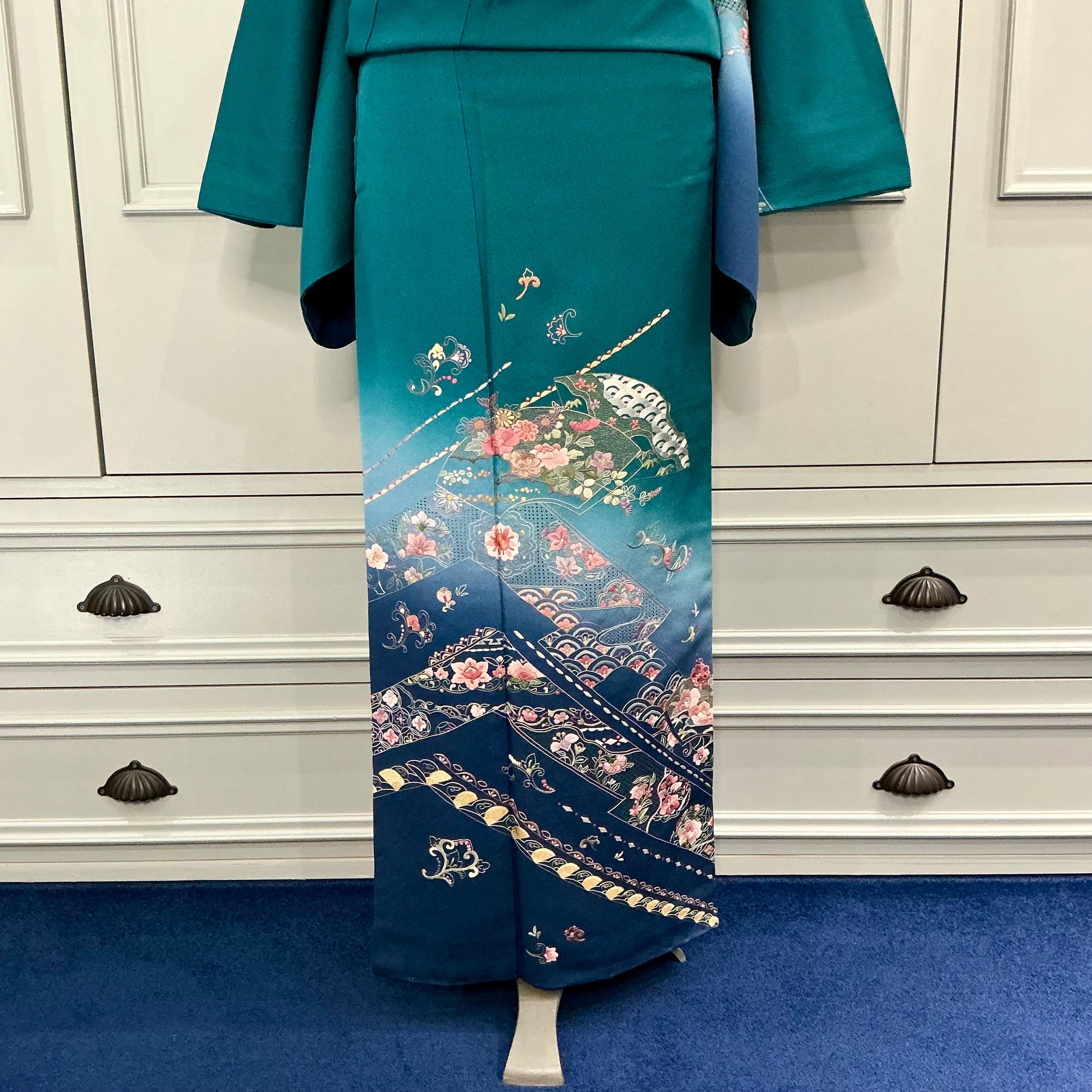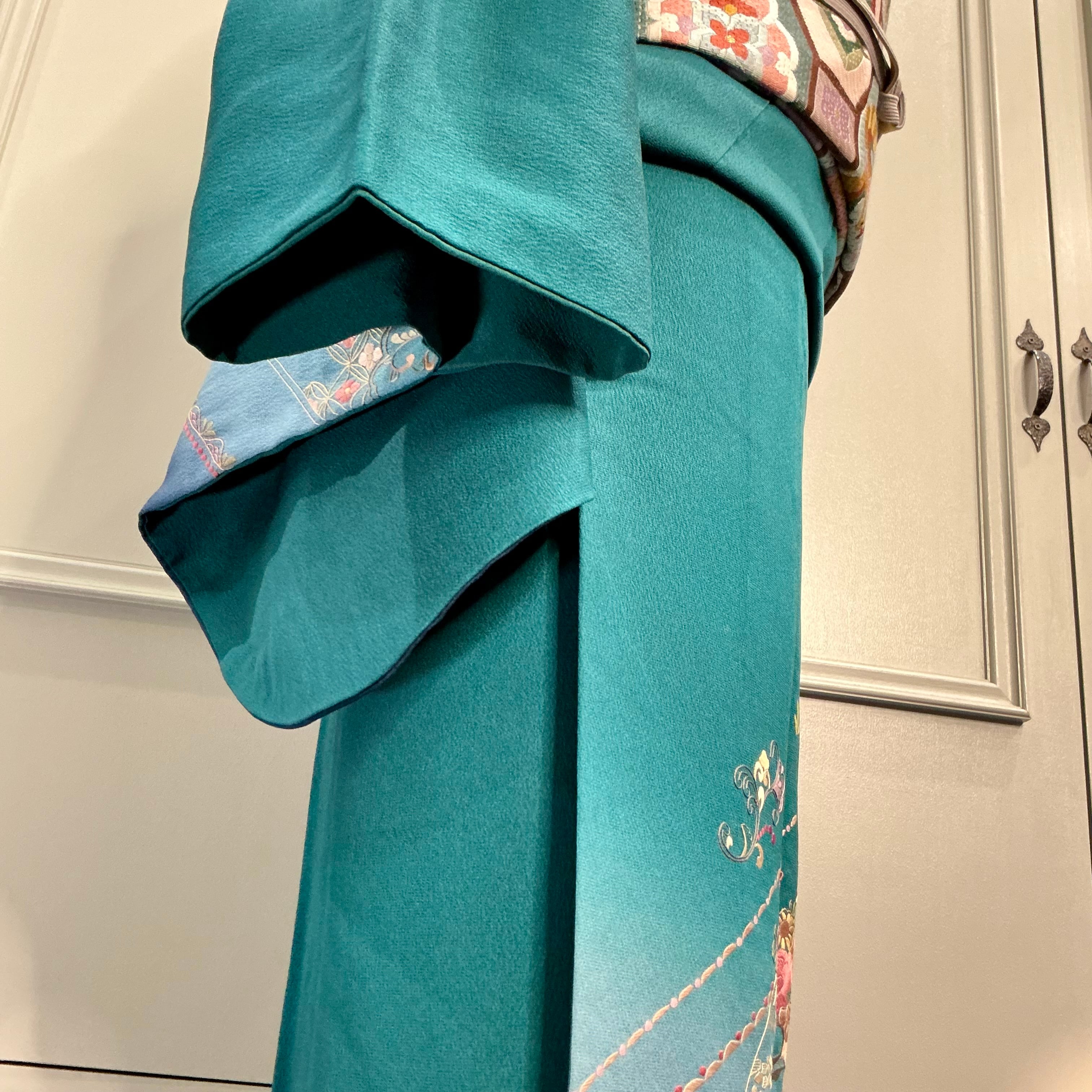 tall*碧深の雅*スワトウ刺繍 蘇州刺繍 グリーン ブルー 卒業式 入学式 礼装 訪問着 B521