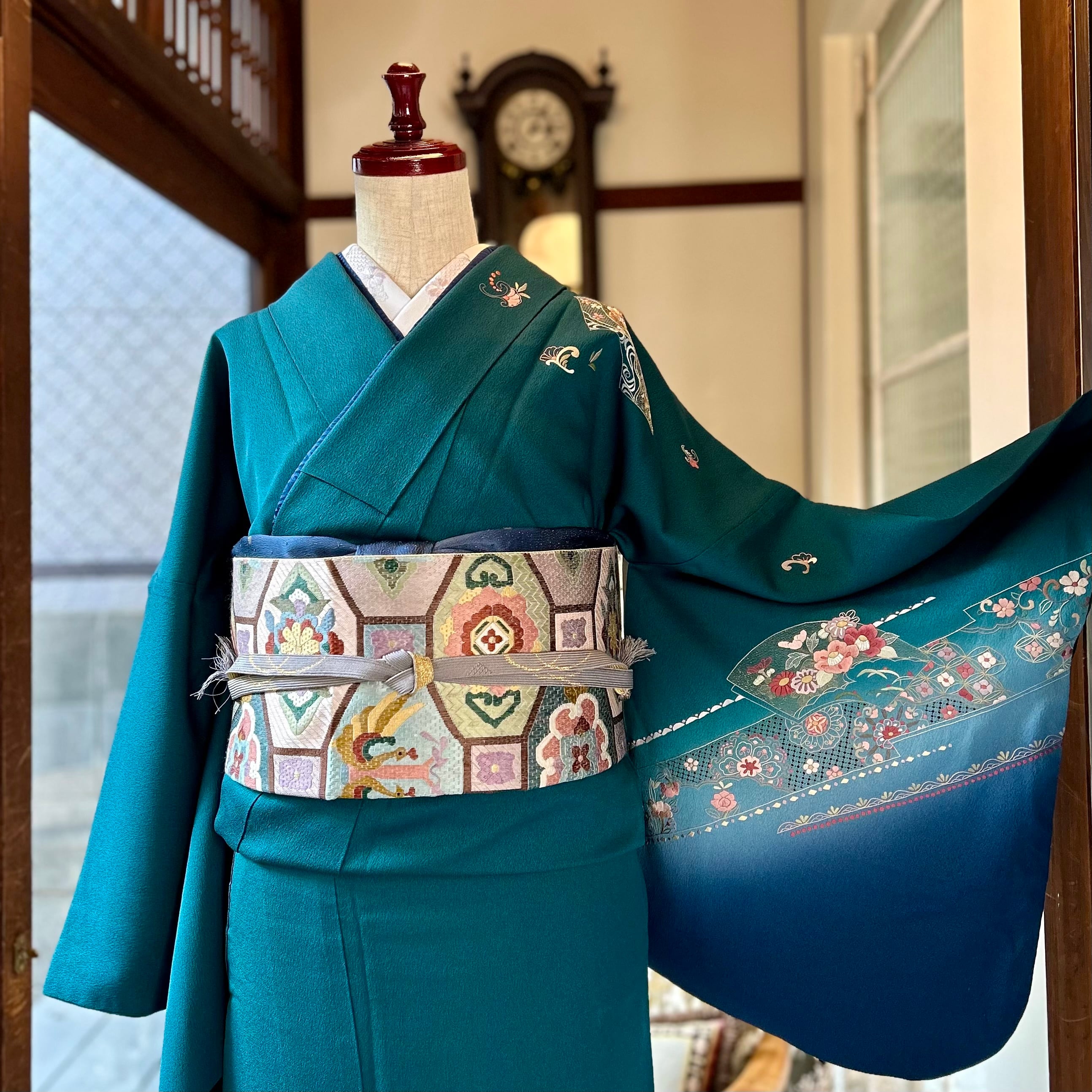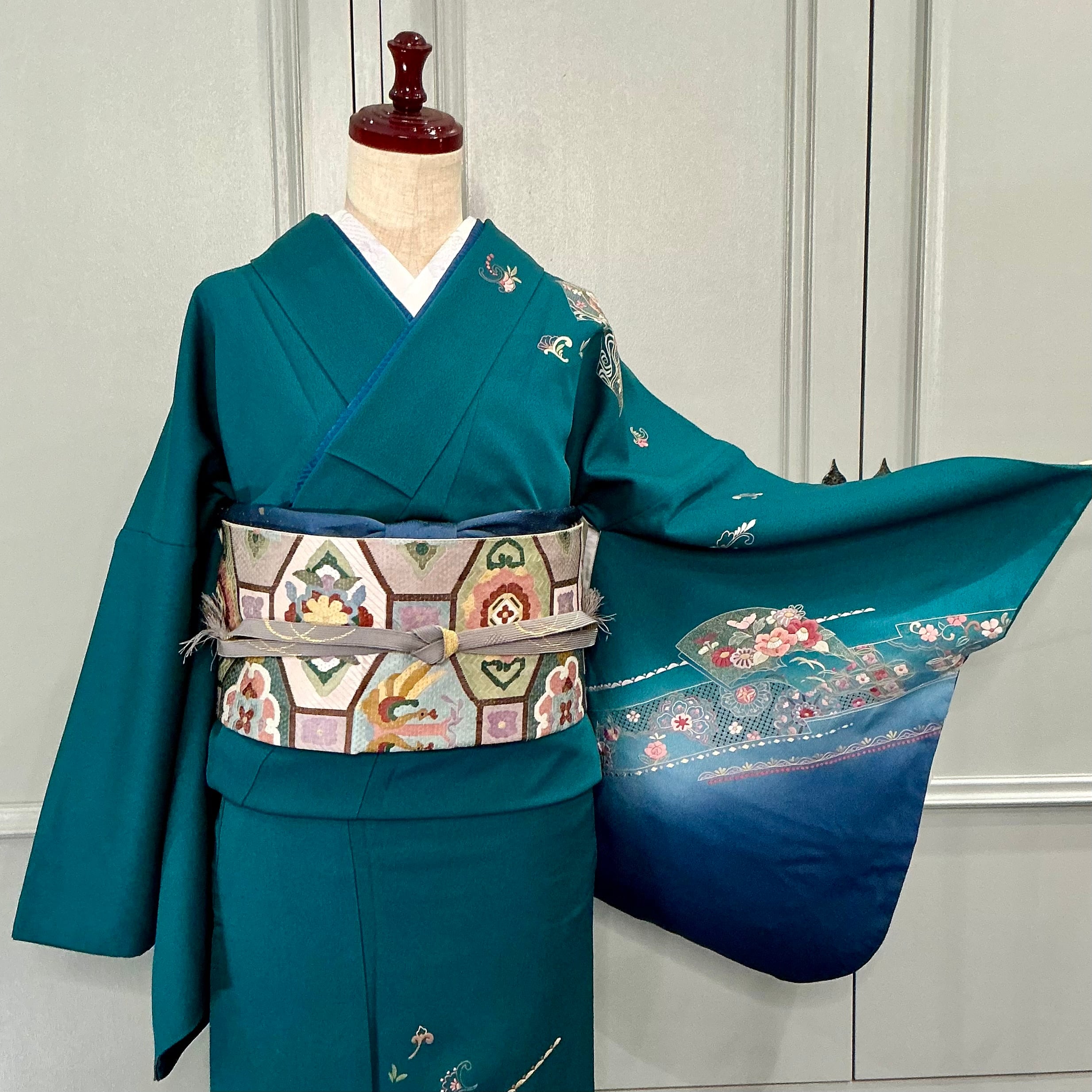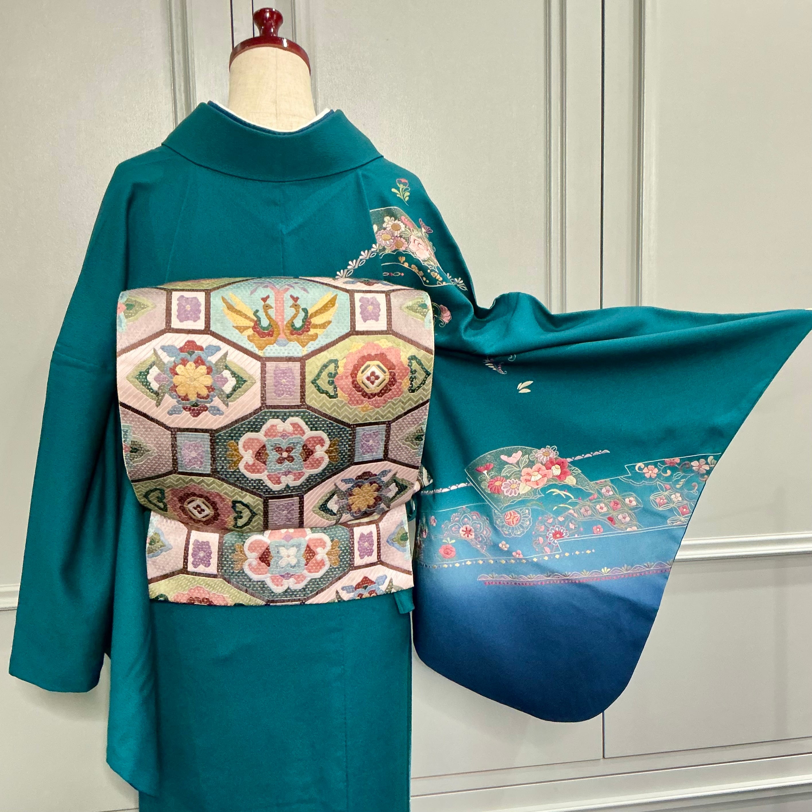 tall*碧深の雅*スワトウ刺繍 蘇州刺繍 グリーン ブルー 卒業式 入学式 礼装 訪問着 B521