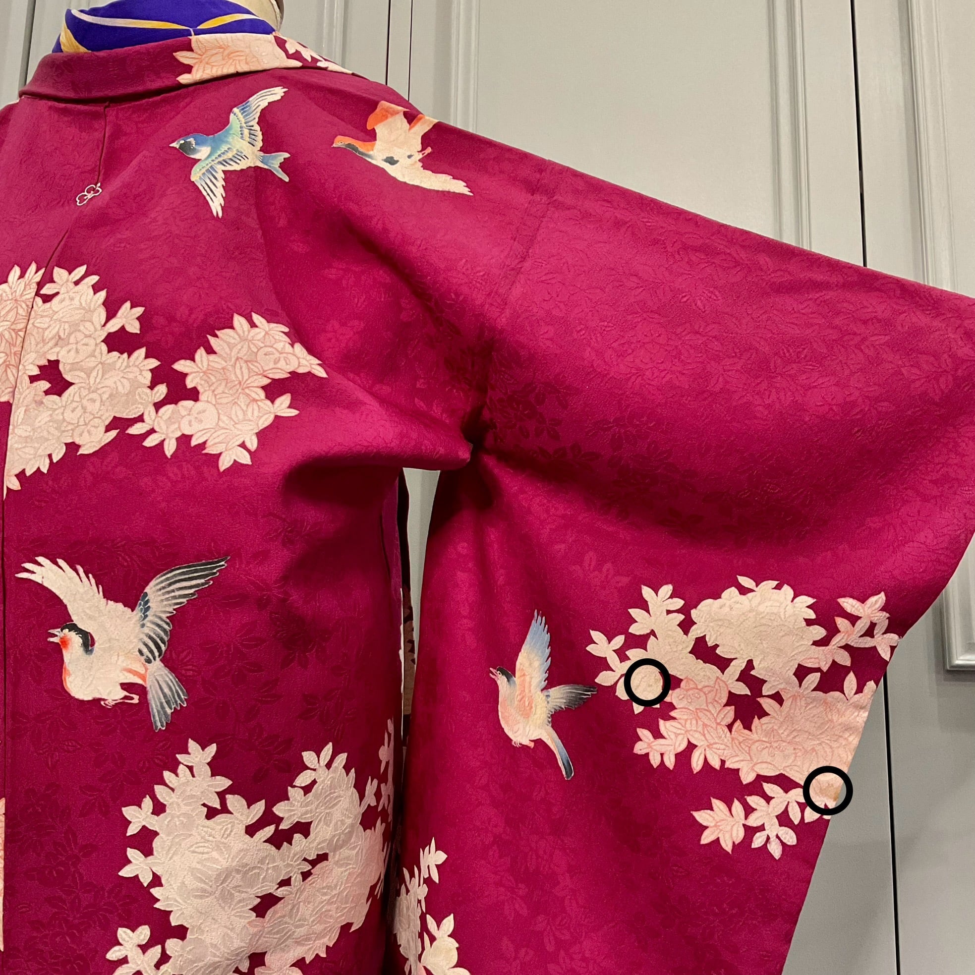 右袖、前身頃、左衿に小シミ。