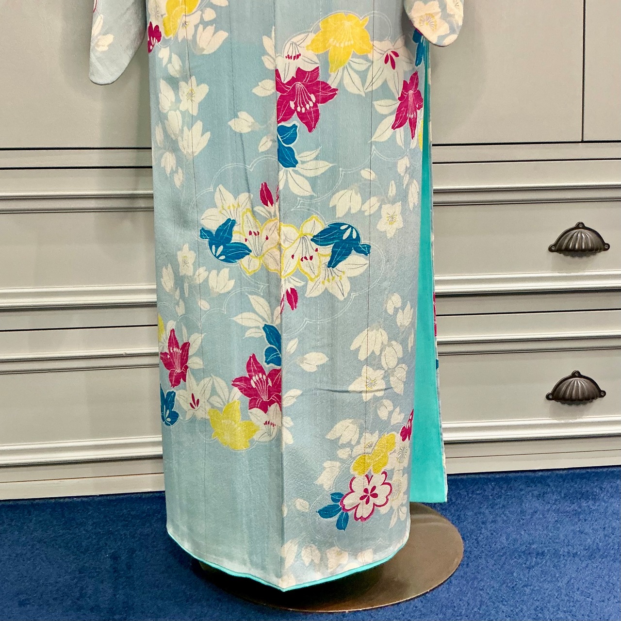アンティーク着物の中では貴重な水色地のお着物✨️
