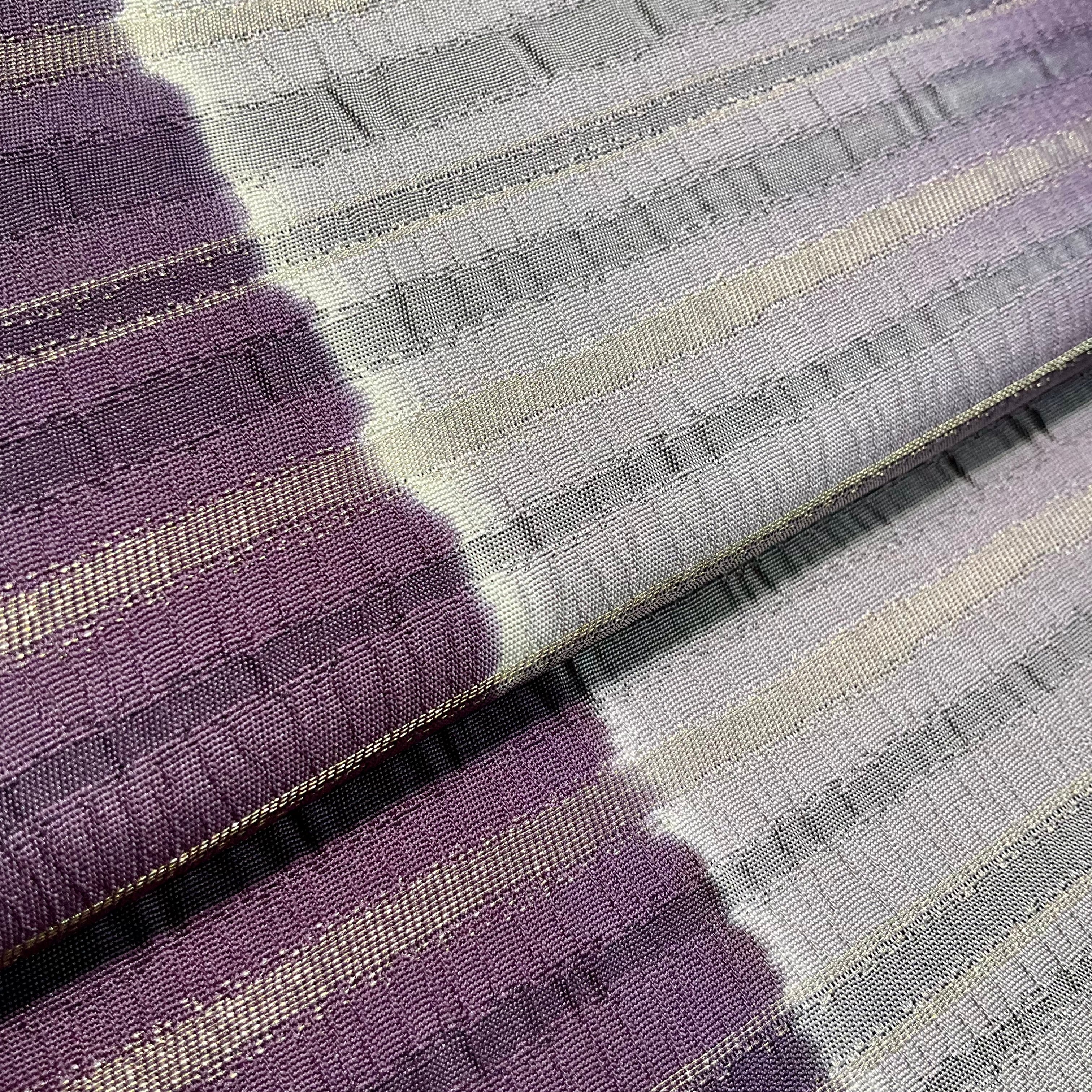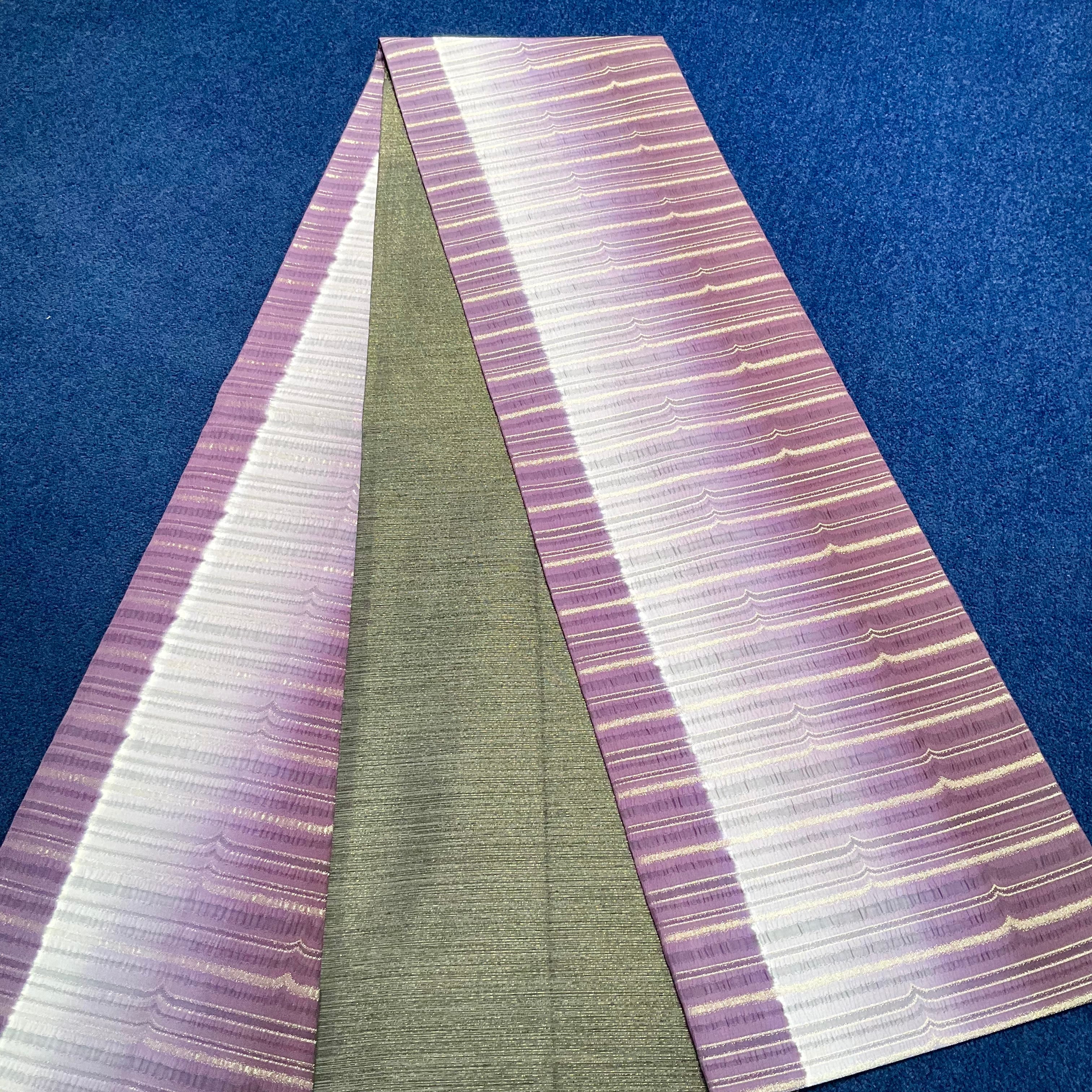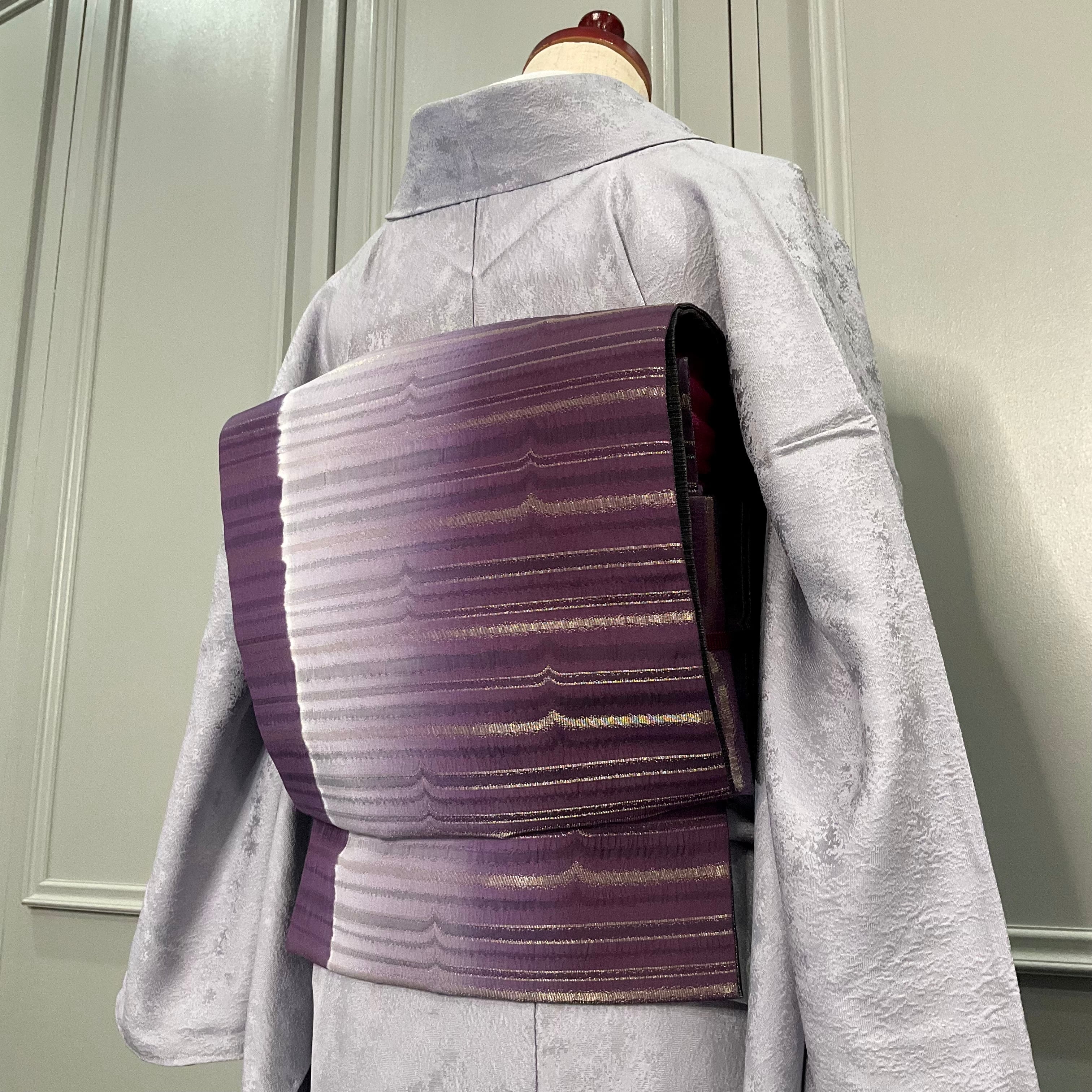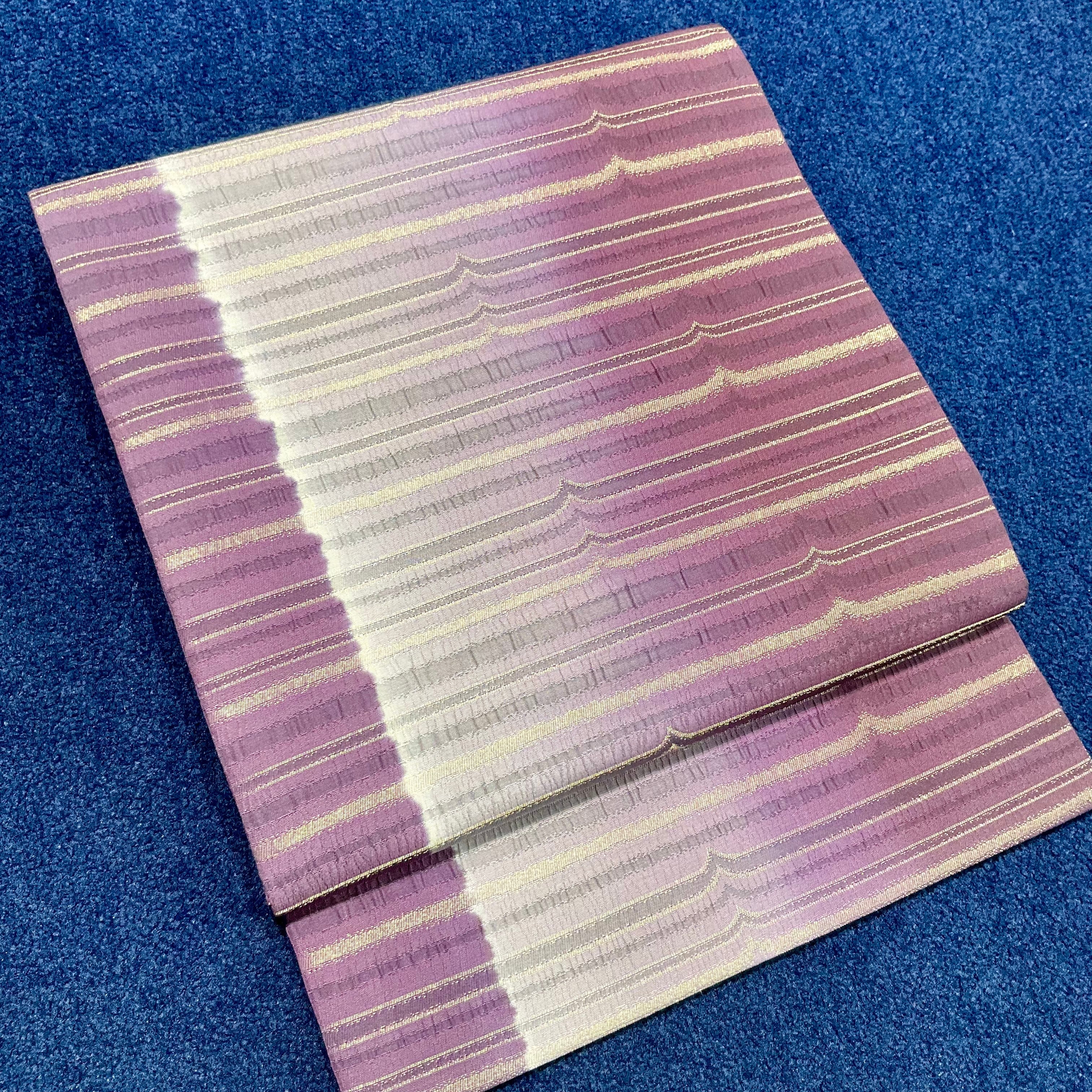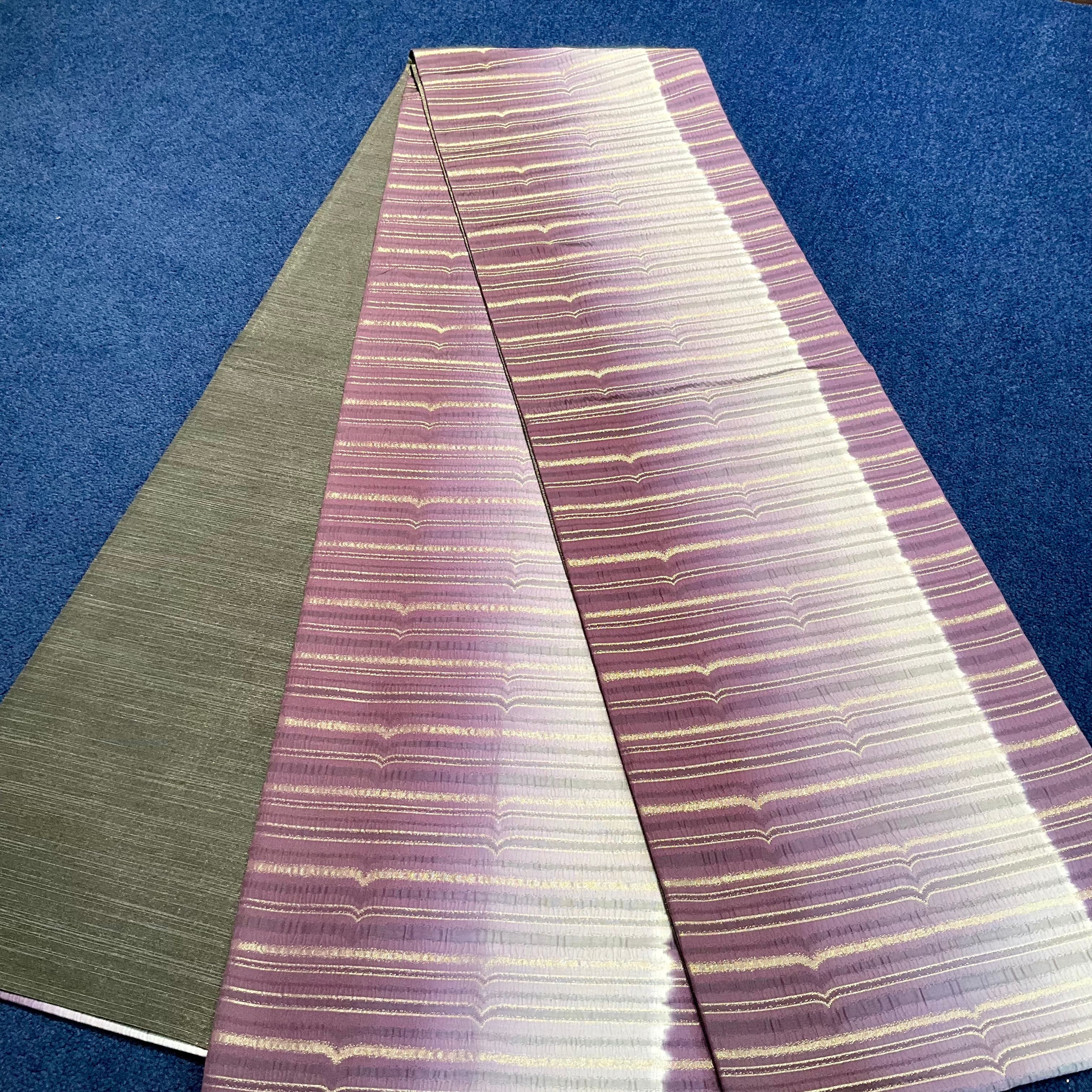 Gradation of Dusk*縞 横縞 グラデーション 深紫 紫 グレー 灰 シルバー 洒落袋帯 B554