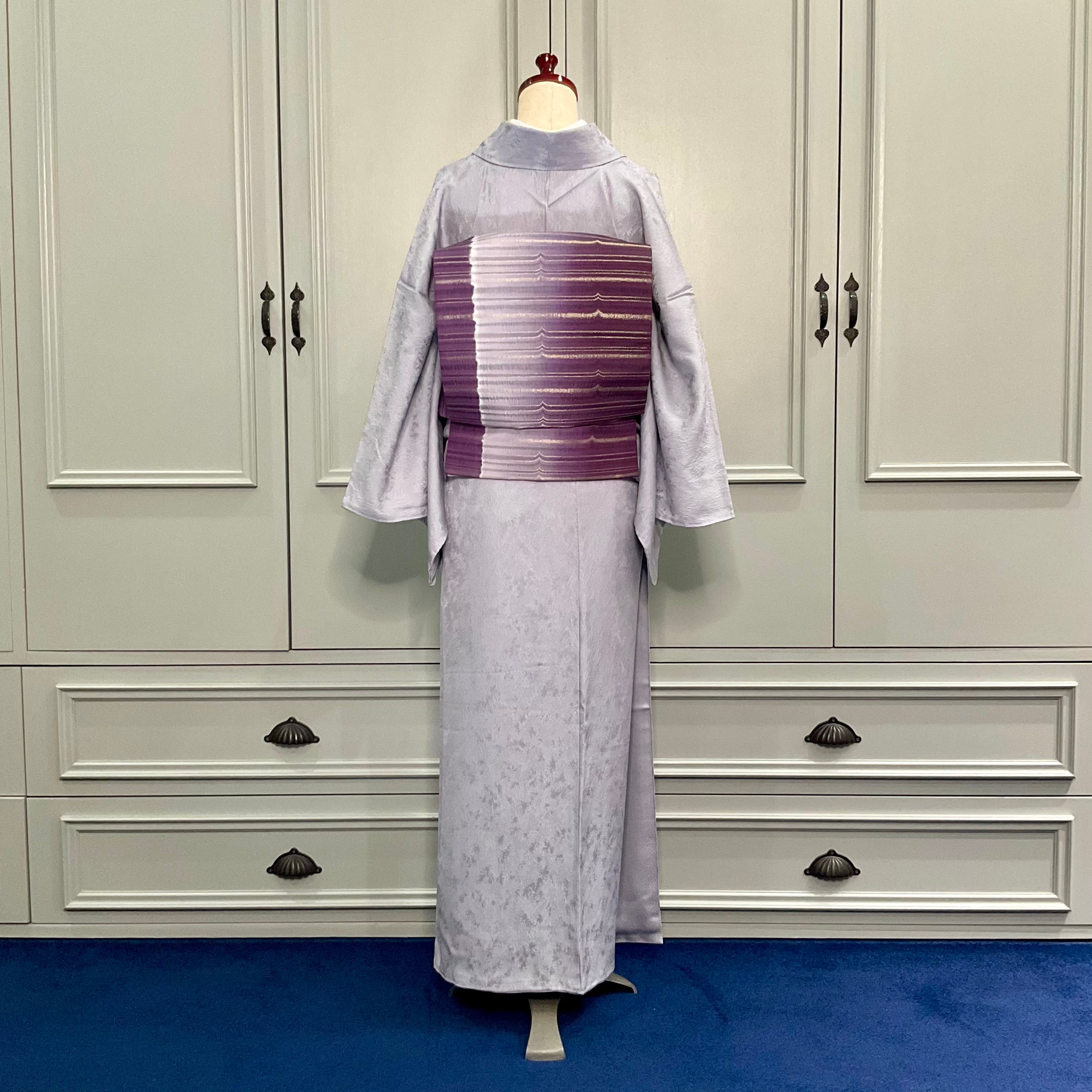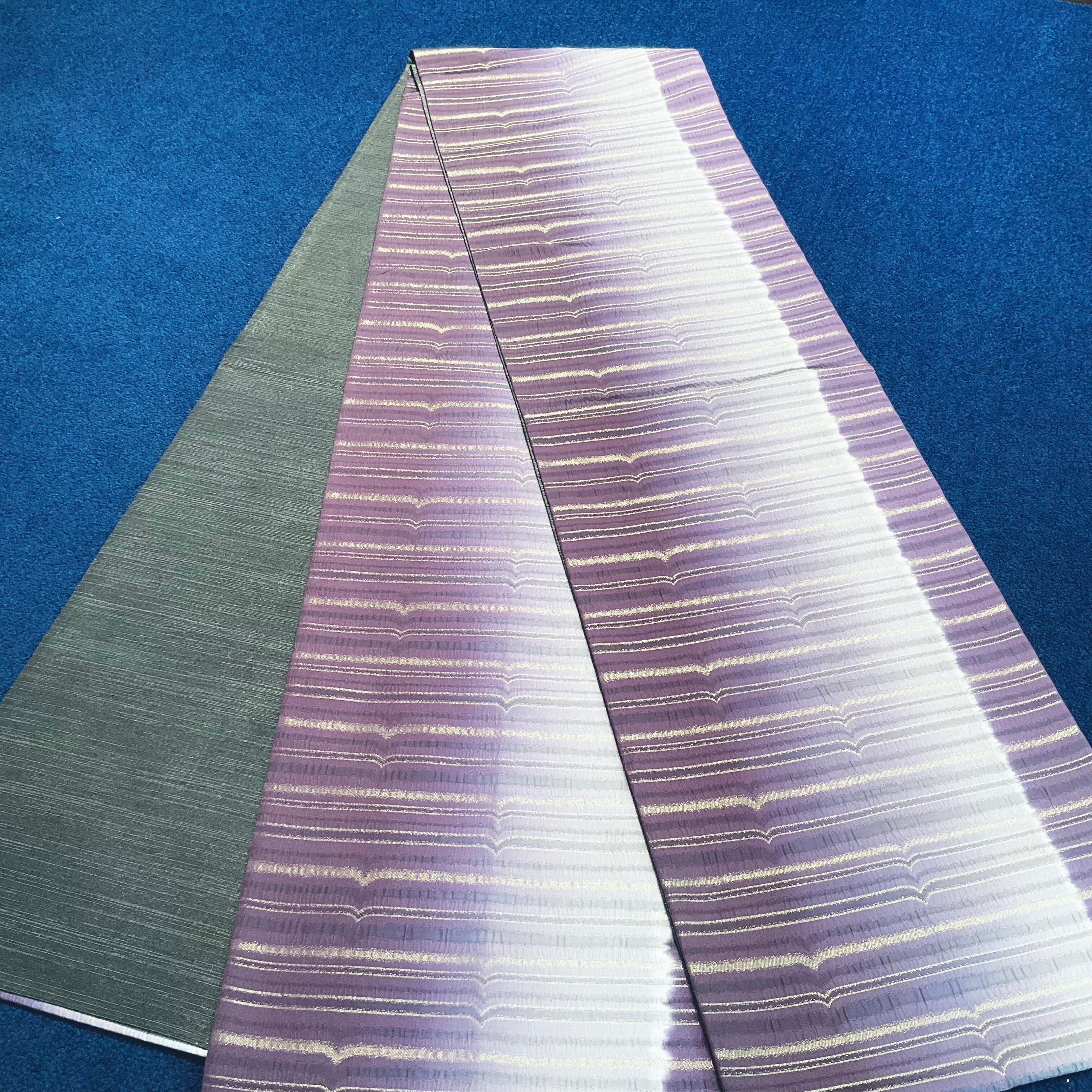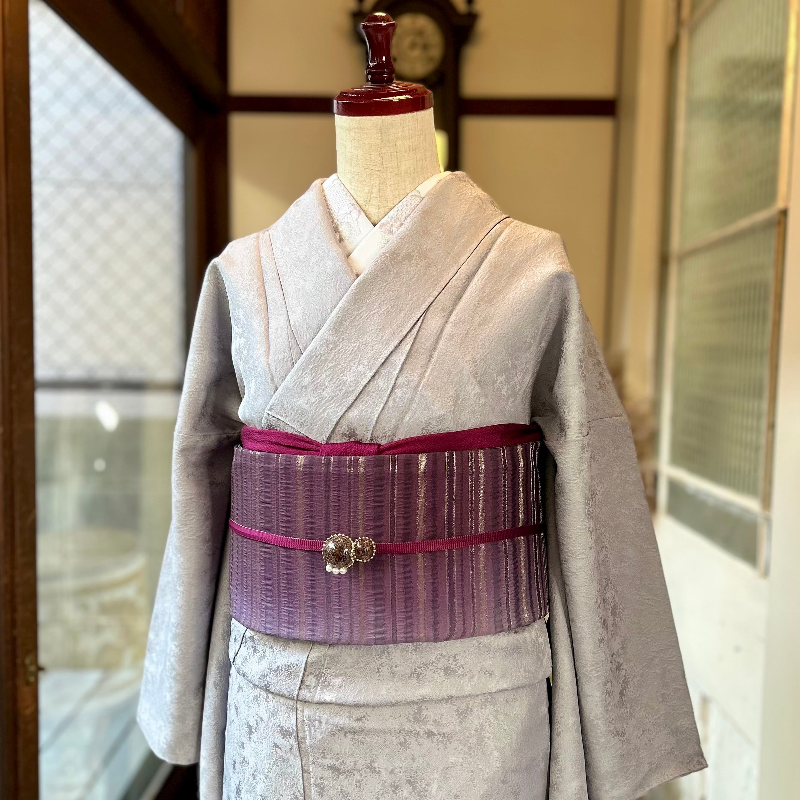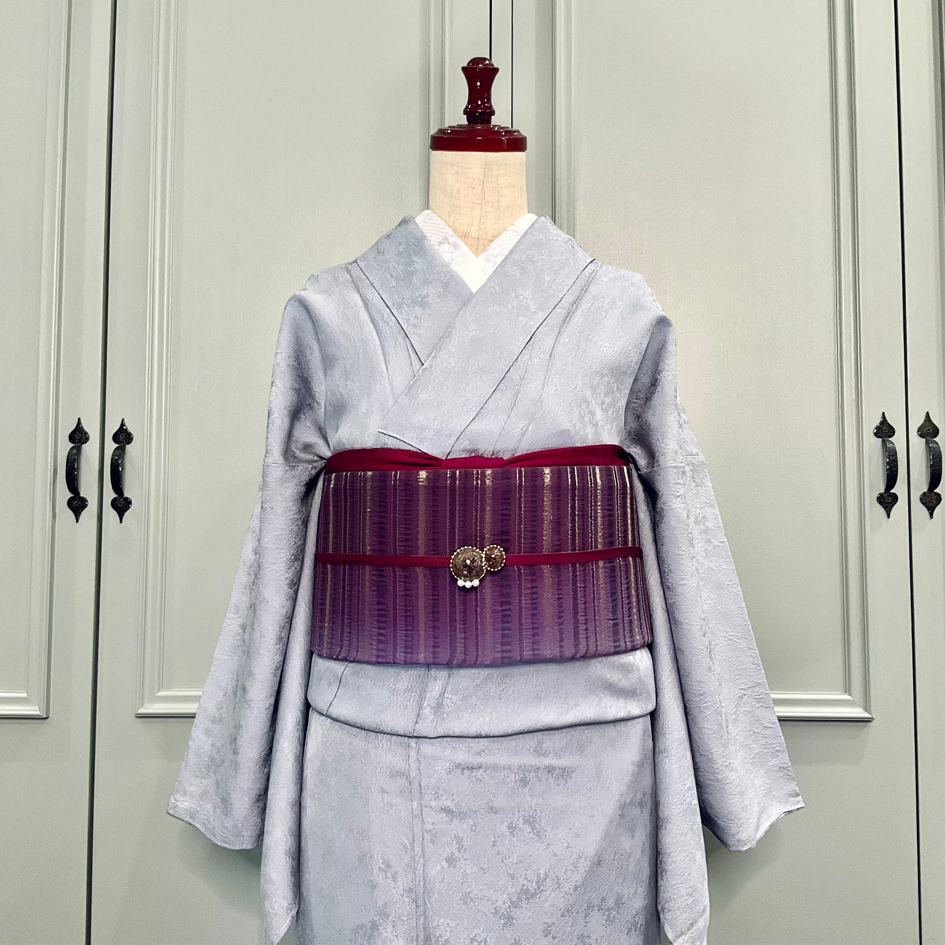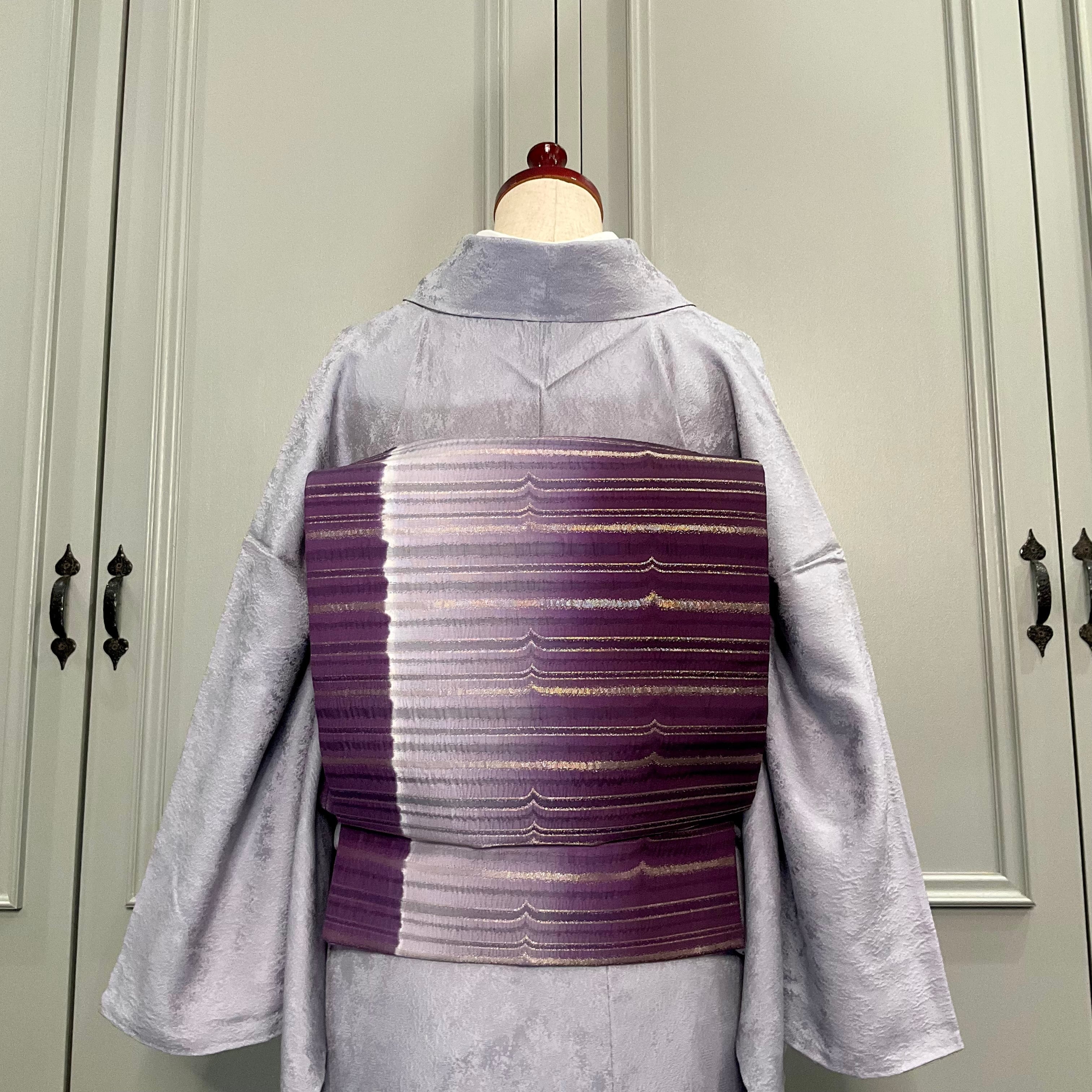 胴回りのカラーも、紫がめいっぱい出るデザインと、薄紫ラインと白っぽい所も出るデザインと巻く方向で2通り異なる表情が出せるので、合わせる着物の幅も広がりますね