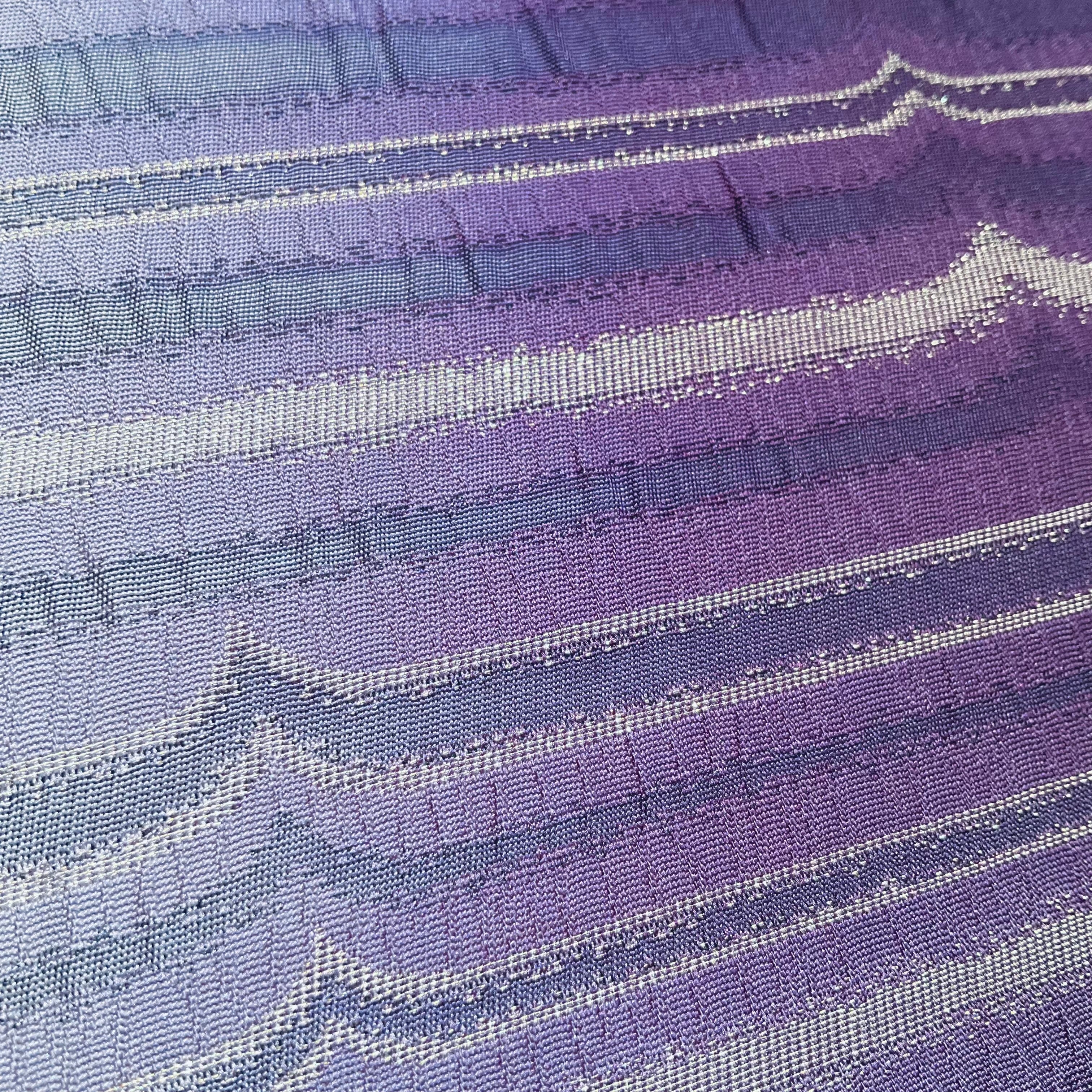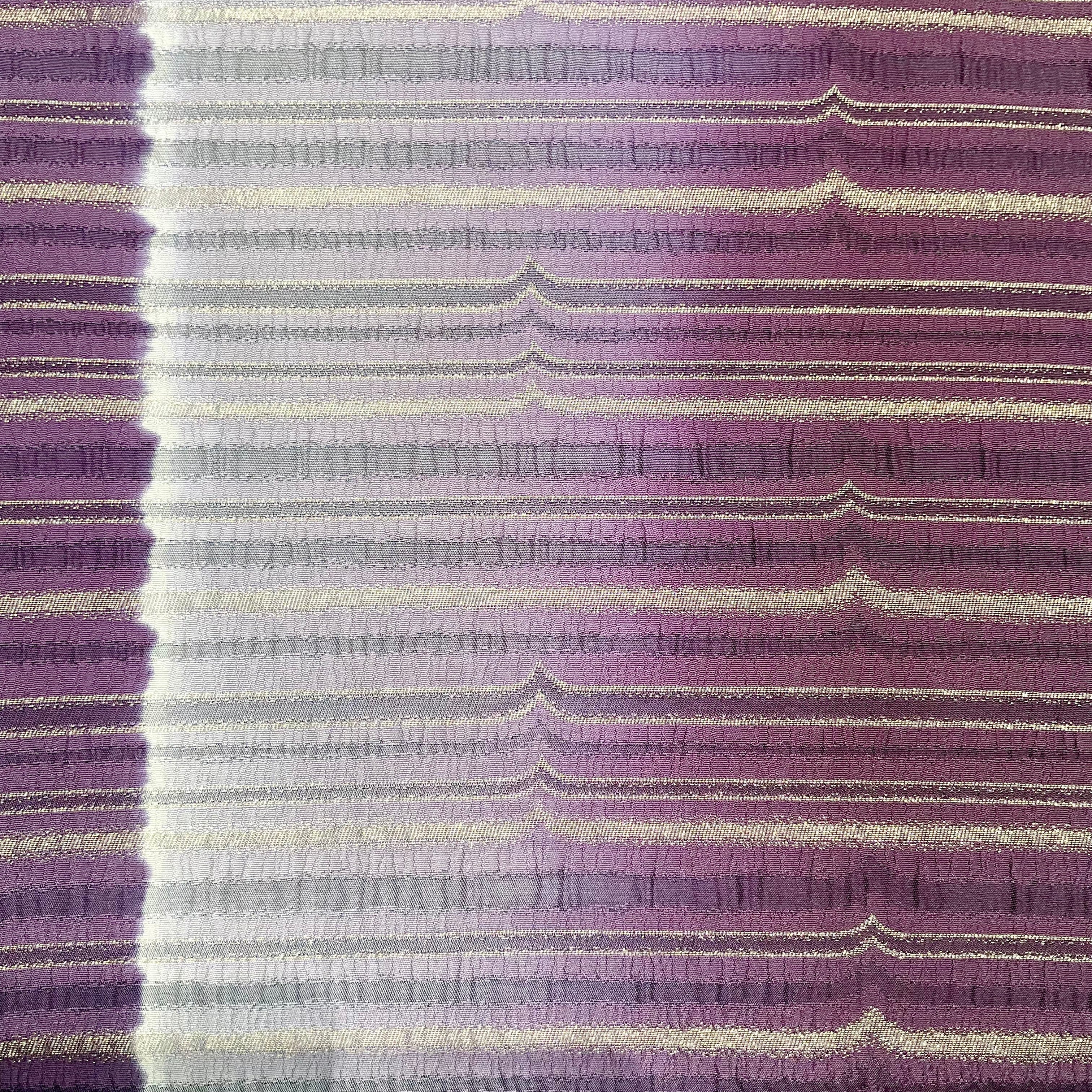 深紫の濃淡のグラデーションに、ちょっぴりアクセントをきかせた横縞がデザインされた洒落袋帯です