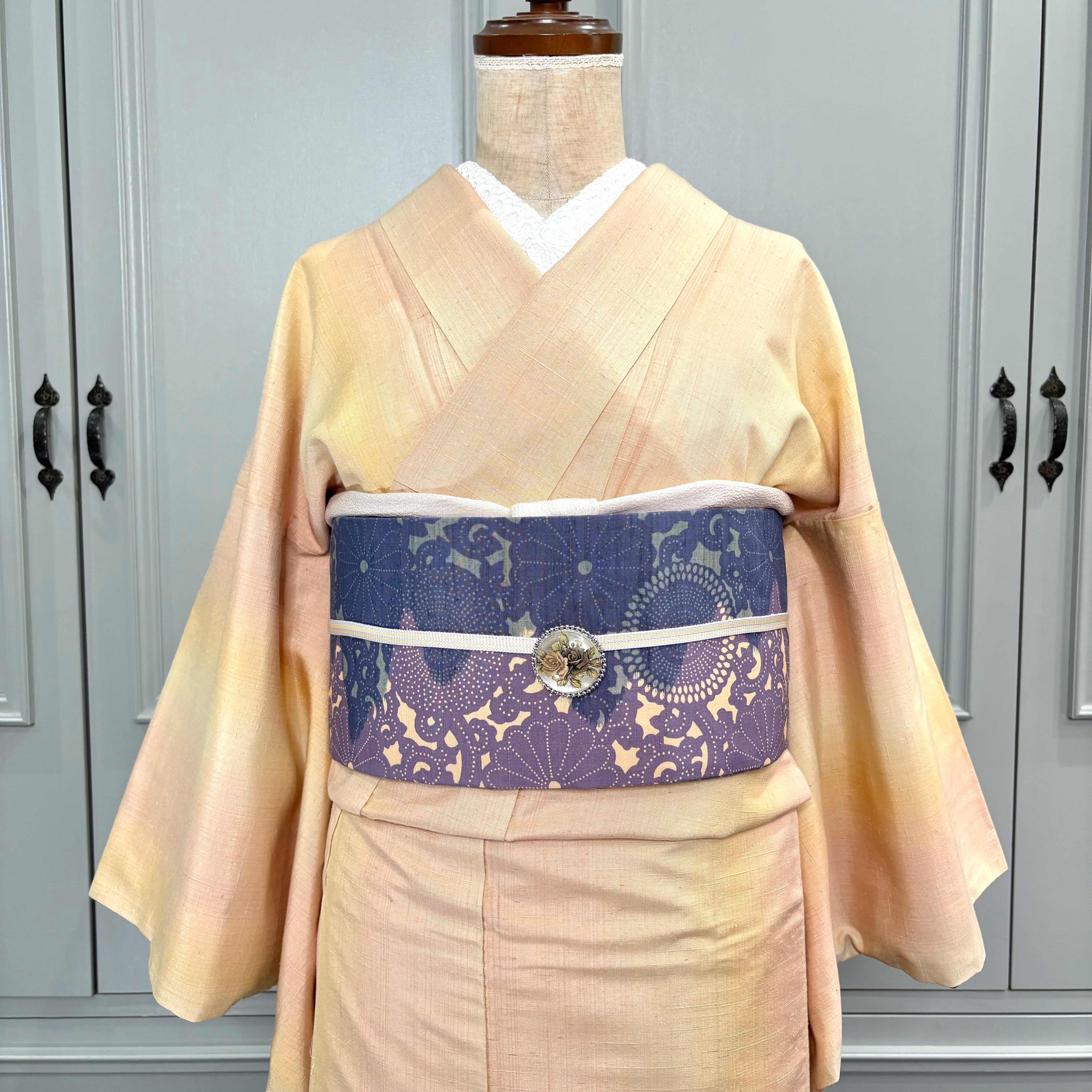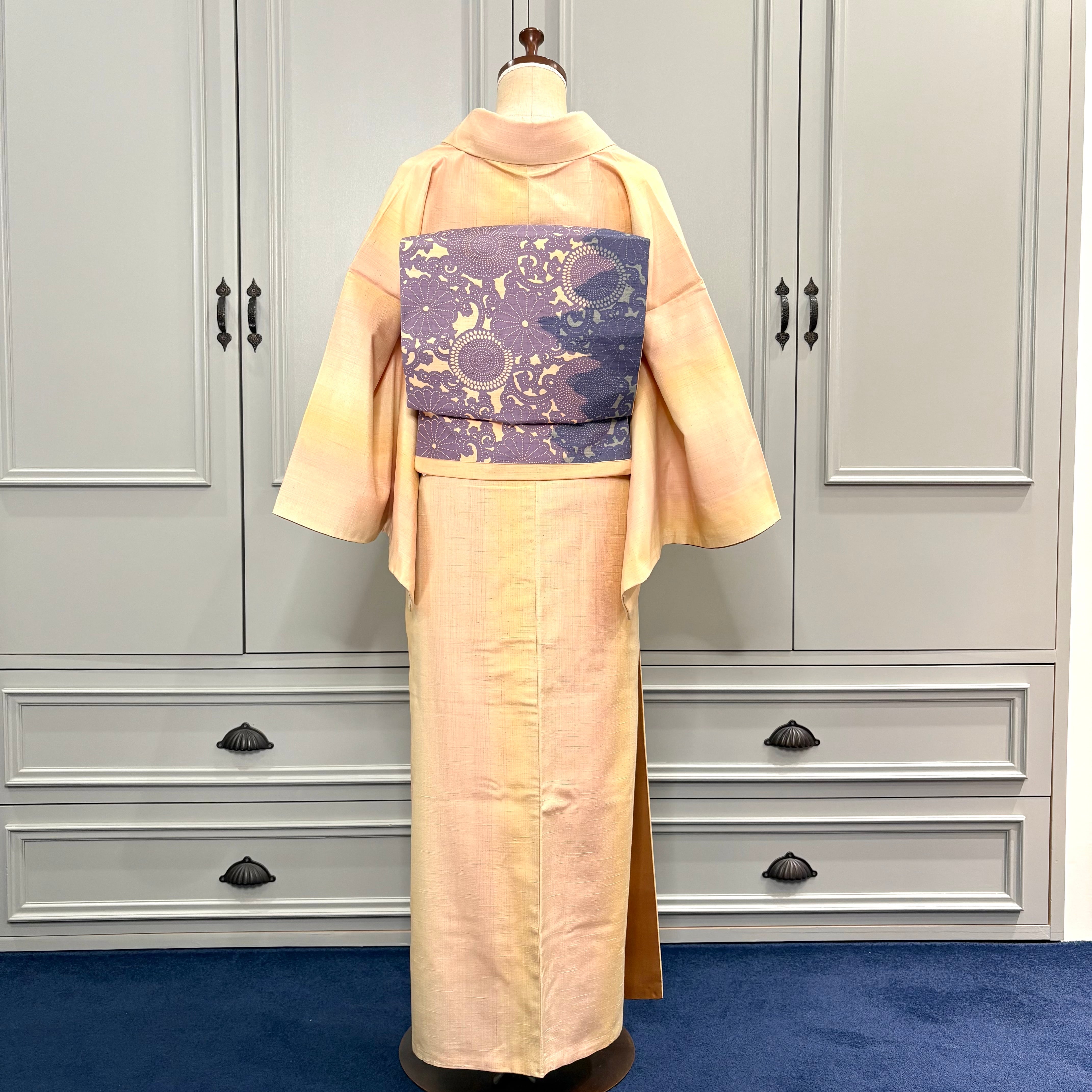 ざっくりと風合い豊かな紬地は暖かみもあり、お太鼓の形も綺麗に出しやすくオススメです◎