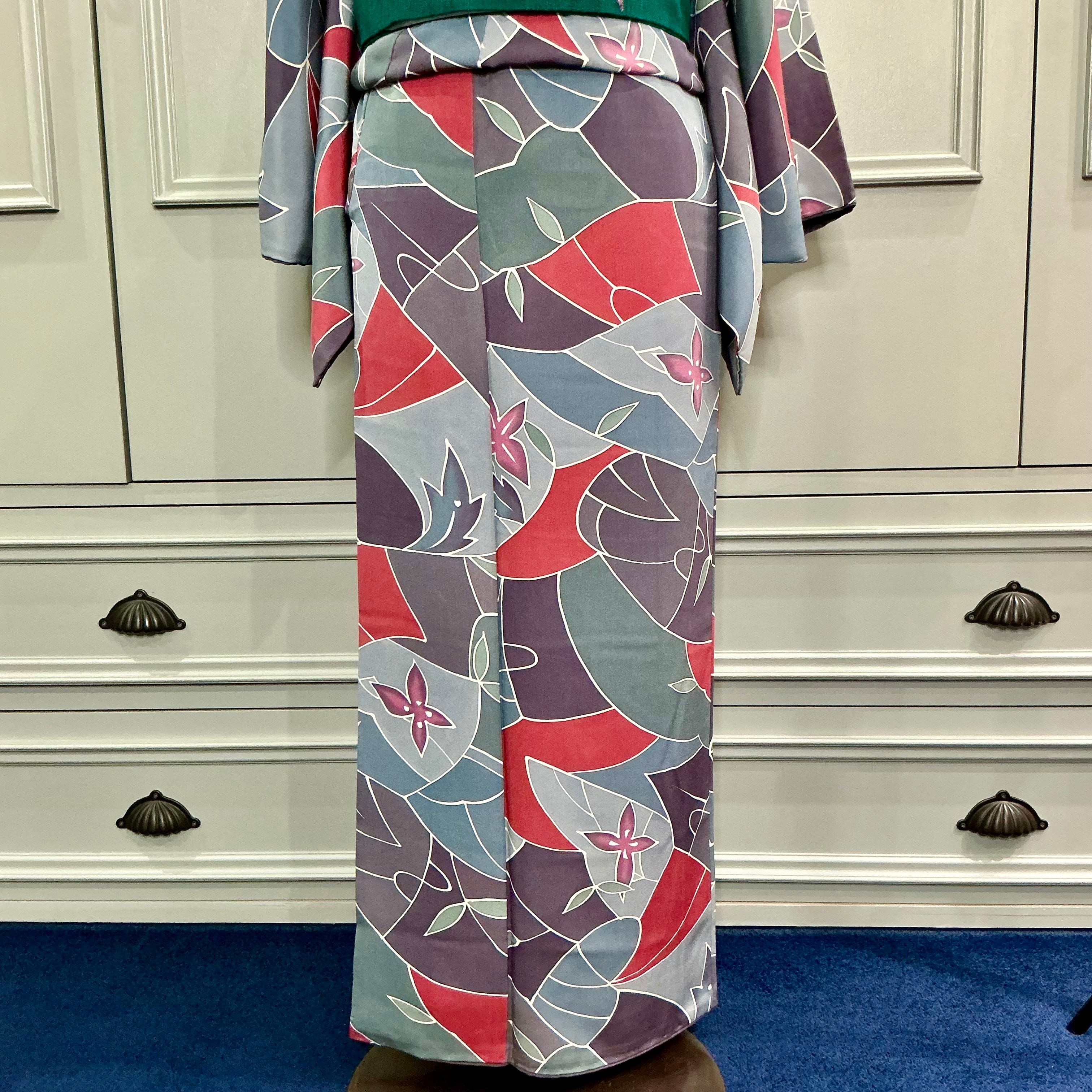 modern mosaic*モザイク柄 幾何学模様 ニュアンスカラー 小紋着物 B557
