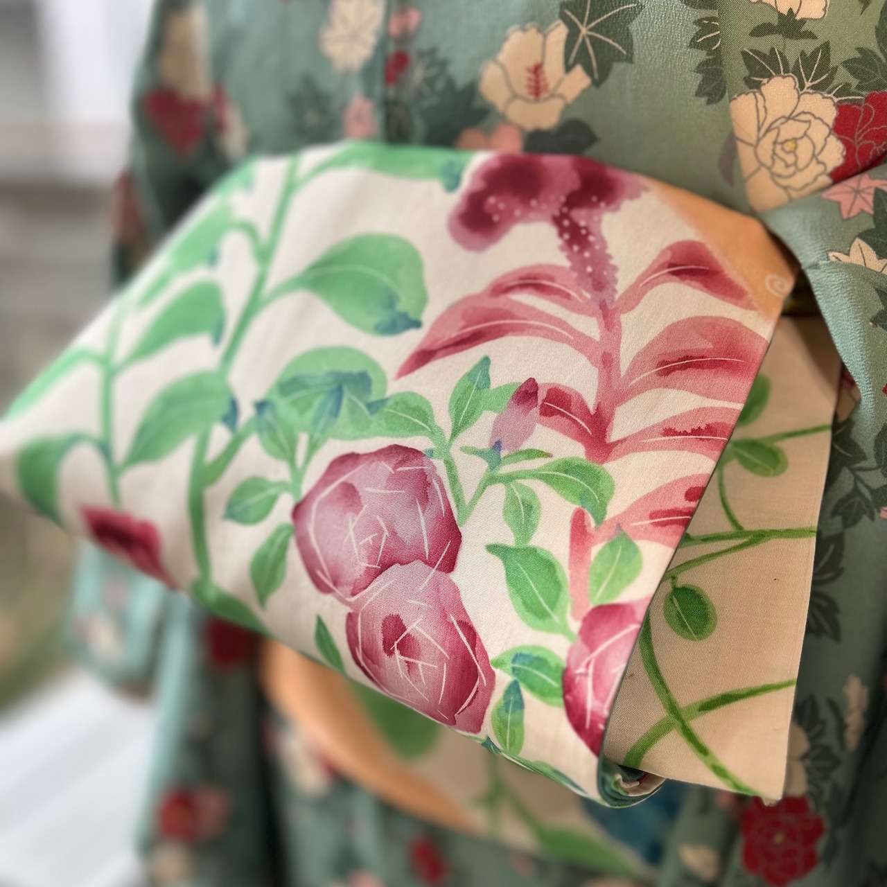明るい色合いの染め帯は、袷にも単衣にも合わせられて重宝しますよ♪