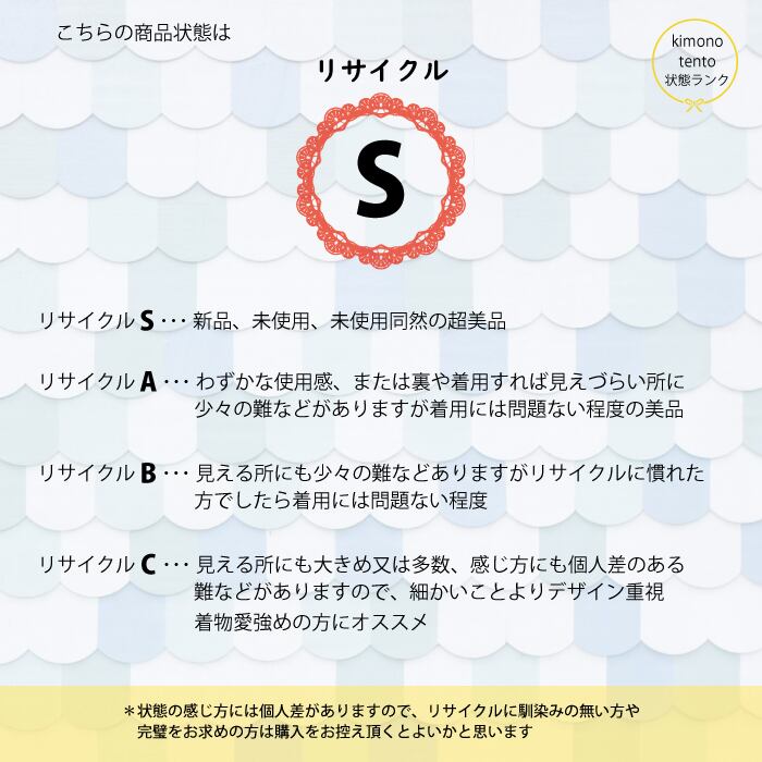 リサイクル C・・・見える所にも大きめ又は多数、感じ方にも個人差のある難などがありますので、細かいことよりデザイン重視!の着物愛強めの方にオススメ!