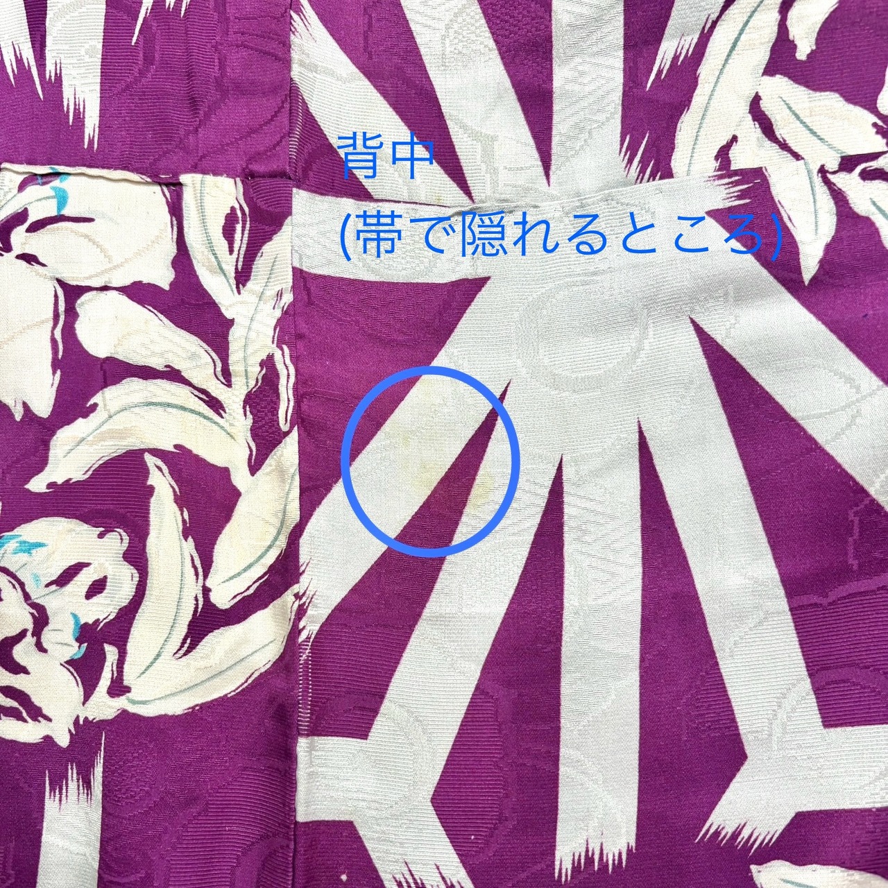 衿の折山、下前、背中付近など薄シミ