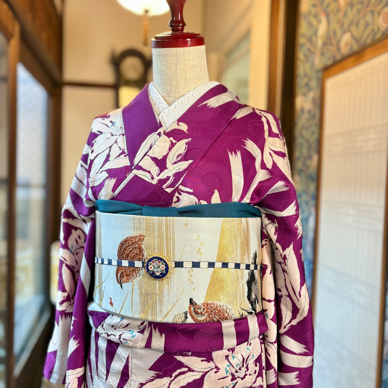 今回は柔らかい素材のアンティーク着物に合わせていますが、現代物の紬などにもぴったりですね!