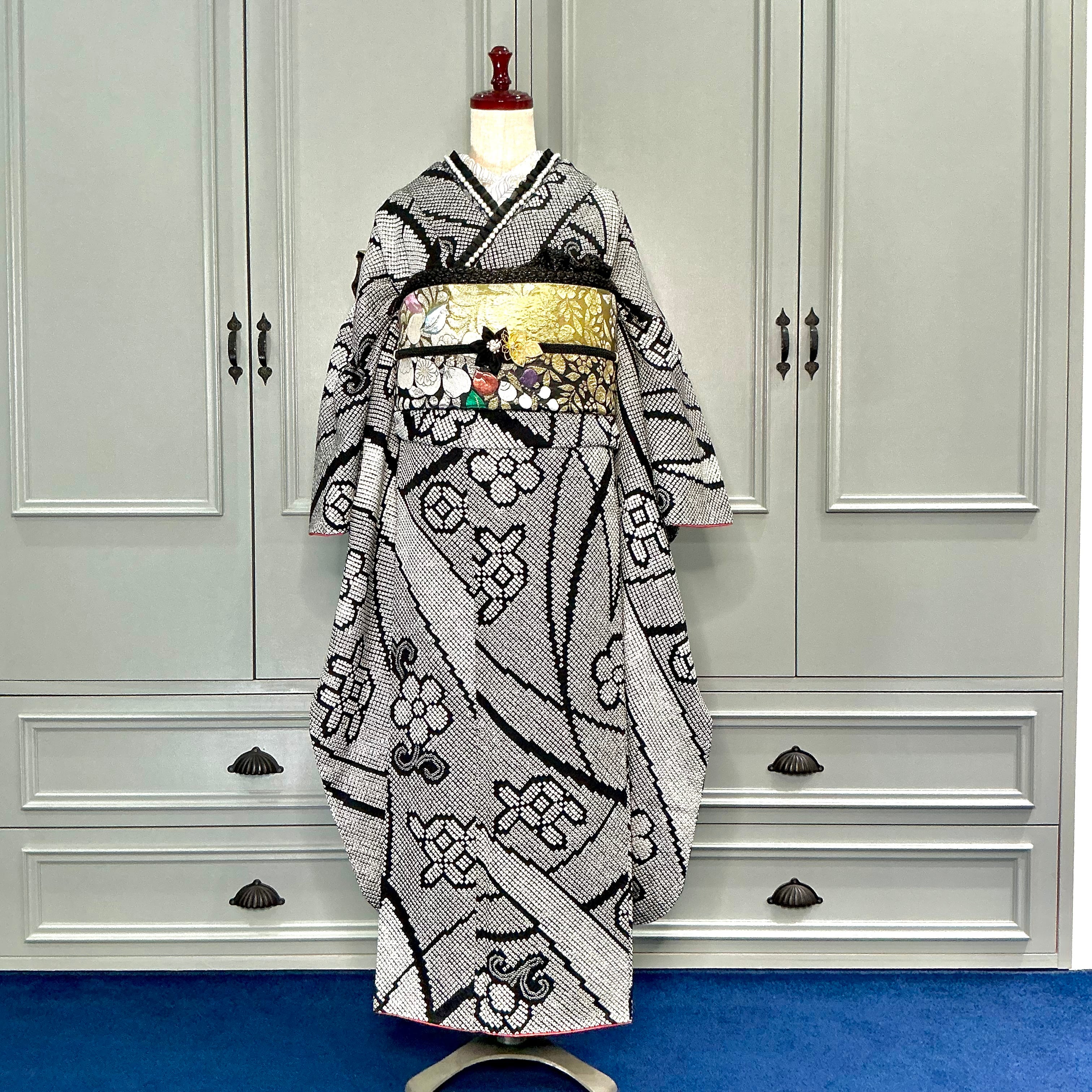 モノトーンの振袖は伝統的でありながら、どこかモードで都会的な印象を与えてくれます